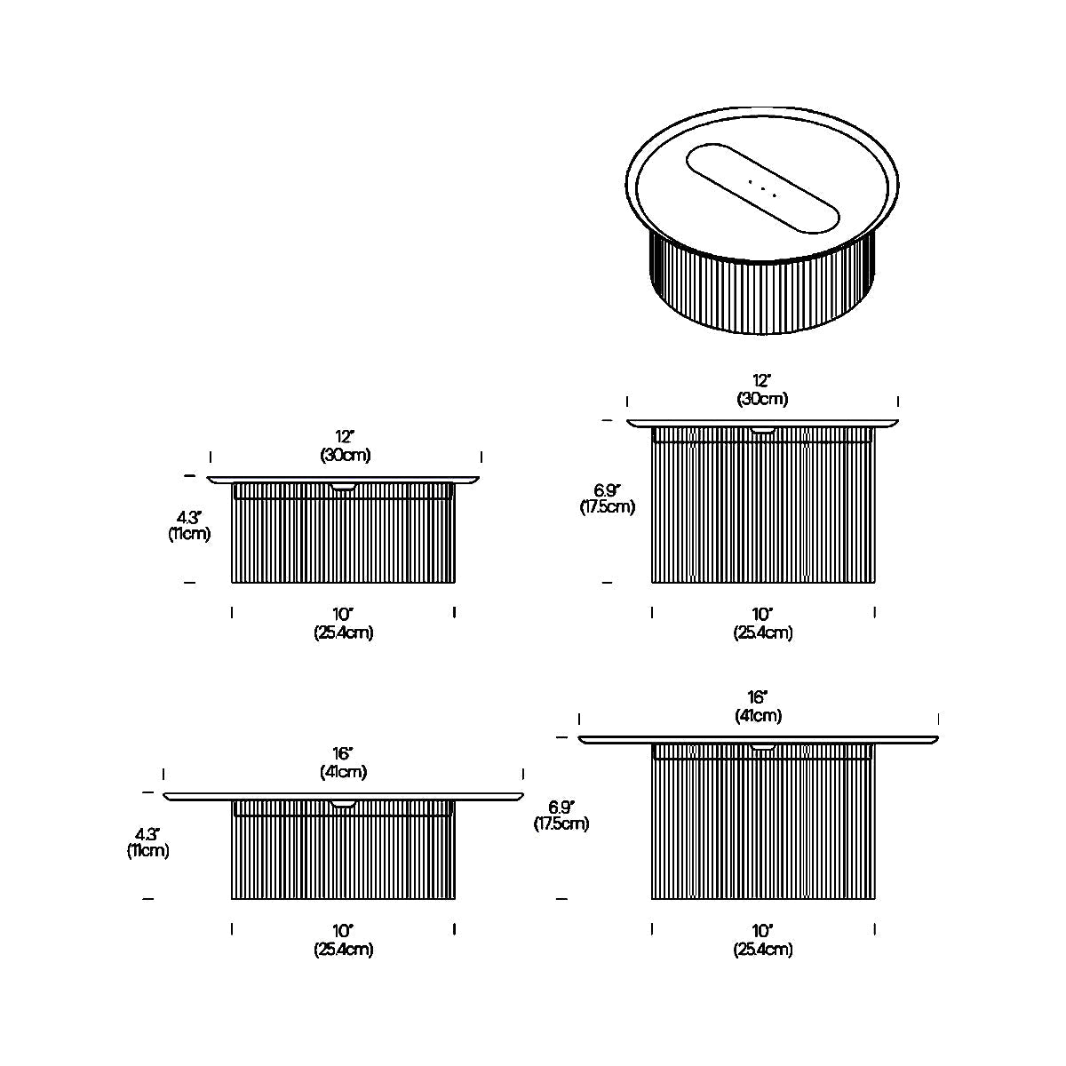 - Base: 10"D