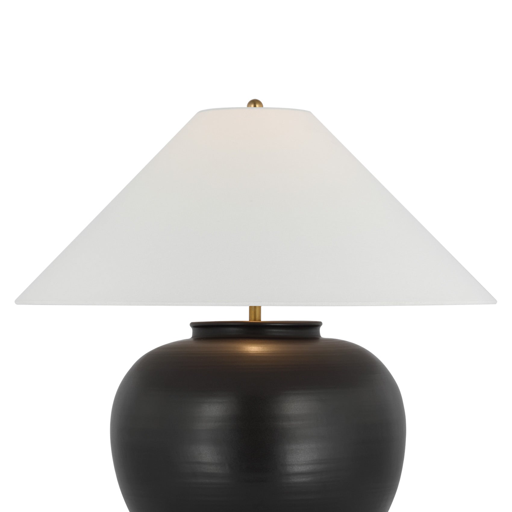 The immediate iteration of simplicity delivers welcome versatility as the Casey Table Lamp from Visual Comfort Signature embraces classic pottery fare. Its robust jar-shaped body and angled shade meet up with metal accents, subtle and refining.