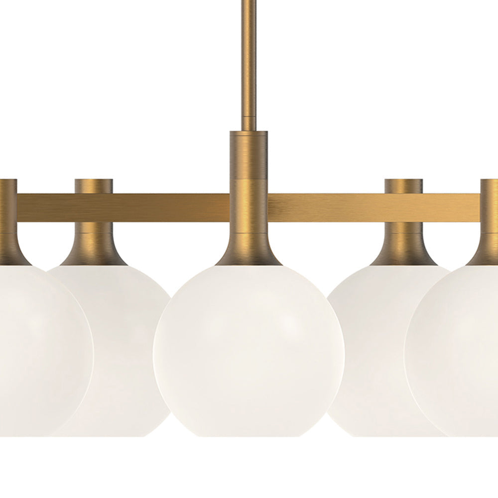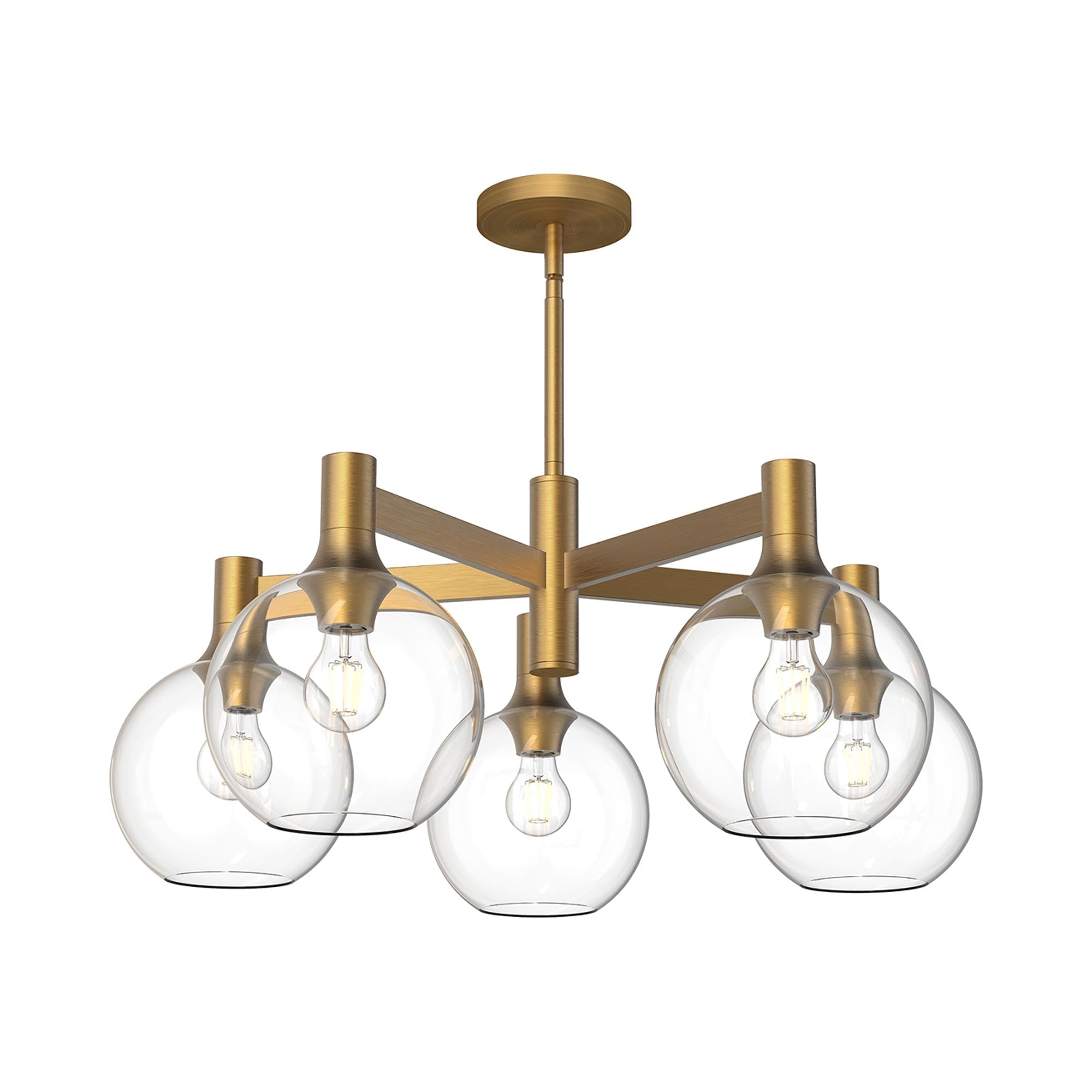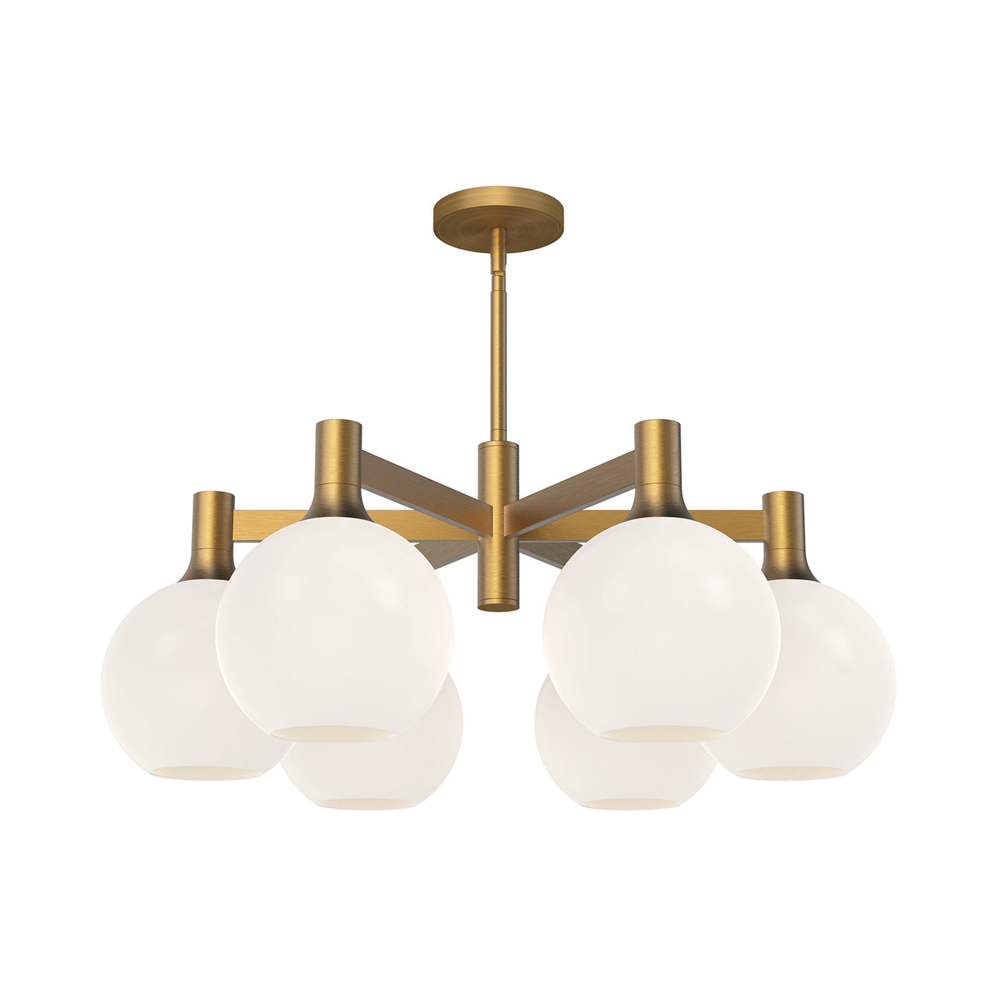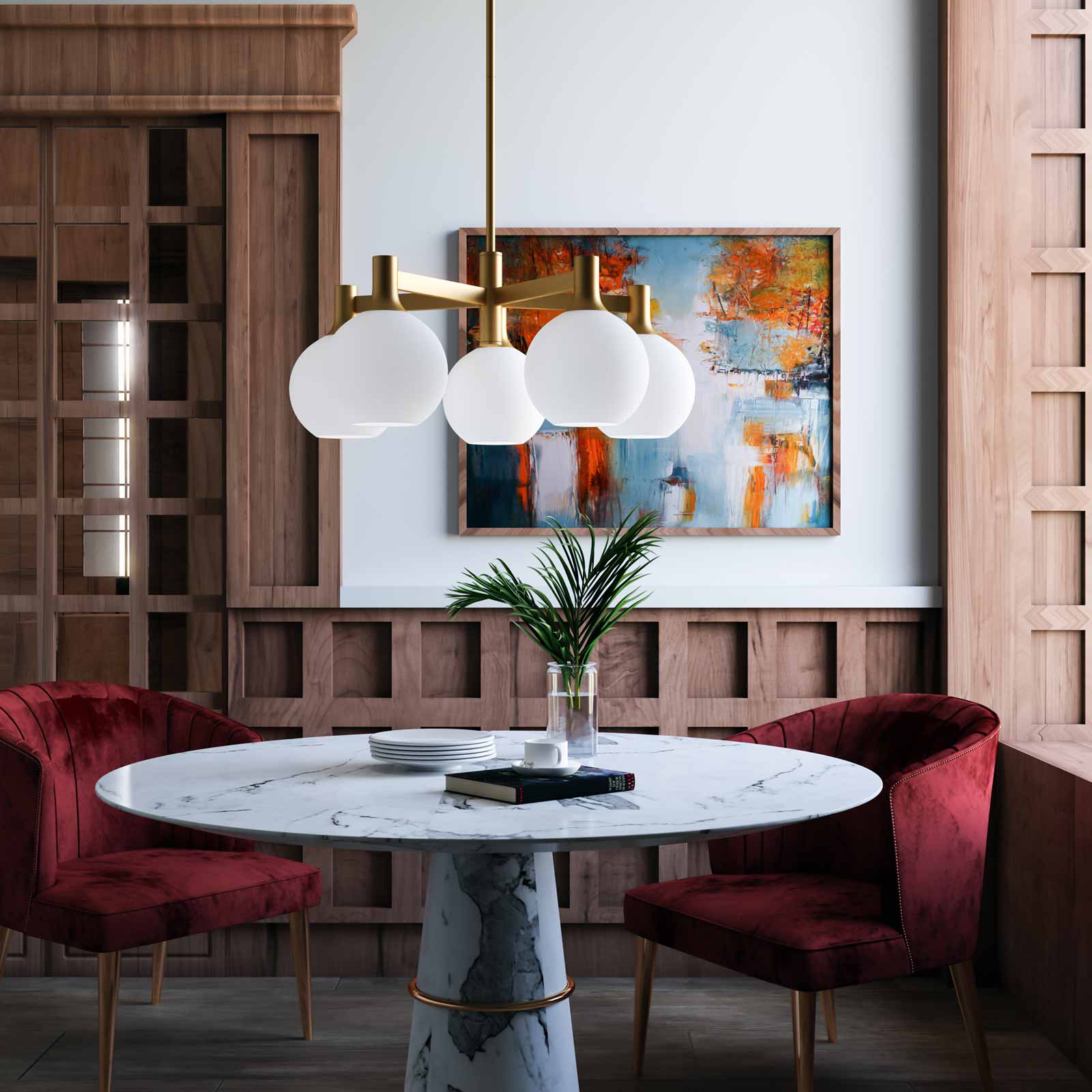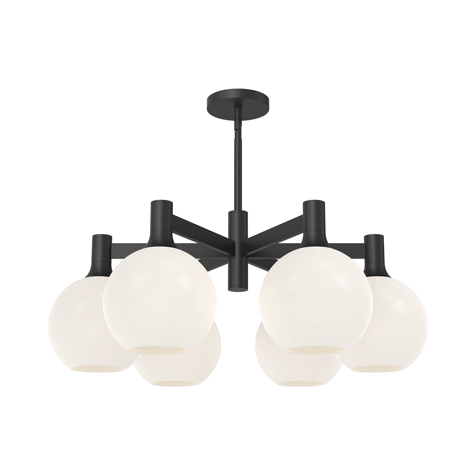 Add an uncomplicated yet festive element to modern spaces with the Castilla Chandelier from Alora Mood. A webbed frame capped with exaggerated globe shades infuses both ambient illumination and a cheery aesthetic perfect for an easy, carefree setting.