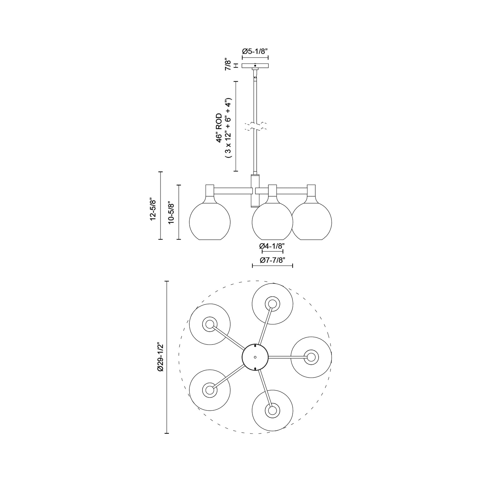 - 6-Light: 6 X 60W 120V E26(medium base) A19 incandescent lamps (not included)