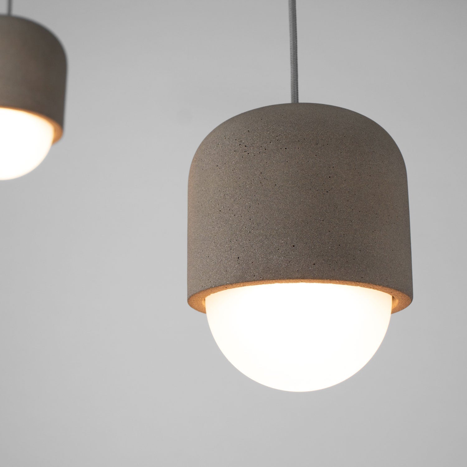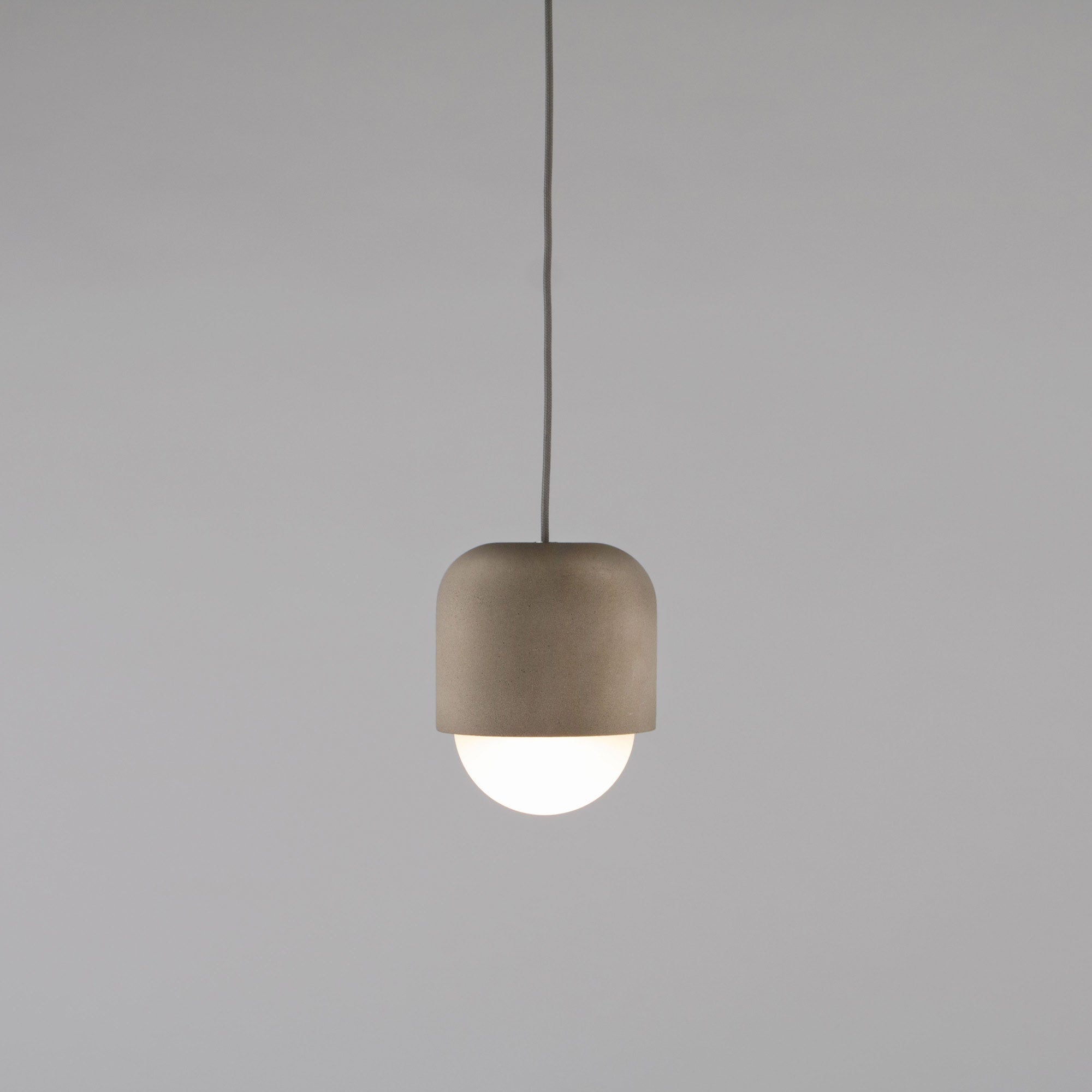 Crafty, chic style repurposes a rugged motif in the Castle Muse Pendant Light from Seed Design, a simple yet tasteful source of energy-efficient lighting. Delightfully nestled in a concrete-constructed cylinder frame, its opal glass globe shade infuses ambient lighting over a dining ensemble, kitchen area, or reading space.