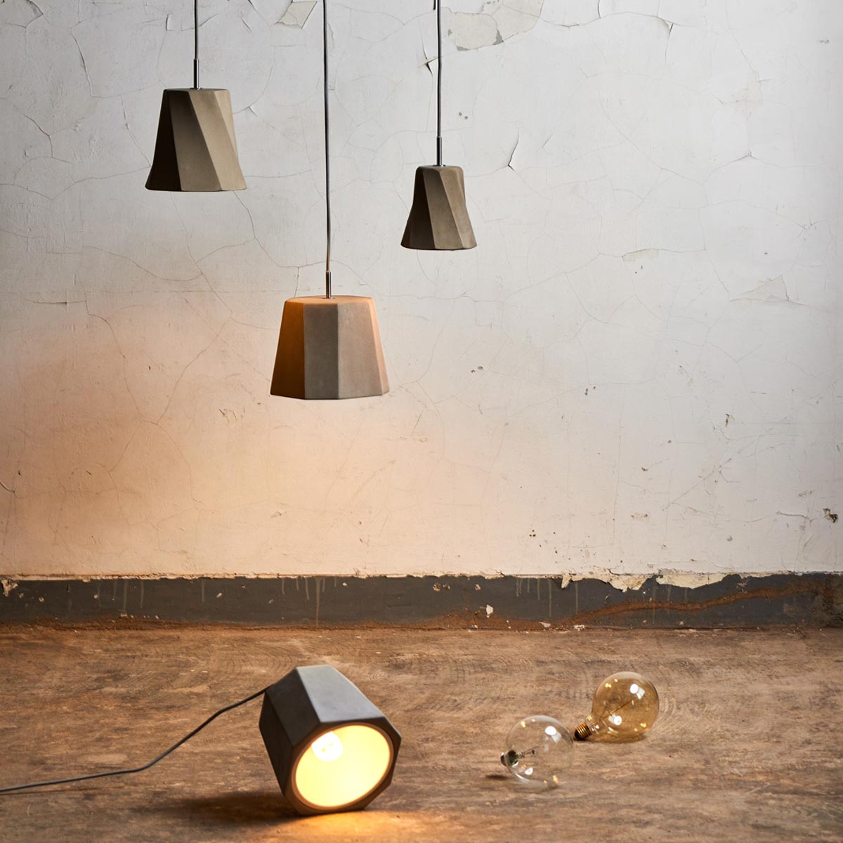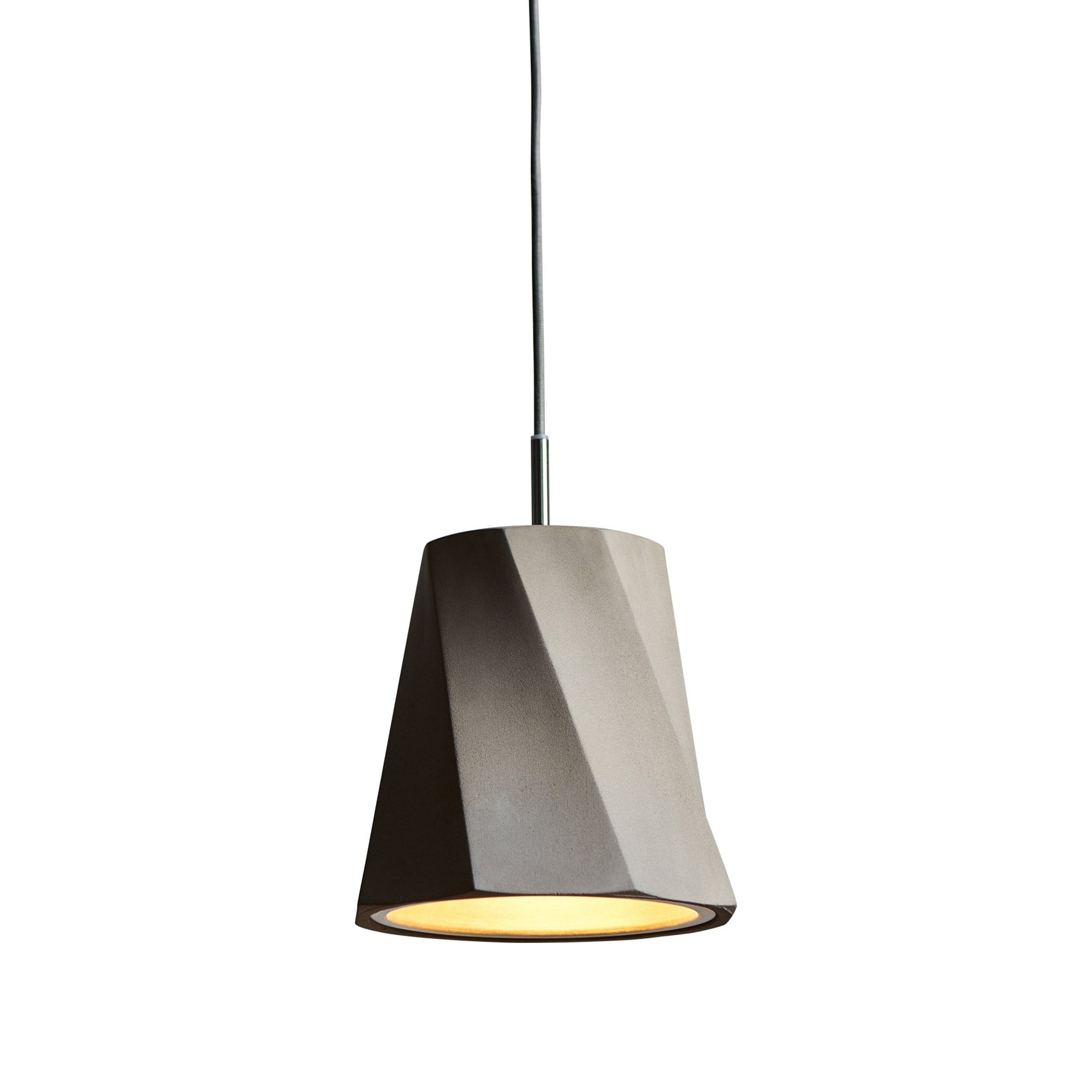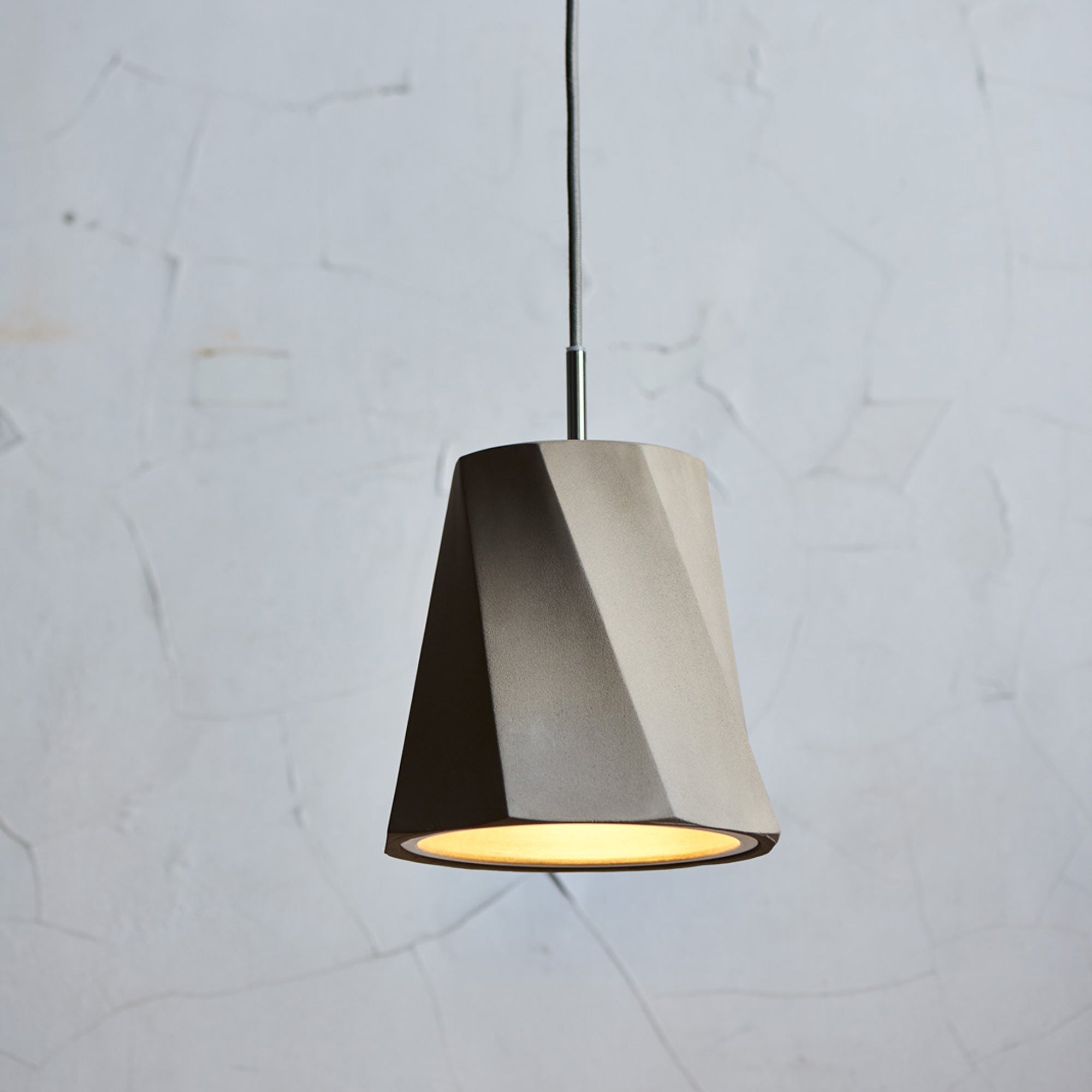 Trending earth and eco-friendly design inspiration plays out in the Castle Swing Pendant Light from Seed Design, an intriguing fixture with a twisted dimensional silhouette. A diffuser tempers radiance in lighting, as a solid concrete shade contributes to energy efficiency.