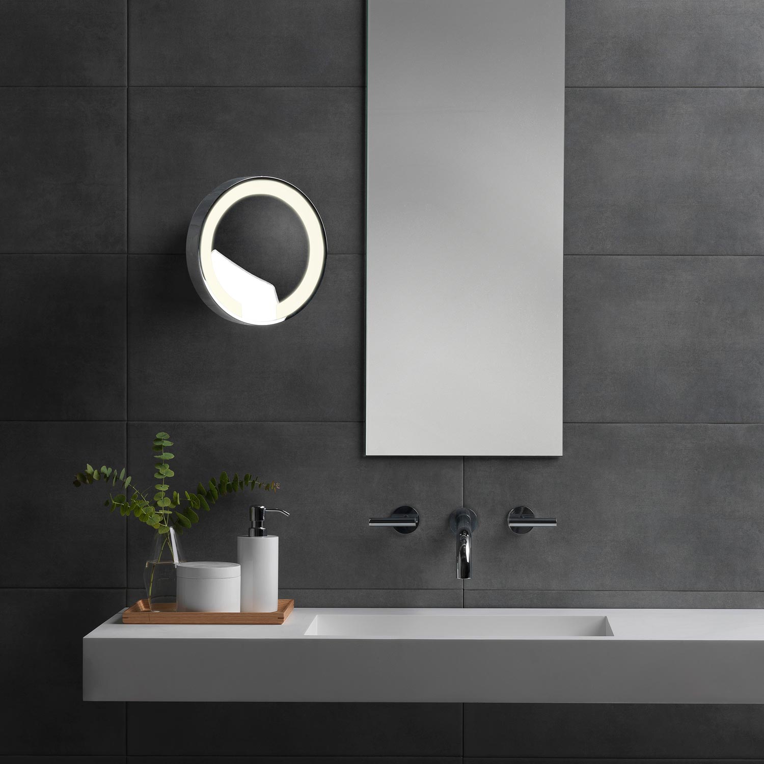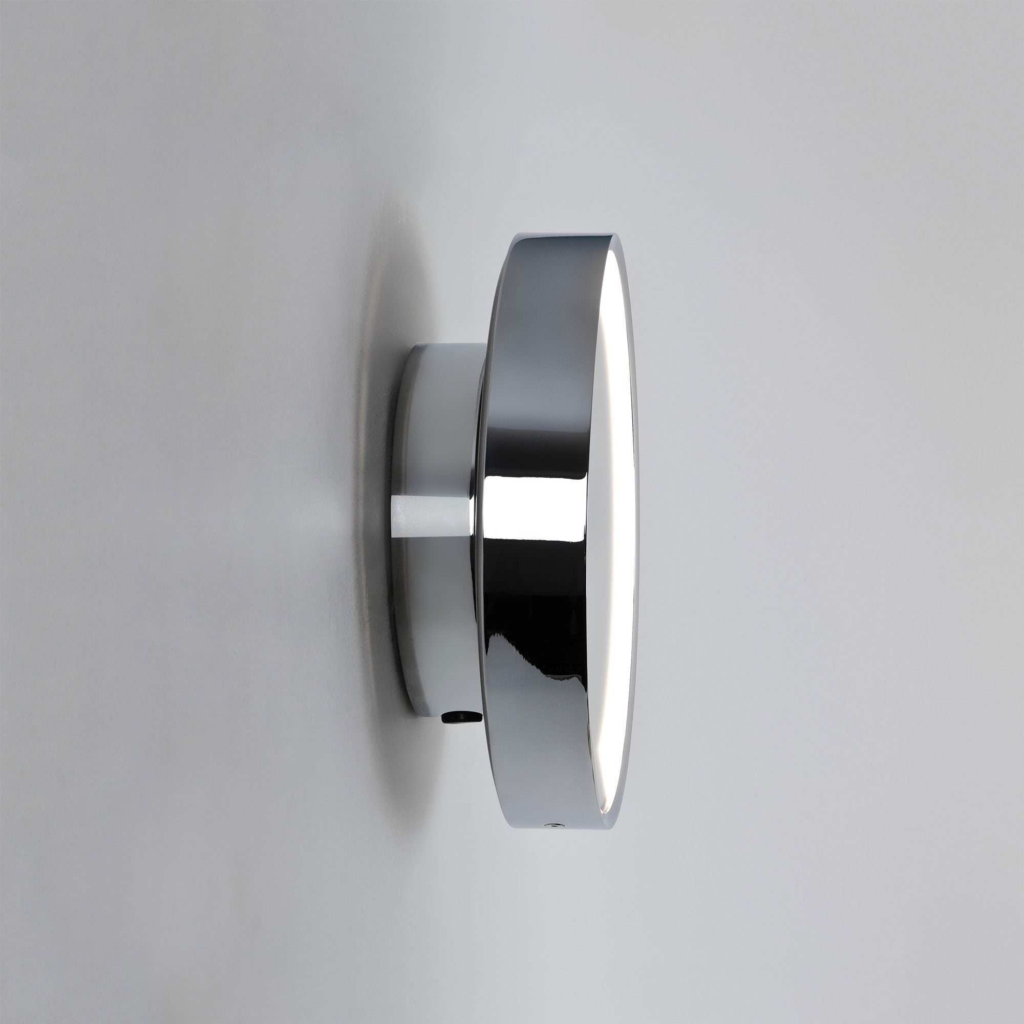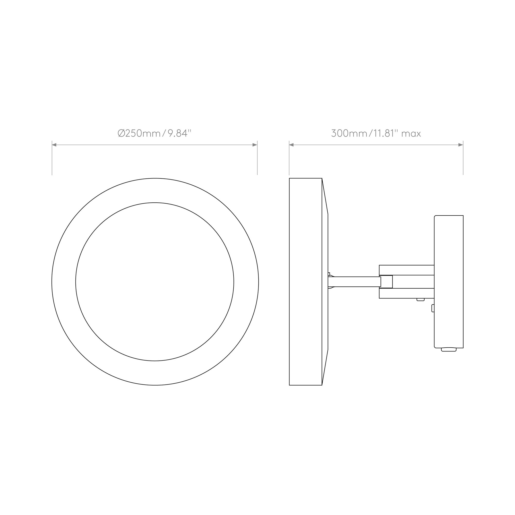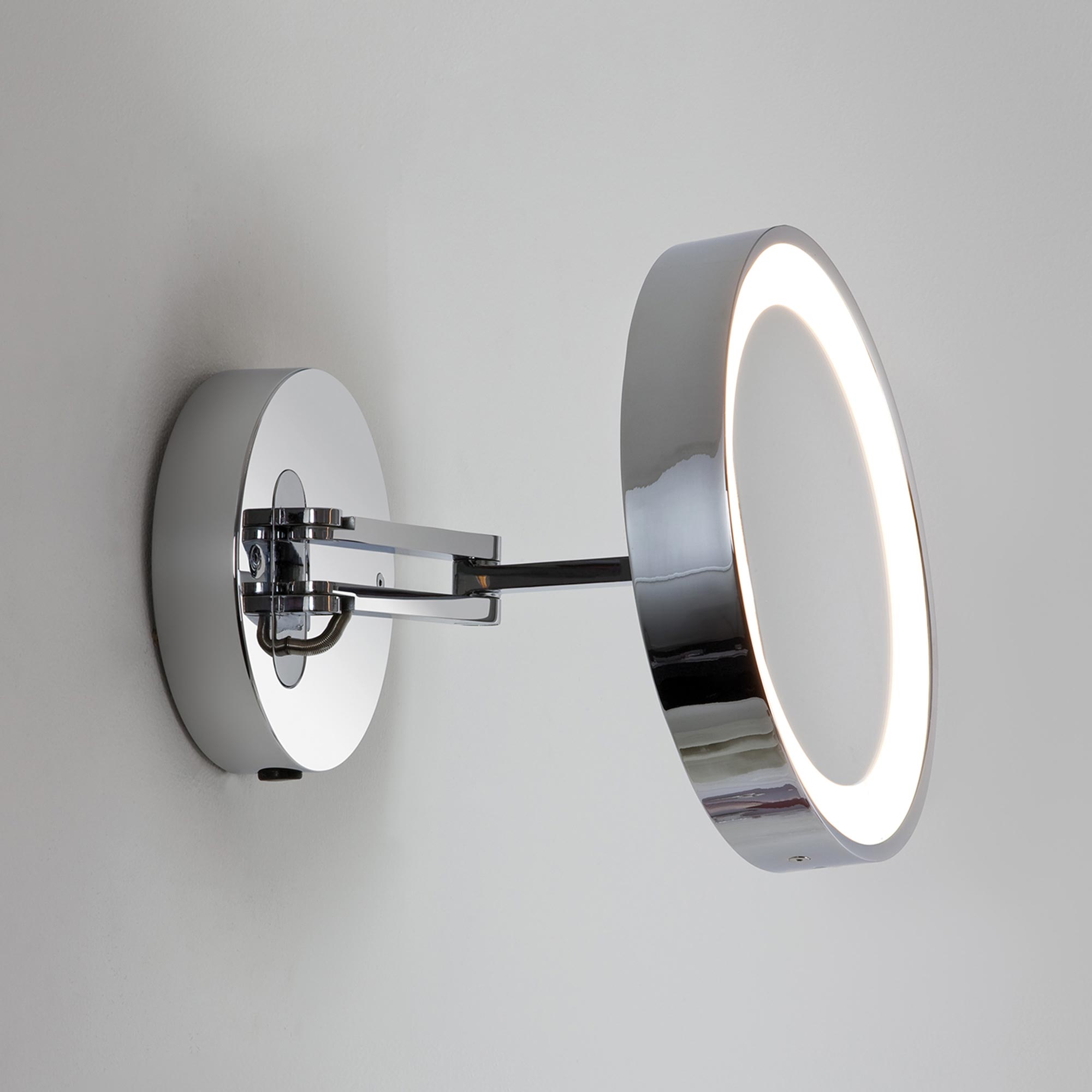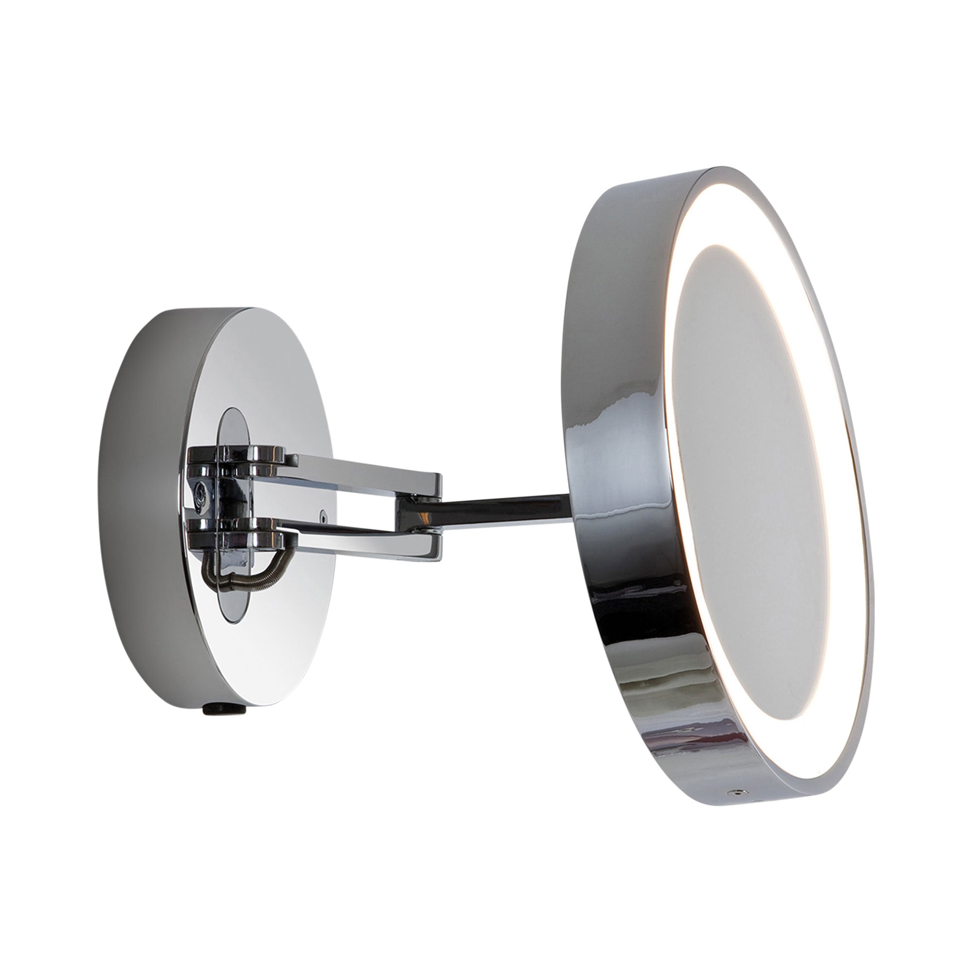 A modular design makes the difference in utility and aesthetics as the Catena LED Magnifying Wall Mirror from Astro Lighting provides an exceptional update to modern bath spaces. A complement to bath vanities, this round mirror provides magnified reflection and pleasing, low-glare illumination encircling its round metal frame. Extend its mirrored section while in use and retract between uses, turning a functional, adjustable mirror into a charming design piece.