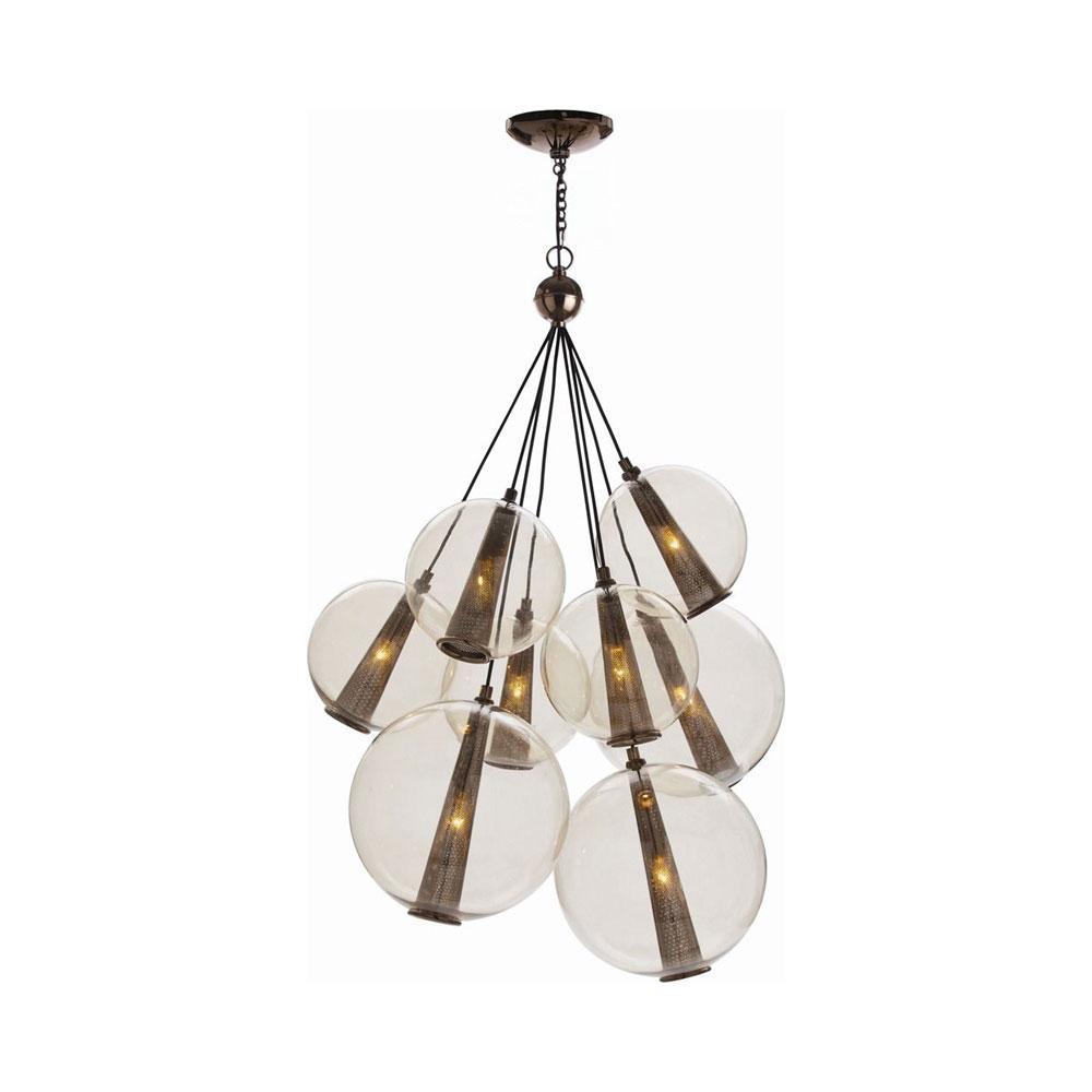 This adjustable (51"- 87" tall) eight-light cluster of the glass Caviar spheres makes for a dramatic light sculpture over a table.