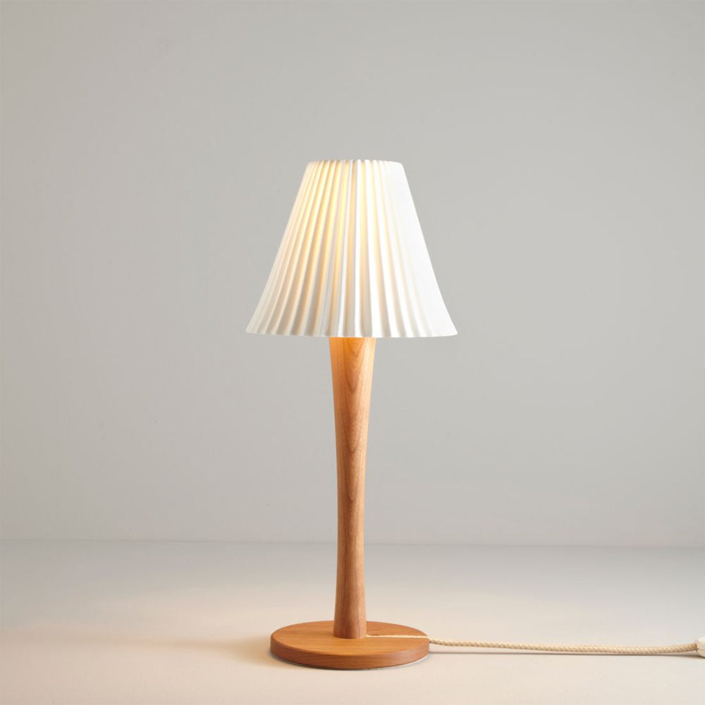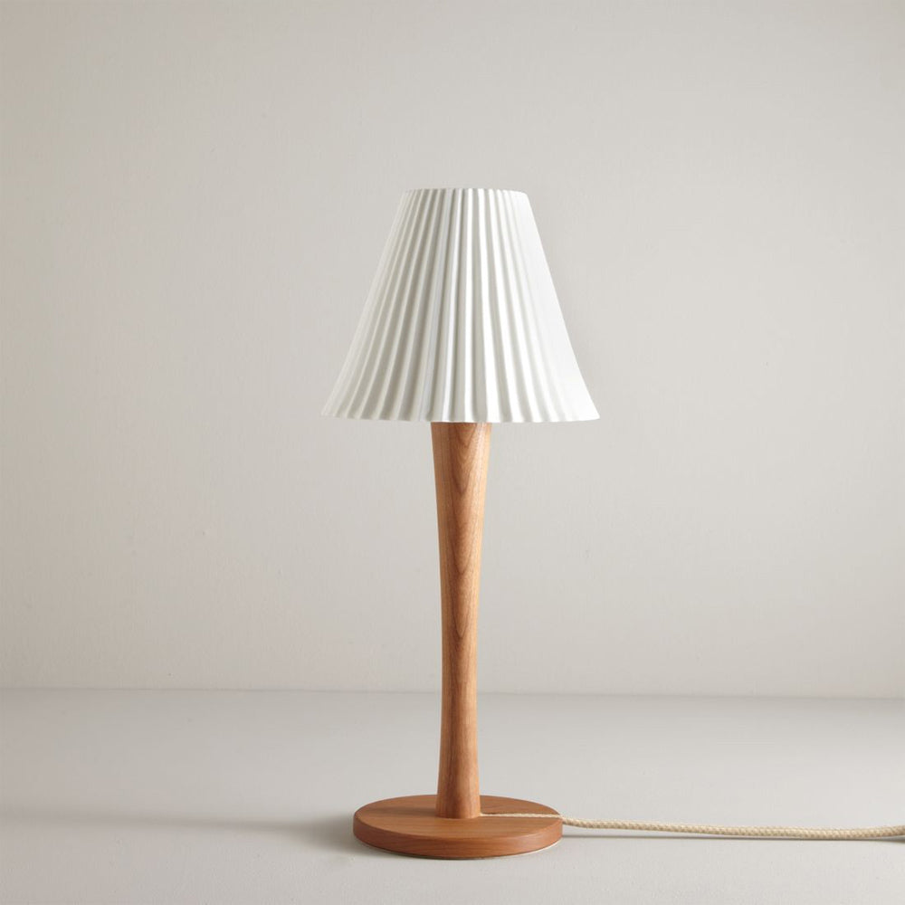 Rekindle a love of simplicity and organic charm all in one with the Cecil Table Lamp from Original BTC. A carefully tapered stem fashioned of beautiful wood matches its round base, topped with a delicate bone china pleated shade. The earthy influence of this assembly includes a low-key braided flex cord.
