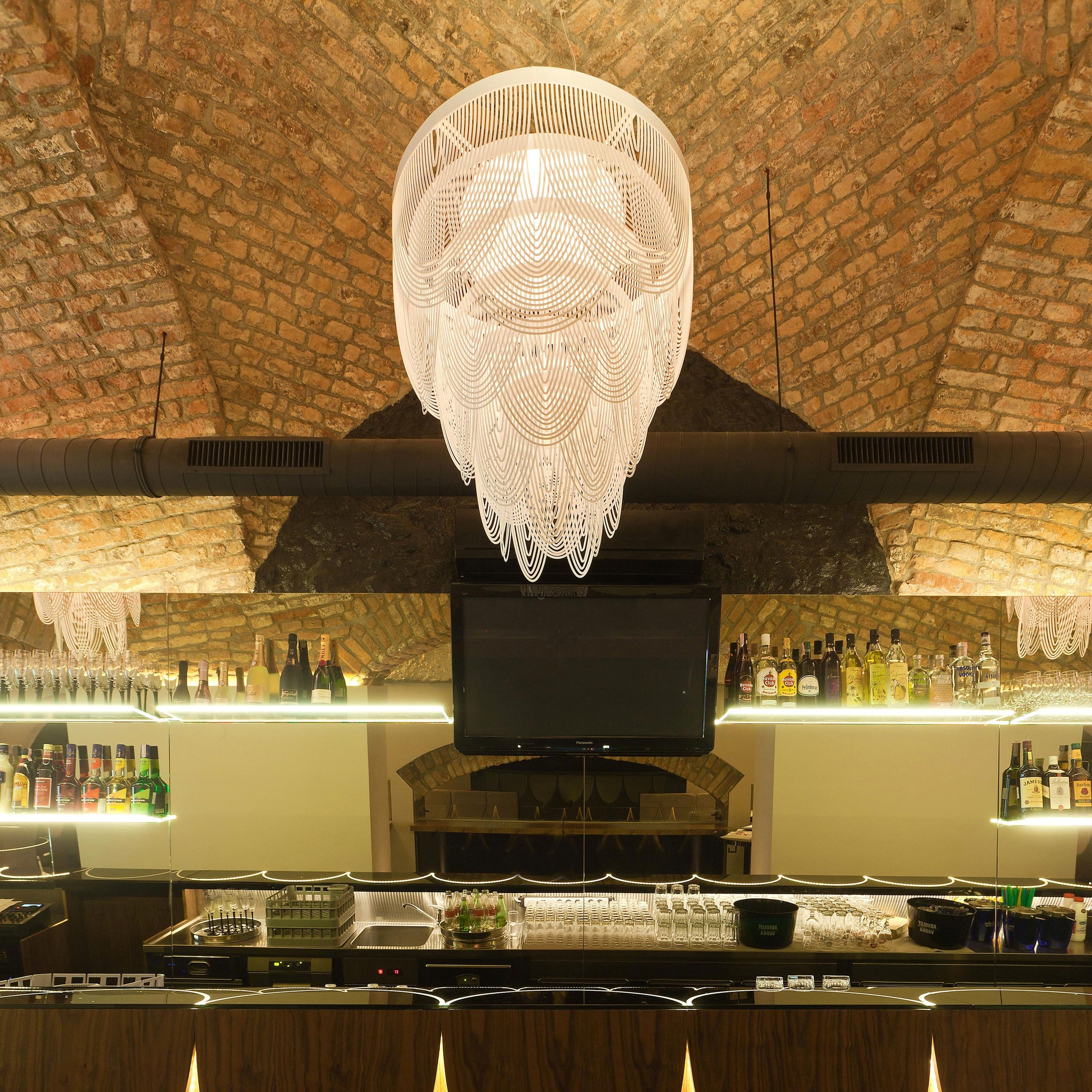 Slender, symmetrical draping create a tiered effect for the stunning Ceremony Chandelier from Slamp.