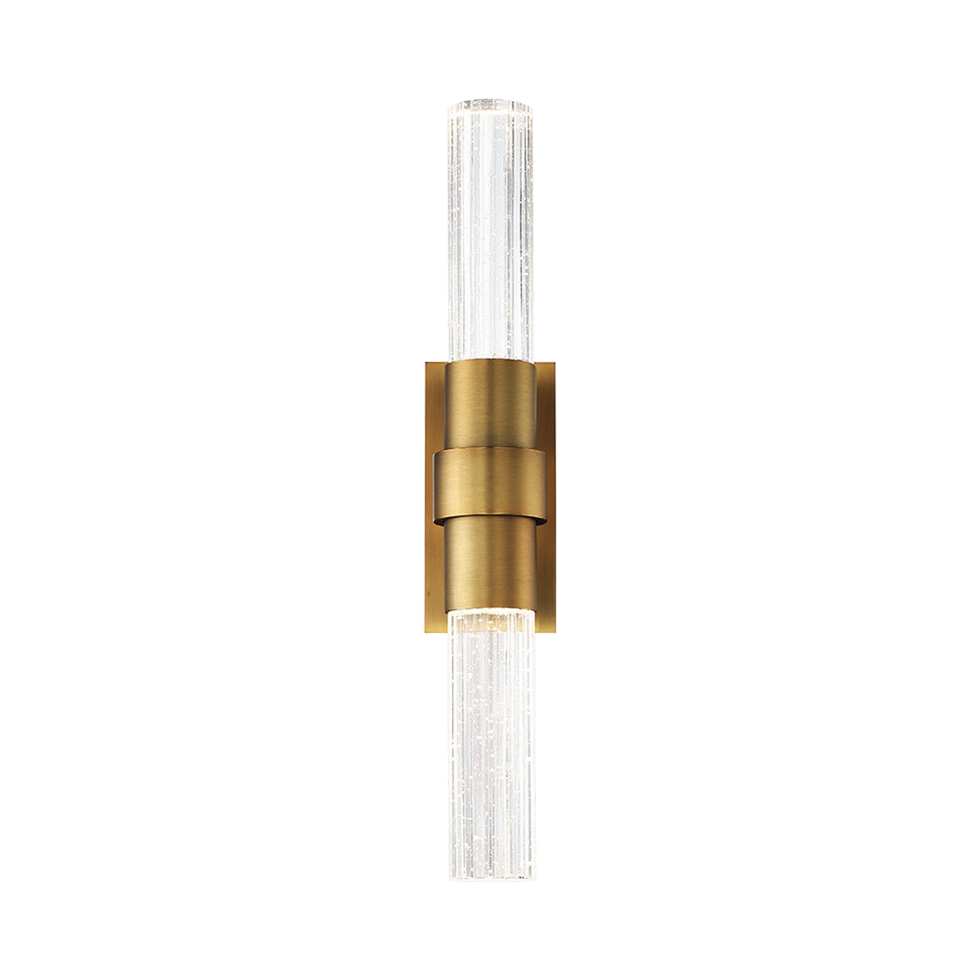 Finished in aged brass, this indoor sconce adds a touch of understated luxury to your modern décor. And that’s before you even turn on the light, which fills the painstakingly V-cut seeded crystal columns with a mix of understated elegance and spectacular shine. Ceres is a subtle statement piece wherever it’s mounted, a sophisticated accent that will endure over time, thanks to its powerfully rated LEDs and refined style.