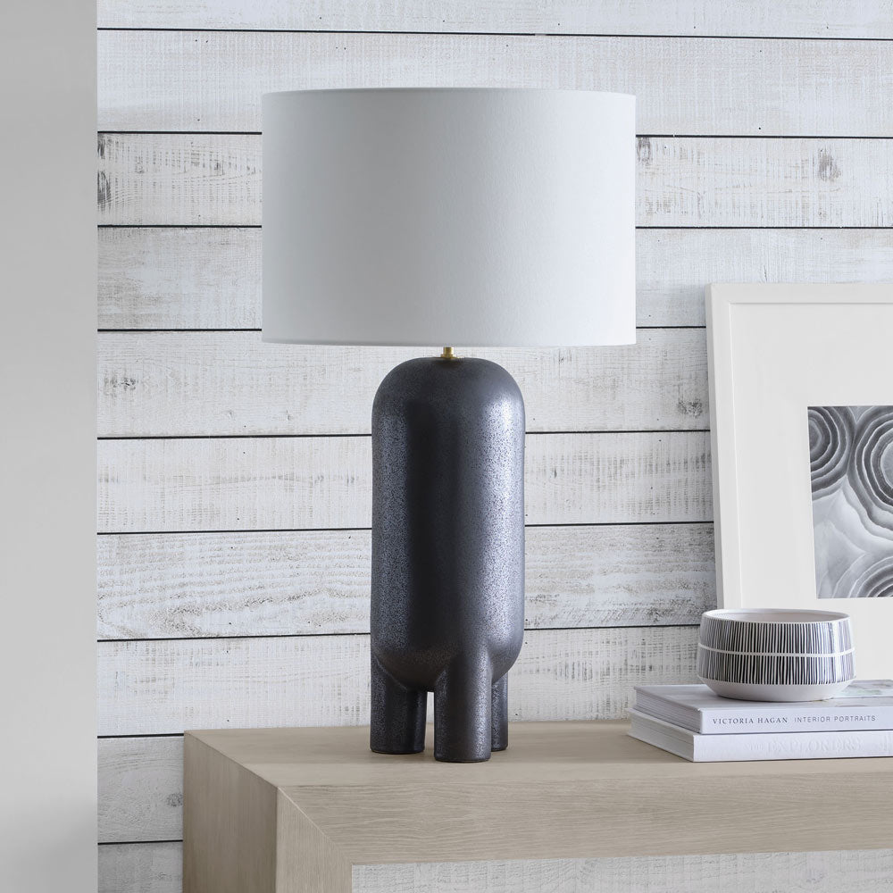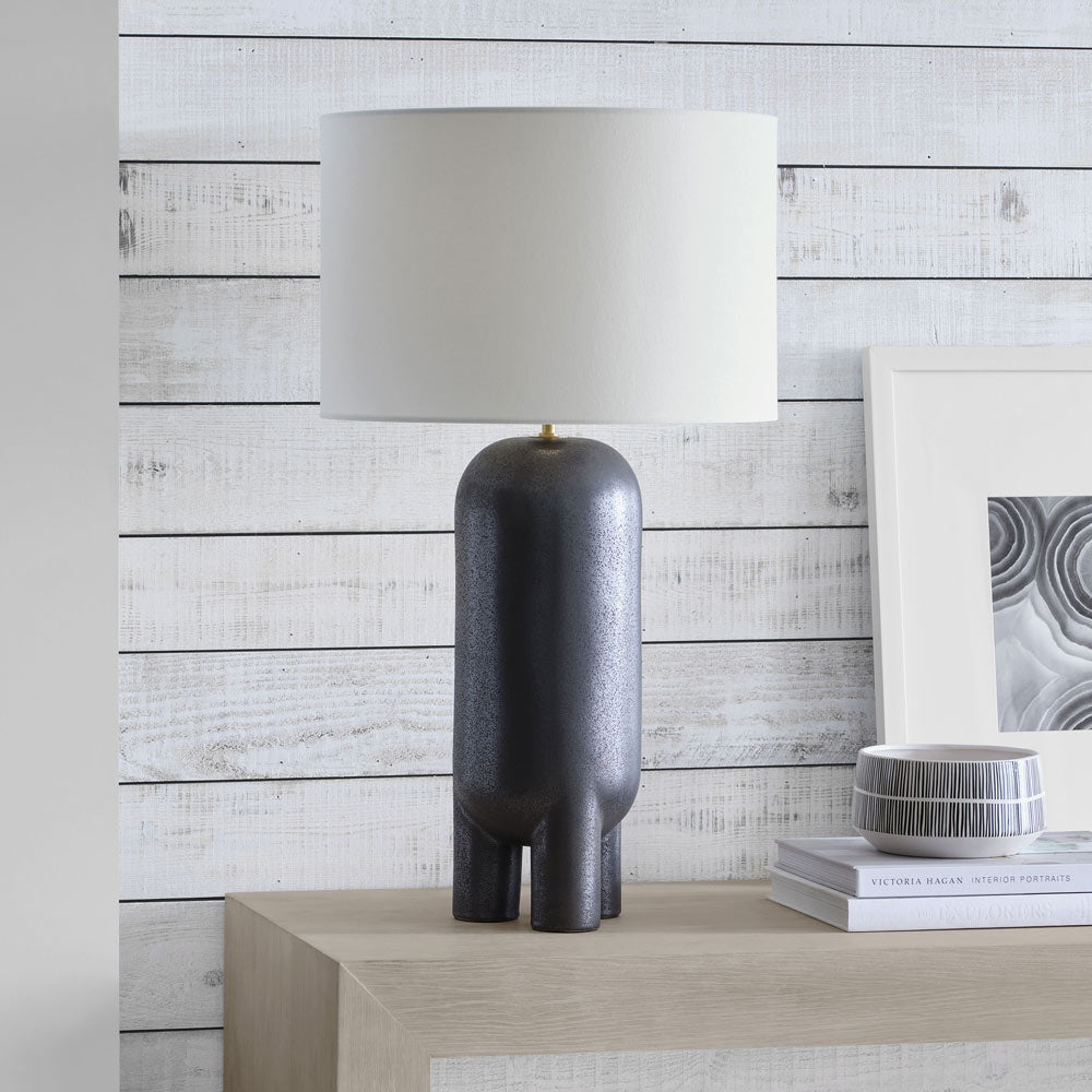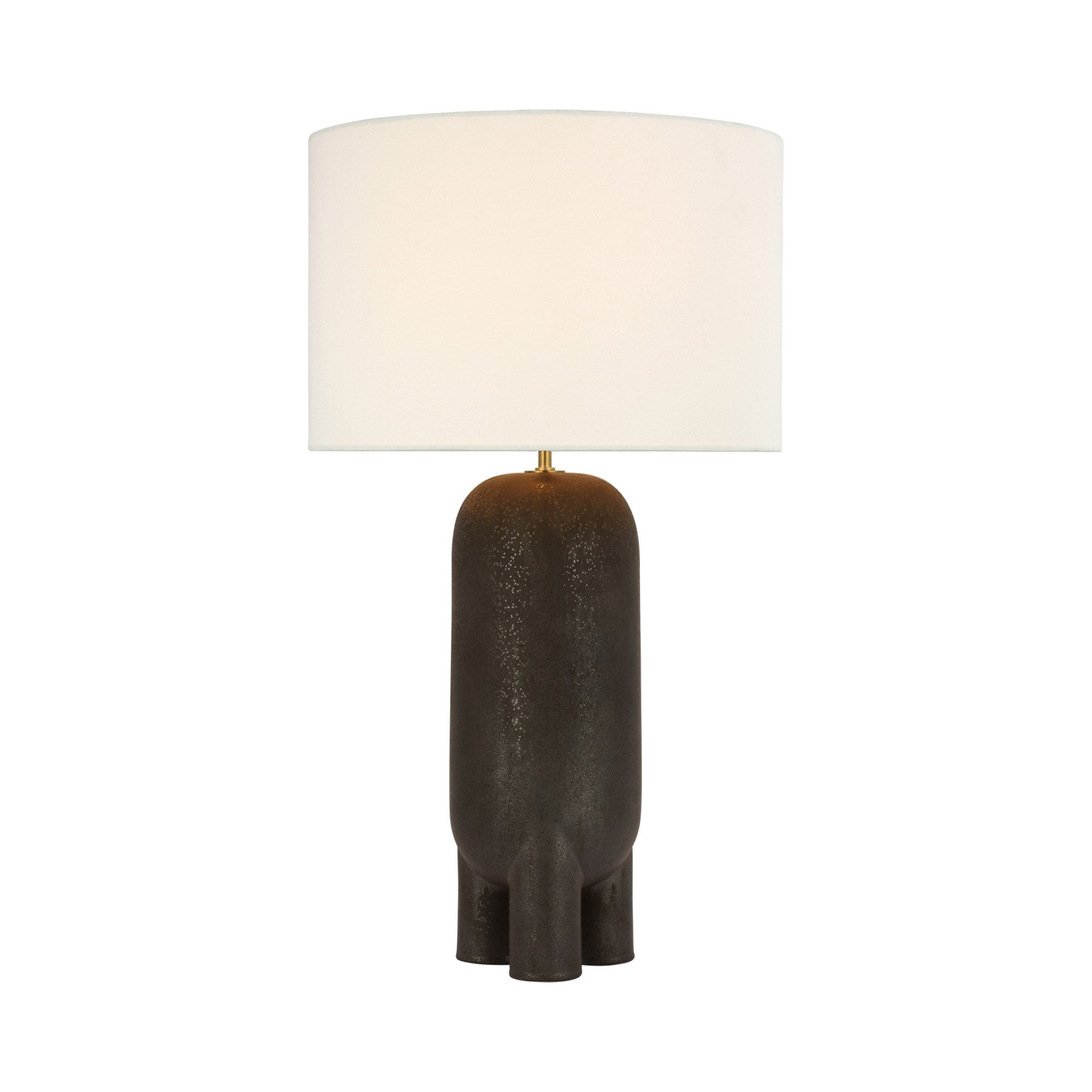 A cool capsule body adds dynamic curvature to the Chalon Table Lamp from Visual Comfort Signature. Topped with a drum shade that perfectly echoes its silhouette, this table lamp is a sleek, modern addition to surrounding decor.