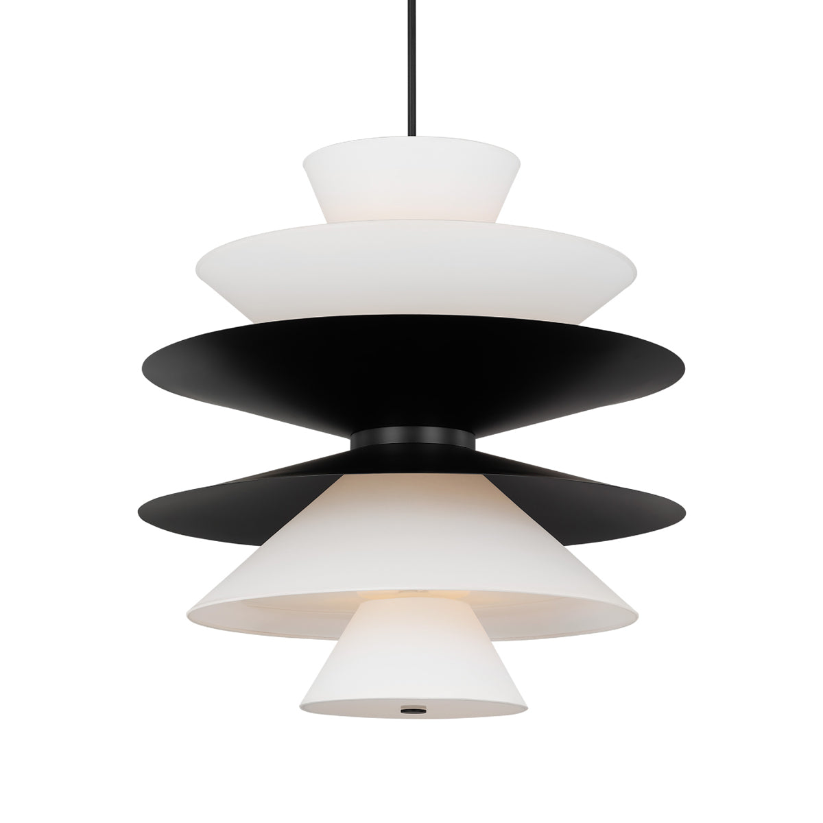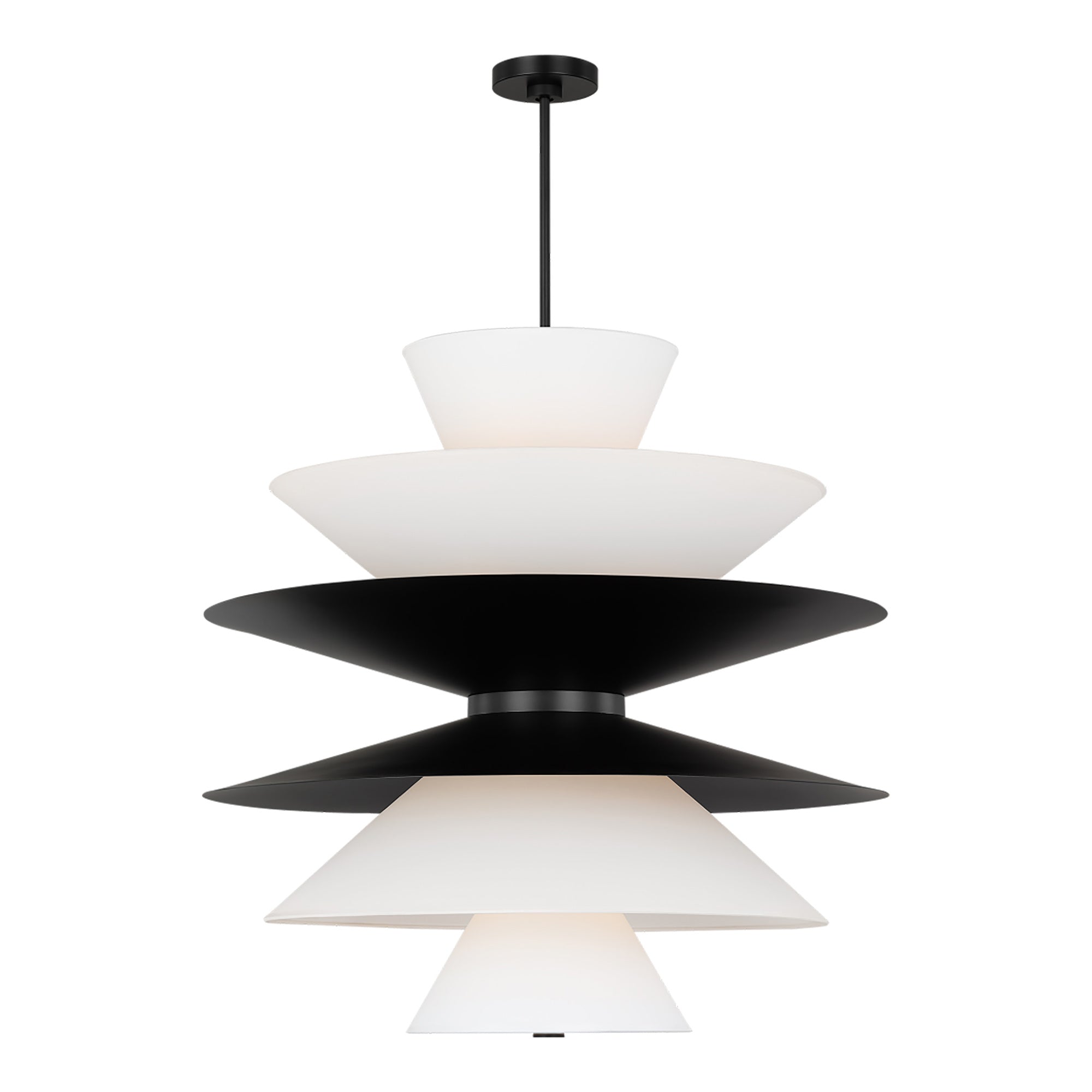 Edgy attitude offers a dynamic flavor in design as the Chambord Pendant Light from Visual Comfort Studio resurrects retro style with fully contemporary overall aesthetics. A cinched center gathers inverted pairs of conical shades, creating an intriguing look. This captivating fixture offers a superb update to sassy design schemes.