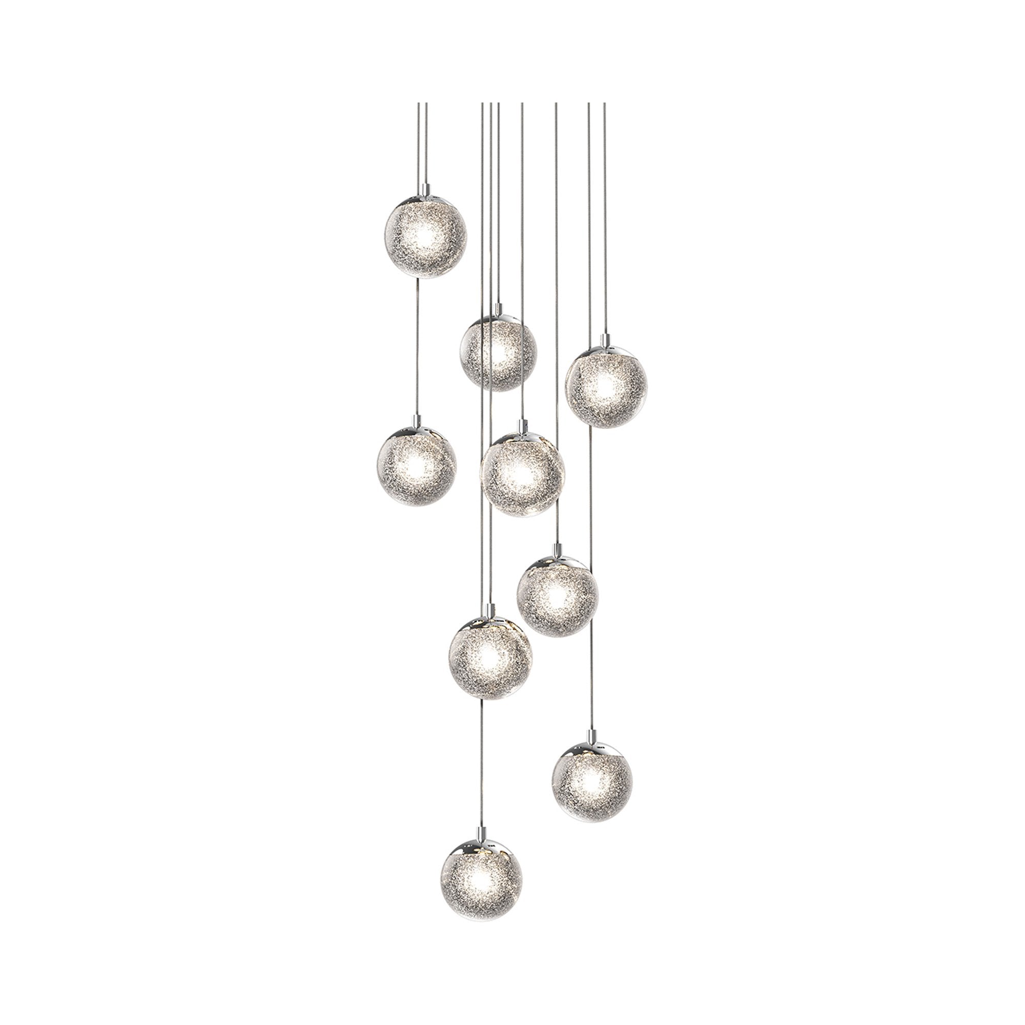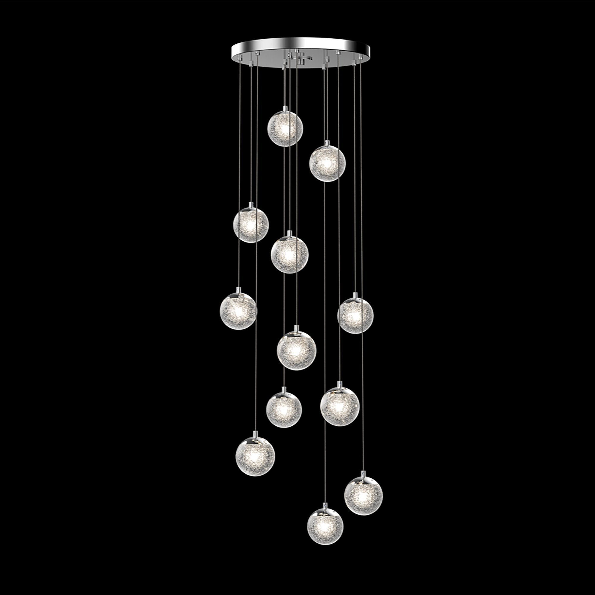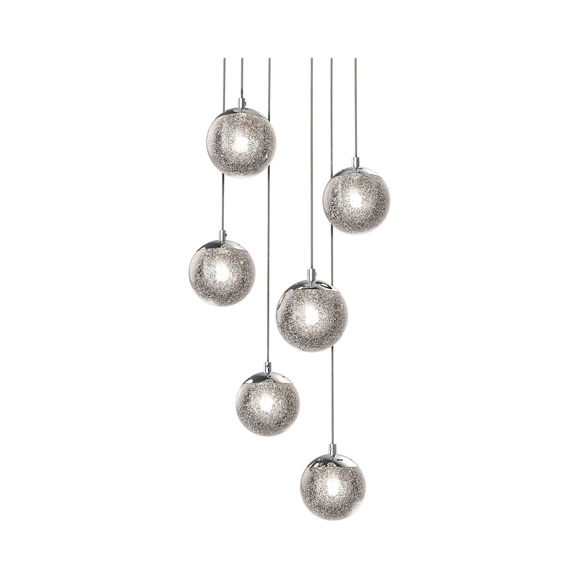 The shimmering glass globe s displayed in the Champagne Bubbles LED Multi Light Pendant Light from Sonneman Lighting take the modern interior to new heights.