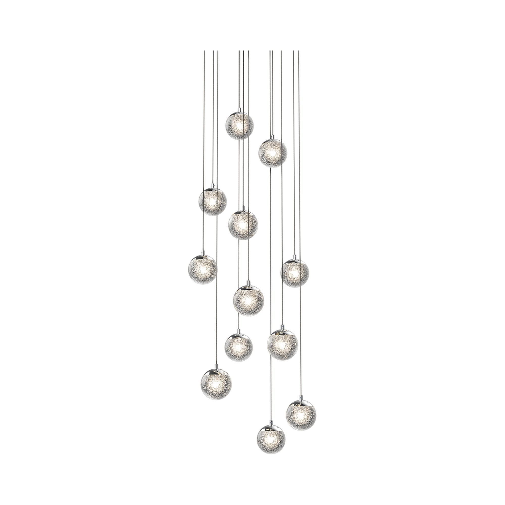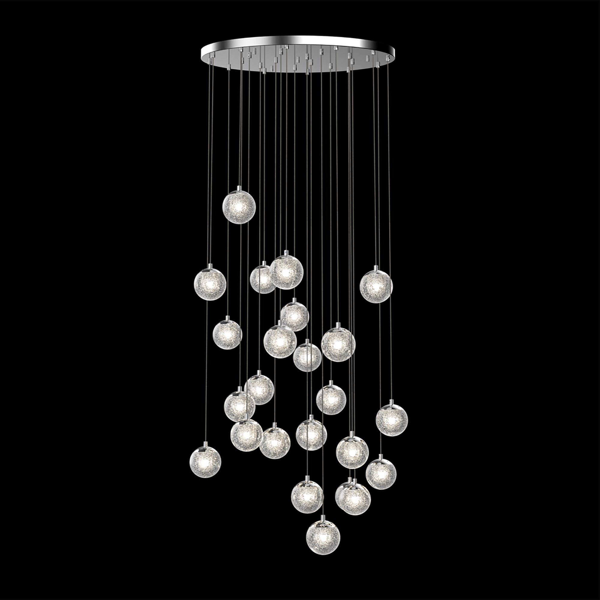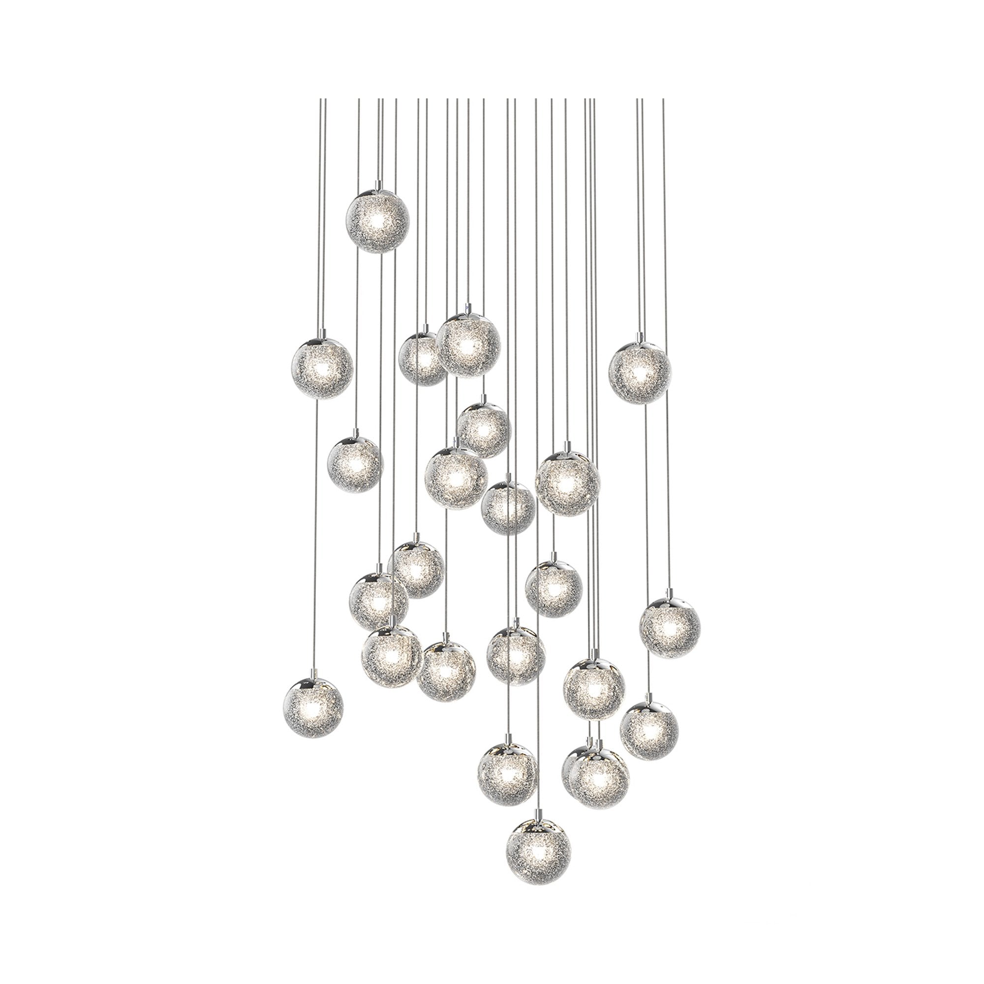 The shimmering glass globe s displayed in the Champagne Bubbles LED Multi Light Pendant Light from Sonneman Lighting take the modern interior to new heights.