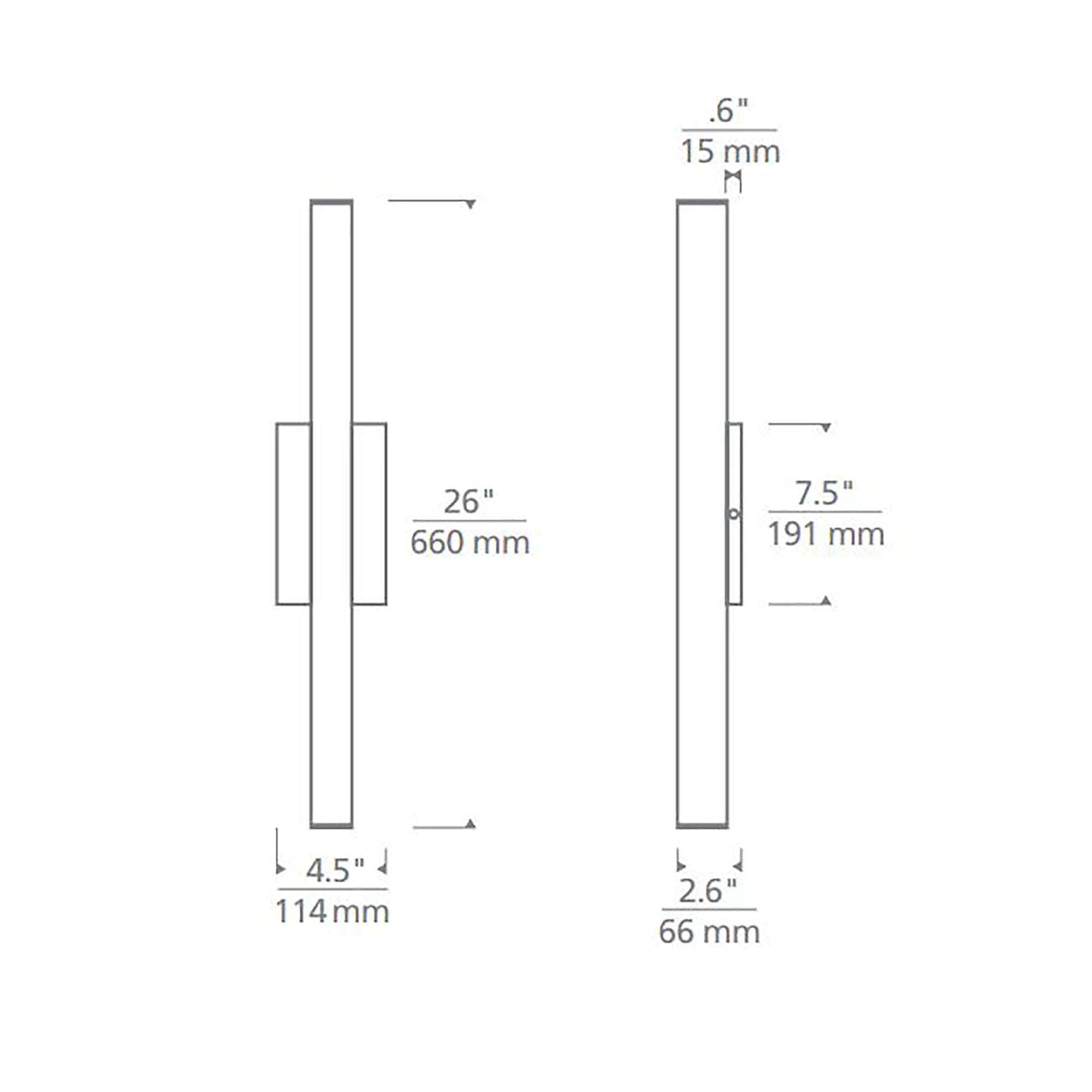 - Large: 4.5"W X 26"H; 2.6" Extension