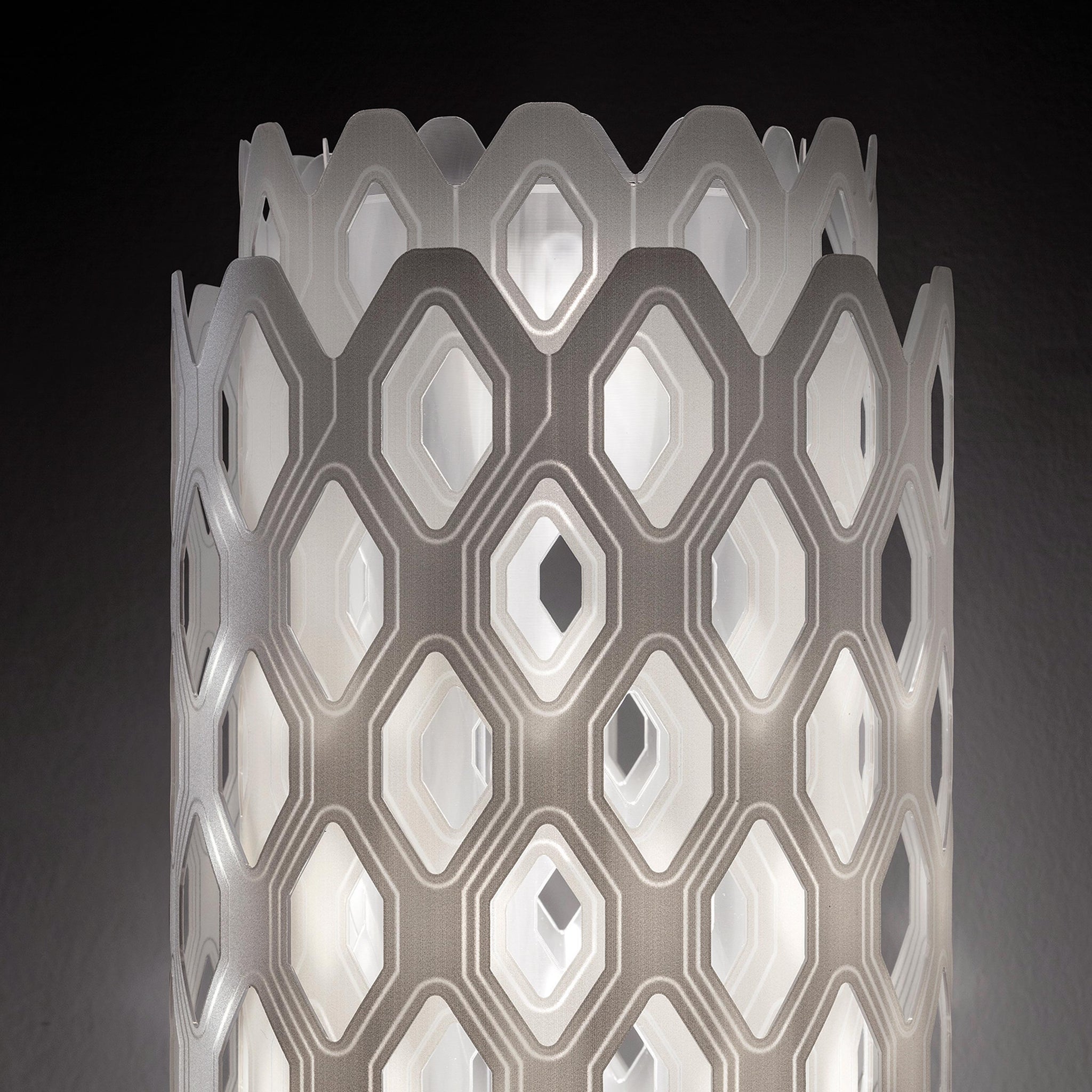 Layers of diamond-inspired punch-outs create striking depth and dimensionality for the eye-catching Charlotte Floor Lamp from Slamp.