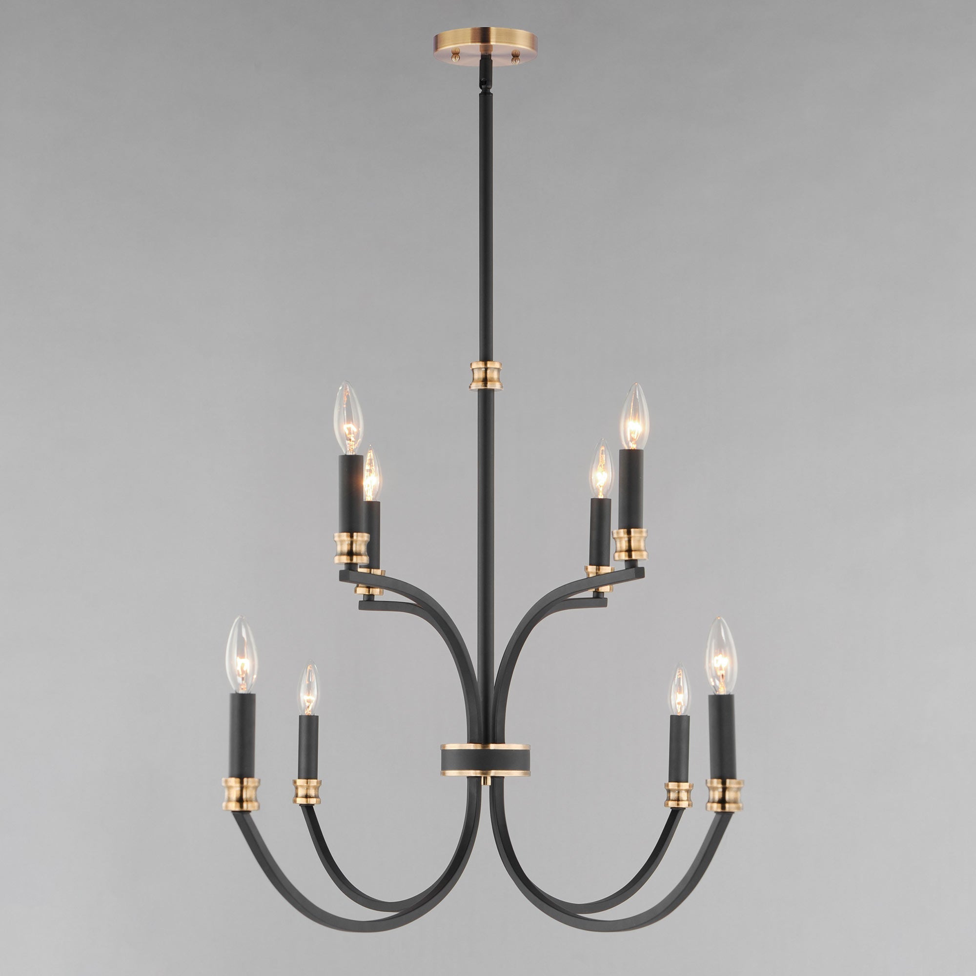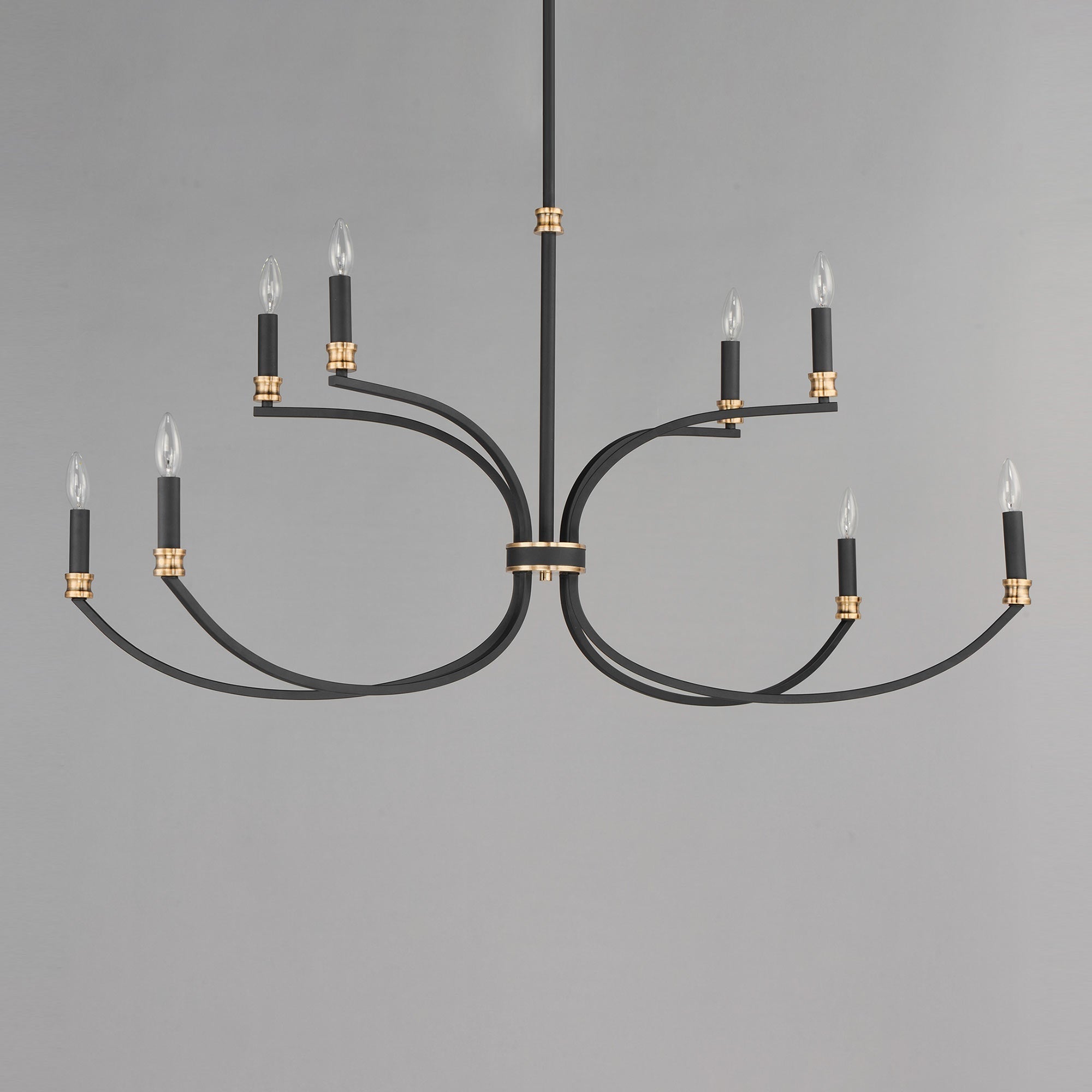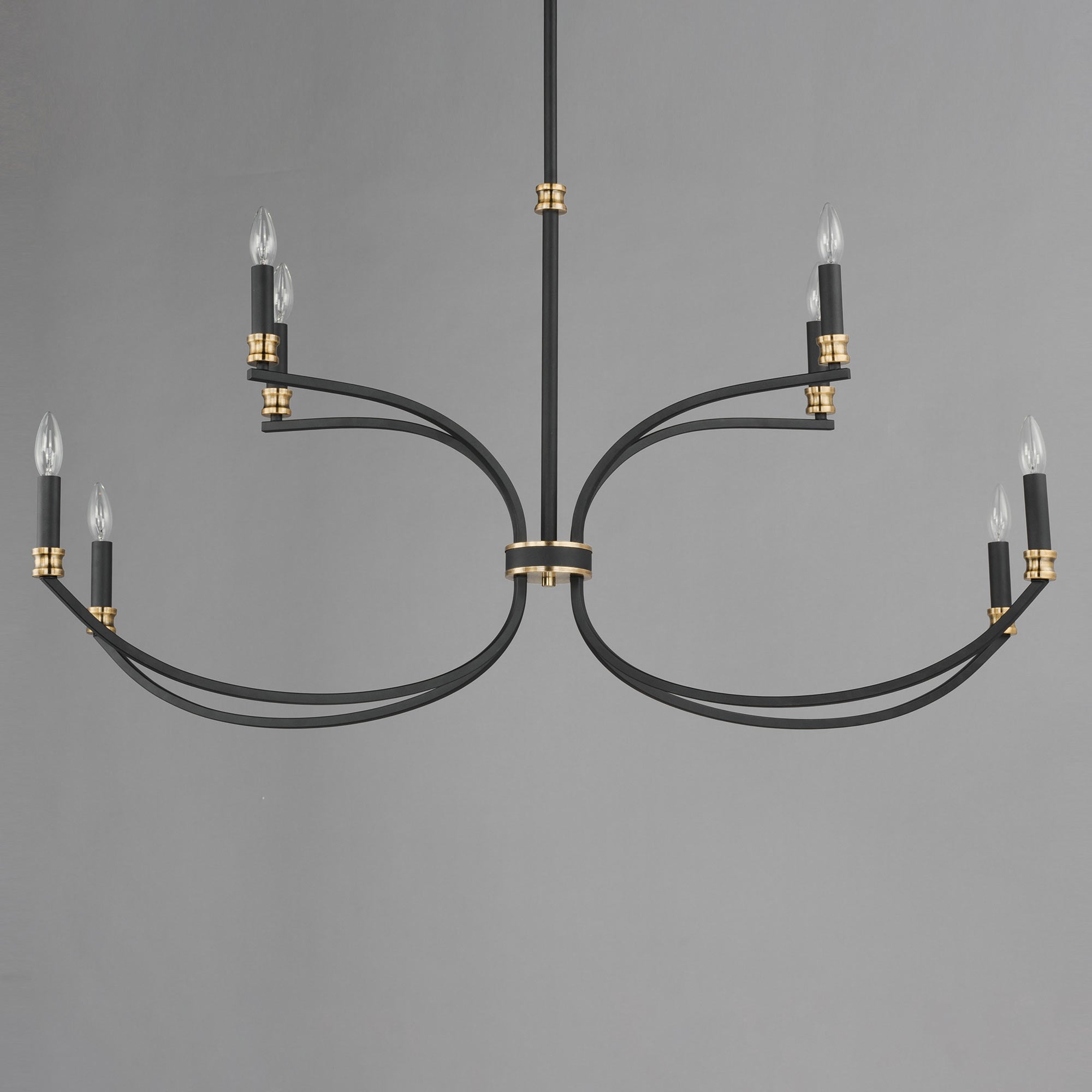 A visual experience like no other shapes a design attitude fit for the artistically inclined, with a dose of quirky charm to go along. The Charlton Chandelier from Maxim Lighting delivers on silhouetting with symmetrically curved black steel tube arms capped by delicate candelabra-style lights. Antique brass accents form a two-tone palette with a sophisticated vibe.