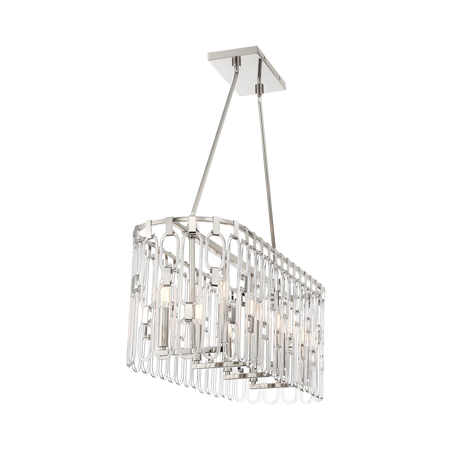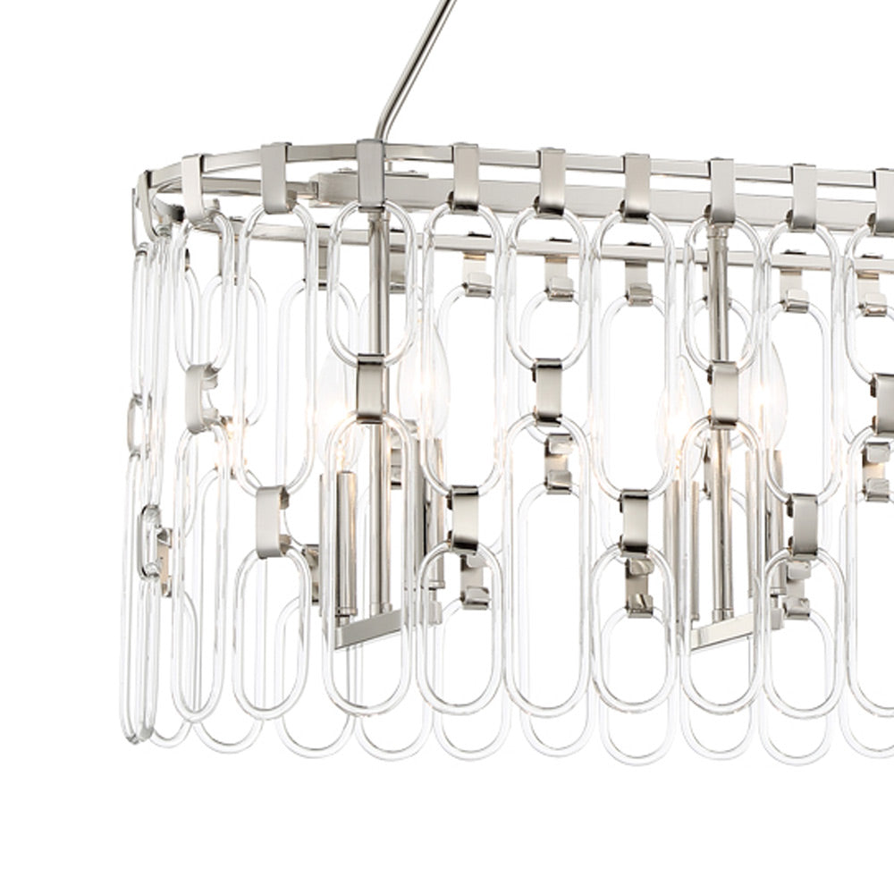 Embrace the delightful design of a light fixture with versatility and festive style. The Charming Linear Pendant Light from George Kovacs rests on a singular construction material, using chrome finish metal to fashion an oval ring frame, canopy, and open linked shapes, all of which reflect ambient lighting and highlight kitchen islands and entertaining spaces.