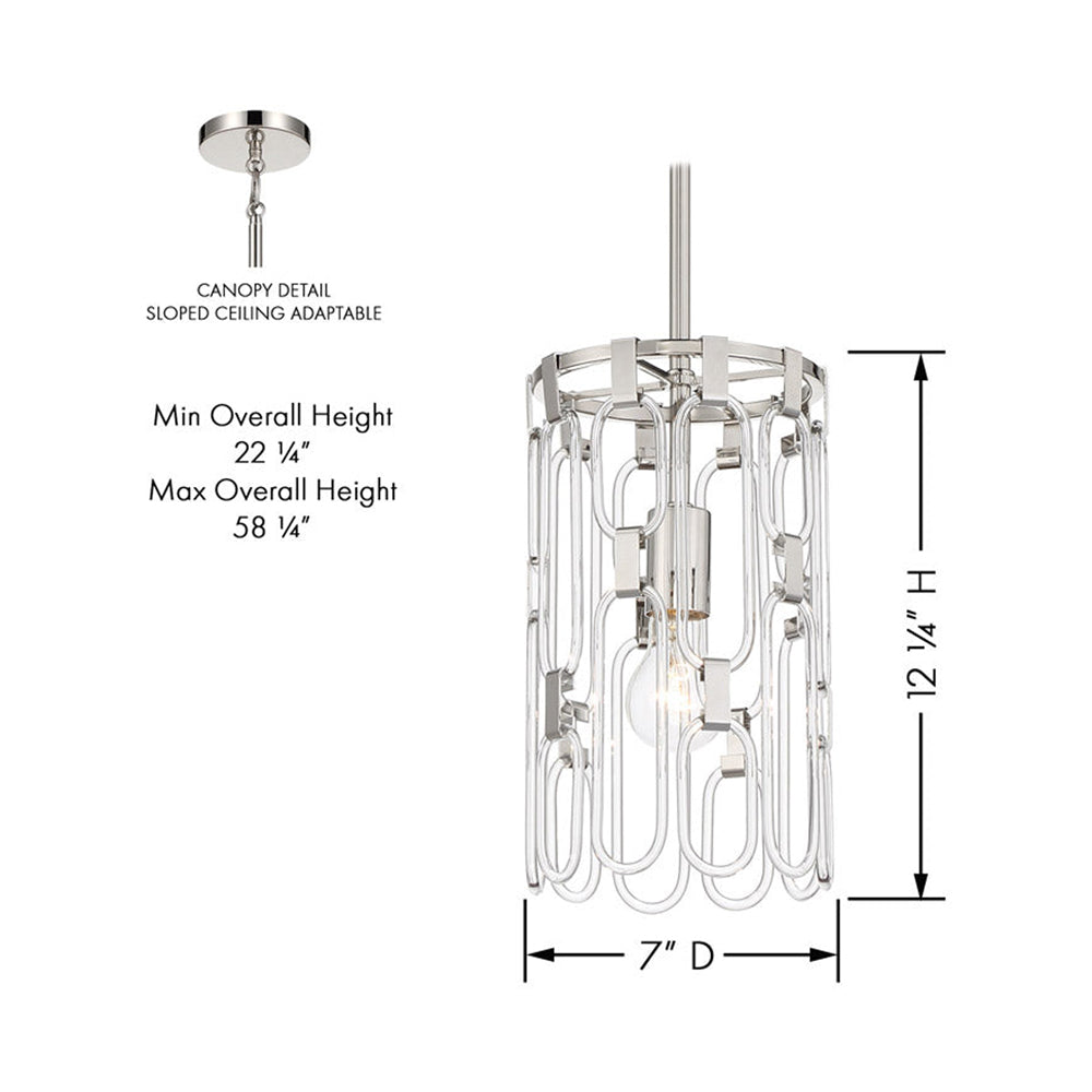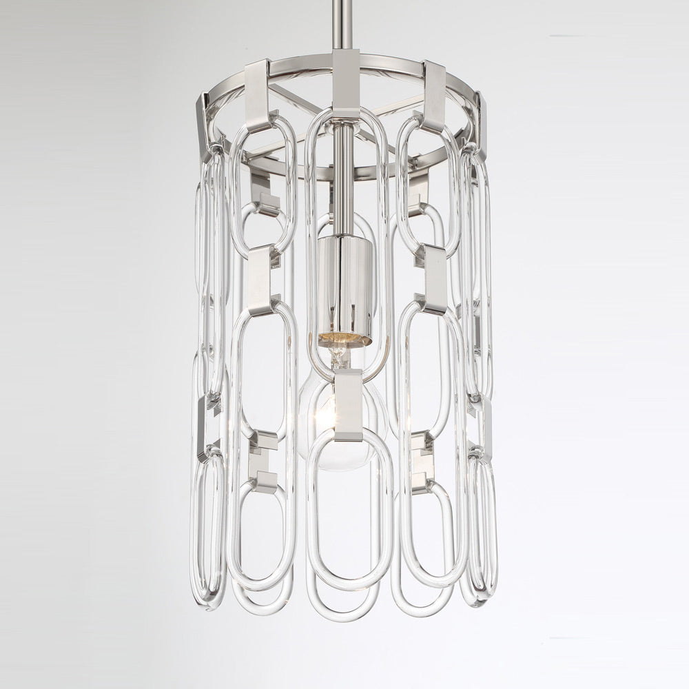 Sensible order drives a fun and fancy design narrative in a light fixture perfect for illuminating nooks and corner spaces. Made of polished nickel finish metal framing and looped open link accents, the Charming Pendant Light from George Kovacs delivers radiant lighting and creates a captivating look.