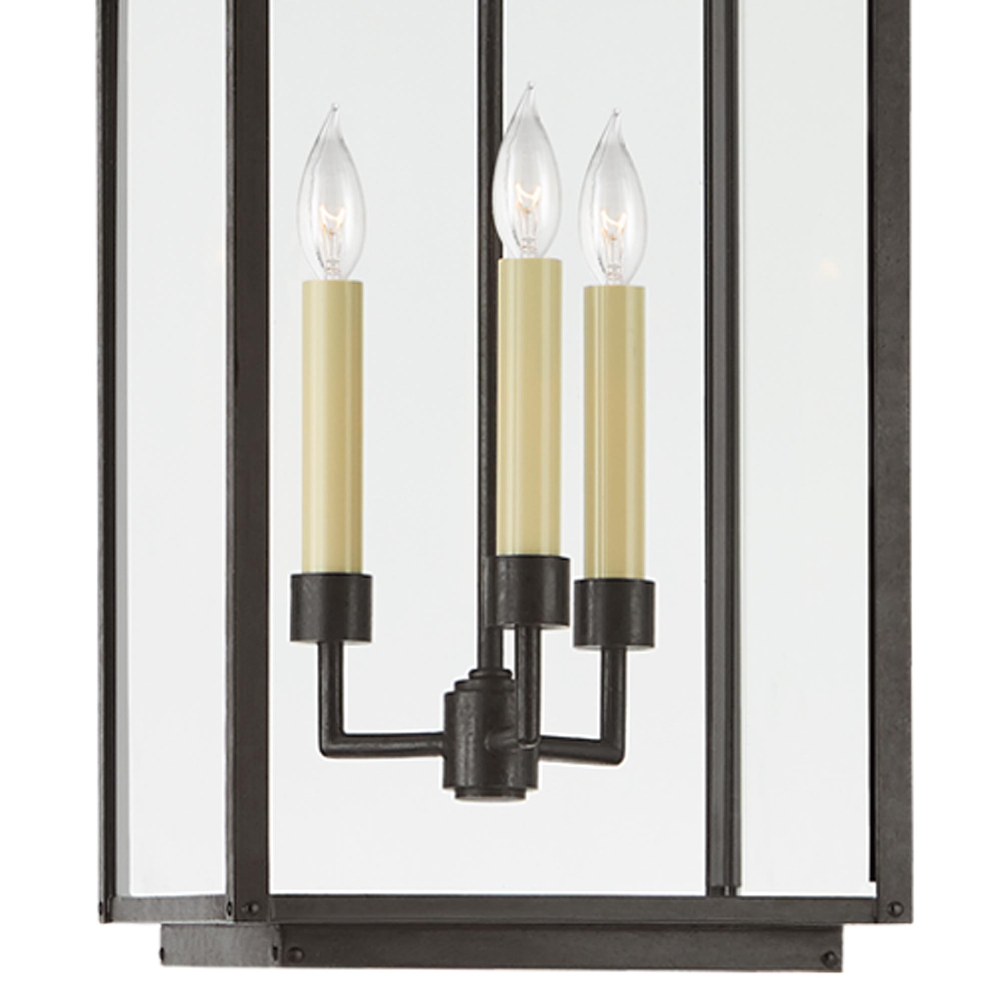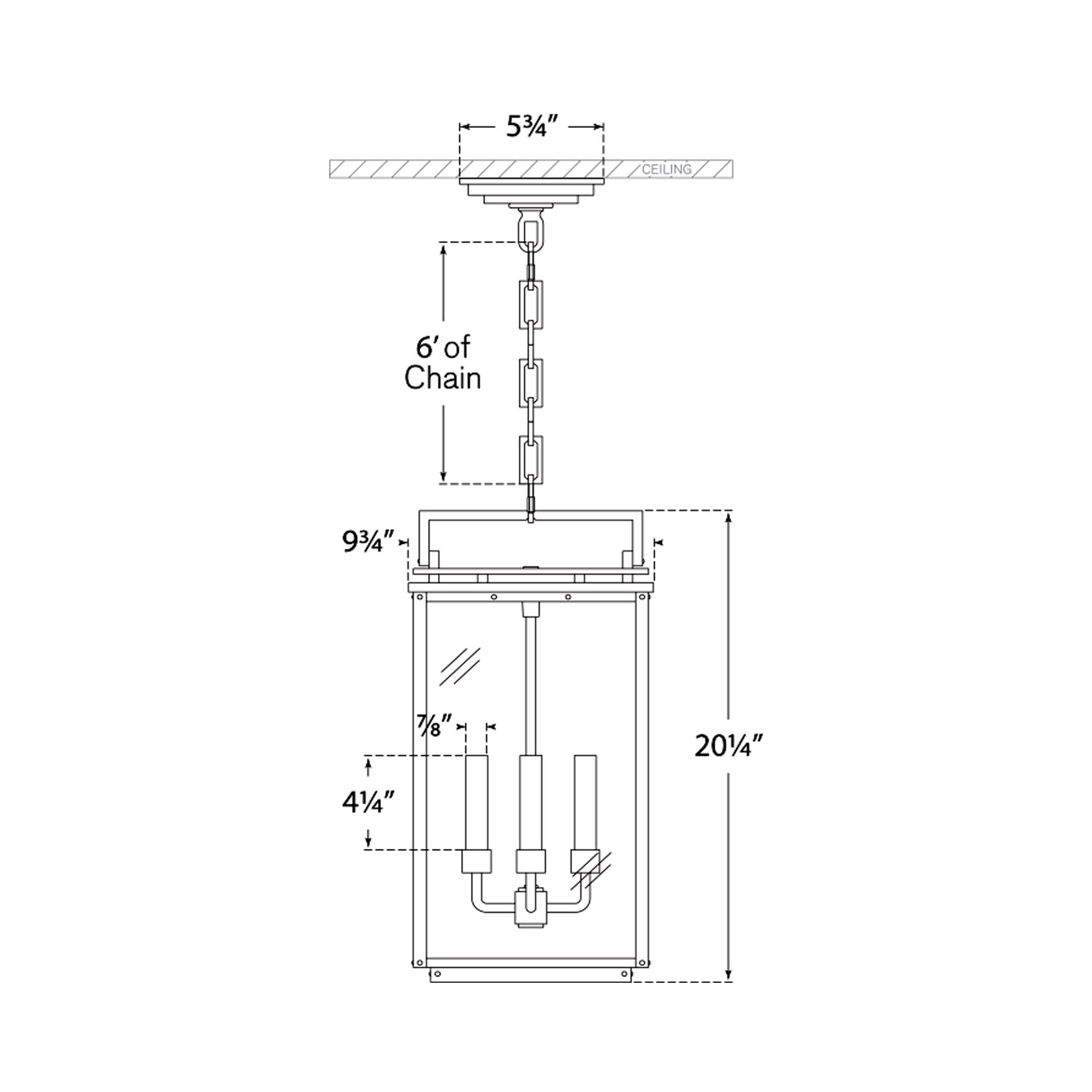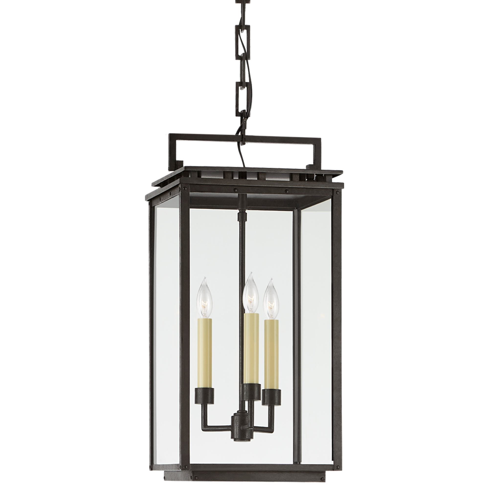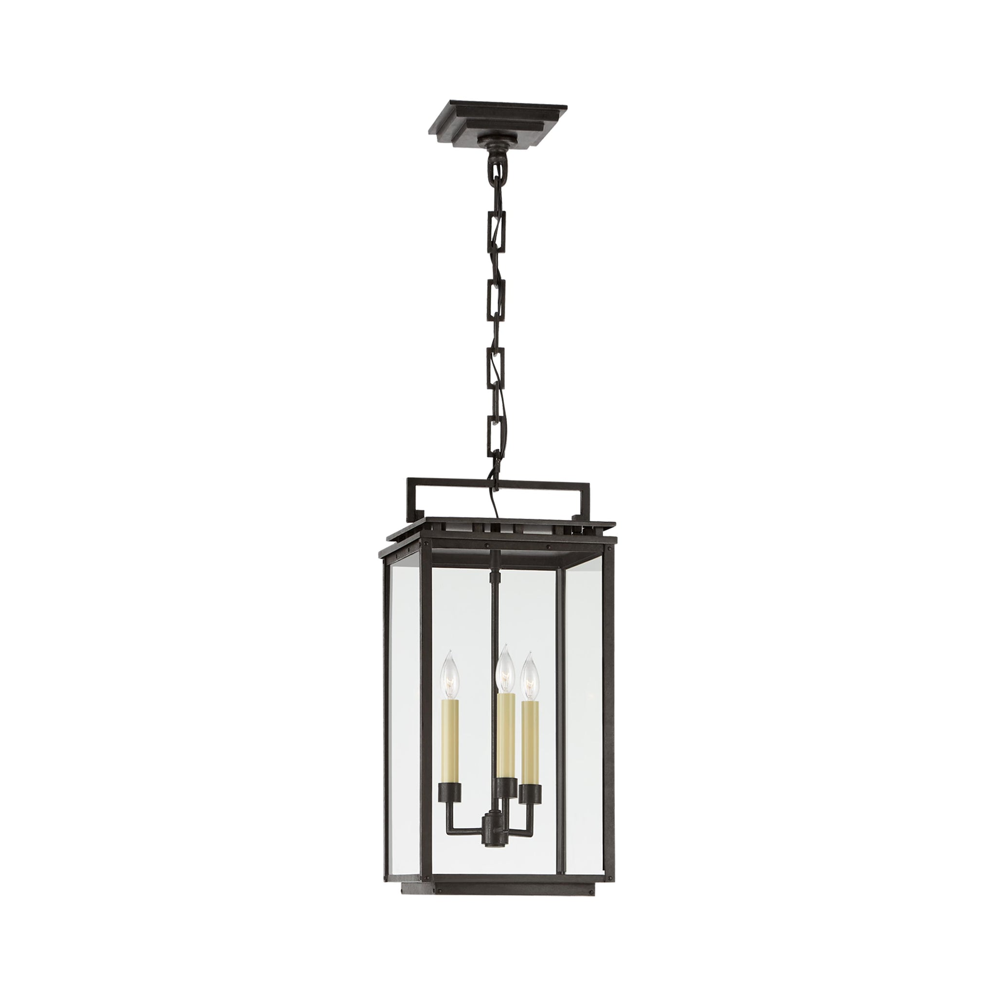 Elevate elegance in an exterior setting with the decadent Cheshire Outdoor Pendant Light from Visual Comfort Signature. Reflecting a soft village motif, its rectangular metal frame and glass panels shield old-fashioned candelabra-style bulb sockets.