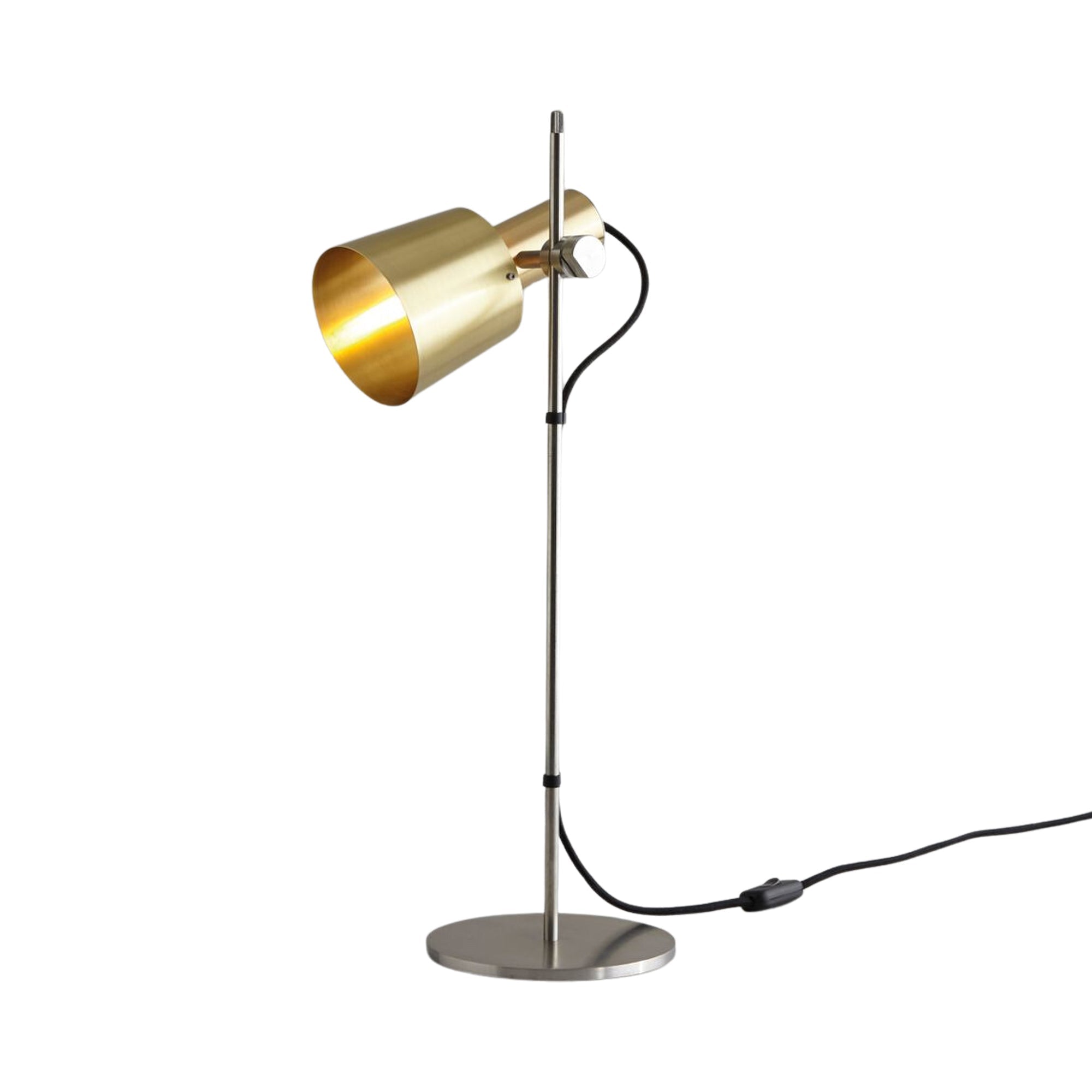 A striking dual finish palette complements classic 1960s fare as the Chester Table Lamp from Original BTC becomes a show-stopping light source in a home office or living space. Studio style influence is softened with sleek, smooth accents as a shapely metal shade moves up and down on a slender rod to perfect light delivery.