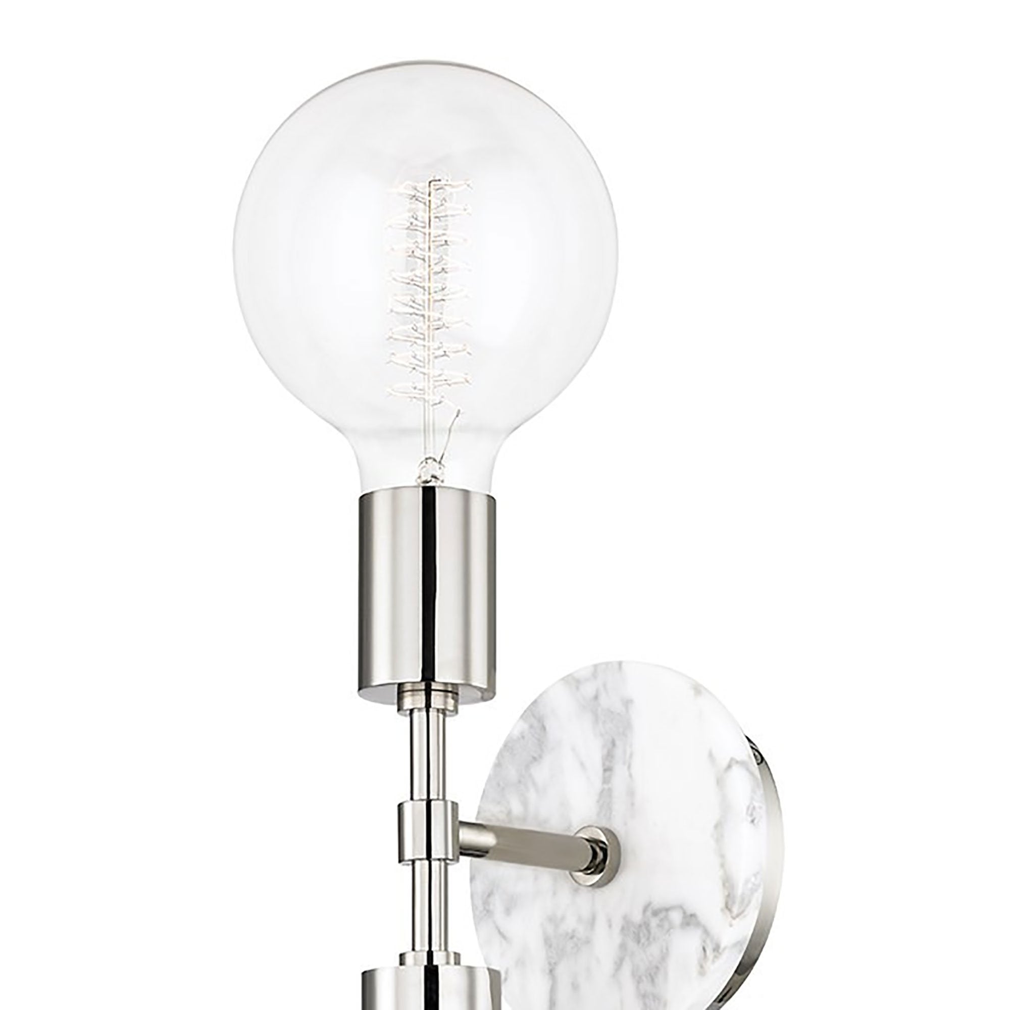 Create a glamorous living room atmosphere that's as sophisticated as you. Flaunting touches of marble and a gleaming metal frame, this modern Chloe Wall Light from Mitzi turns up the elegance as it bathes your surroundings in luminous light.