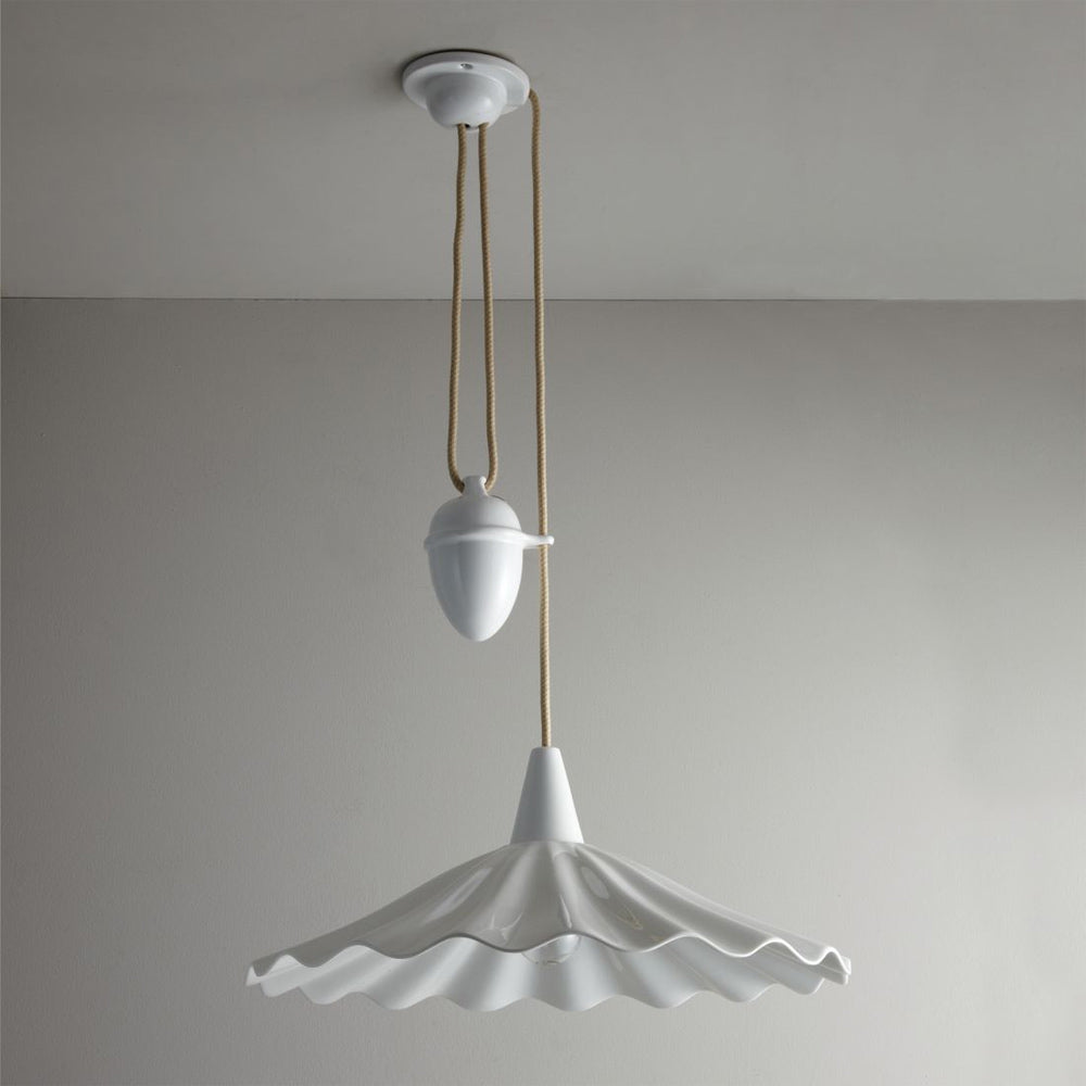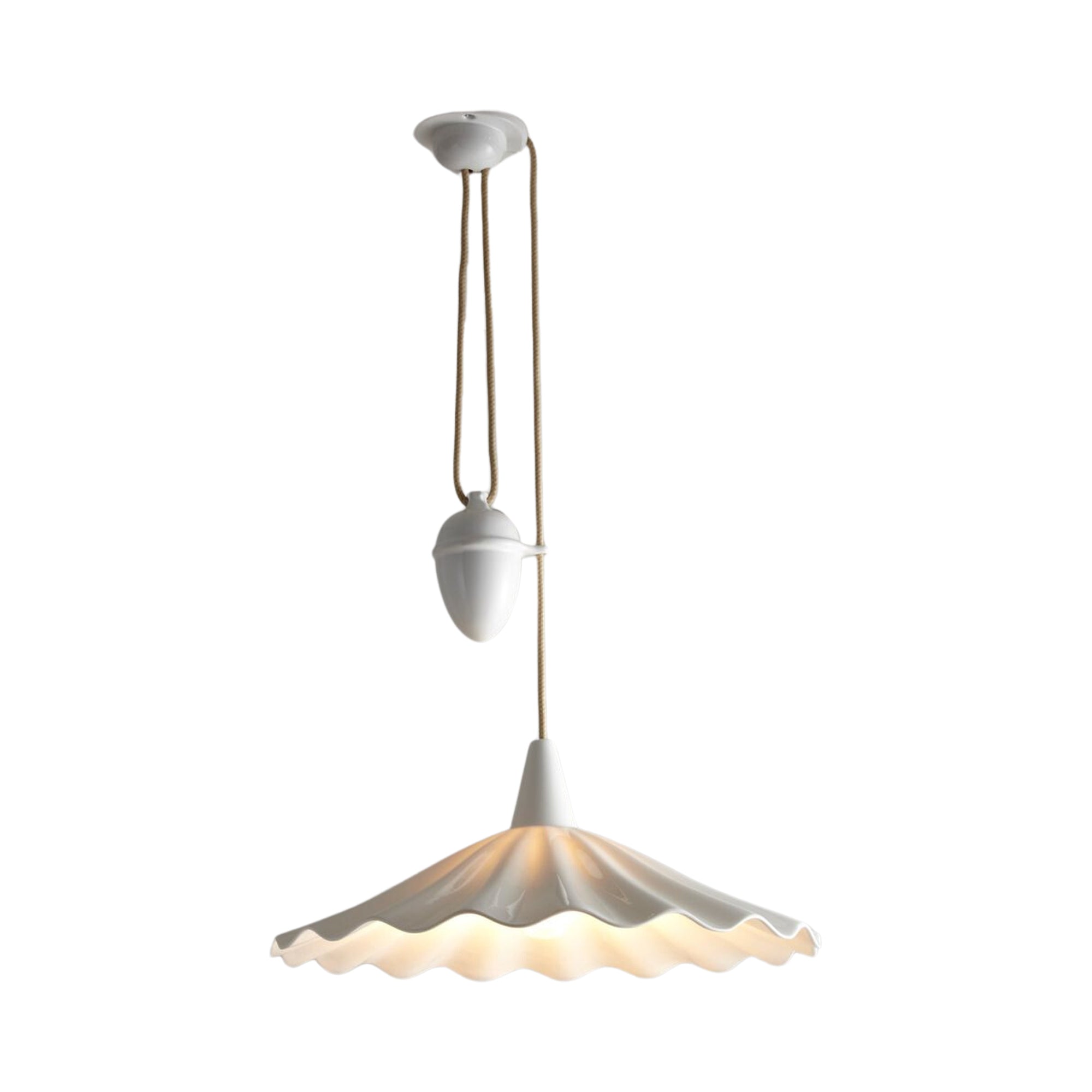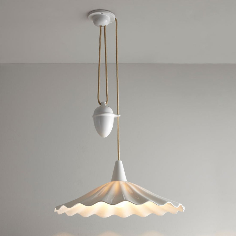 The Christie Rise & Fall Pendant Light from Original BTC reaches new heights -- and lows, by design. Artisan organic flavor sculpts natural white bone china into a fluttery, clamshell-like shade, perfect for infusing fresh coastal elegance. A braided cord and egg nest offer easy access to adjustability.