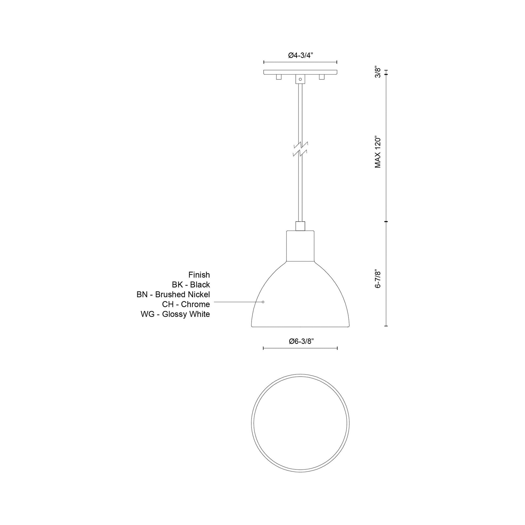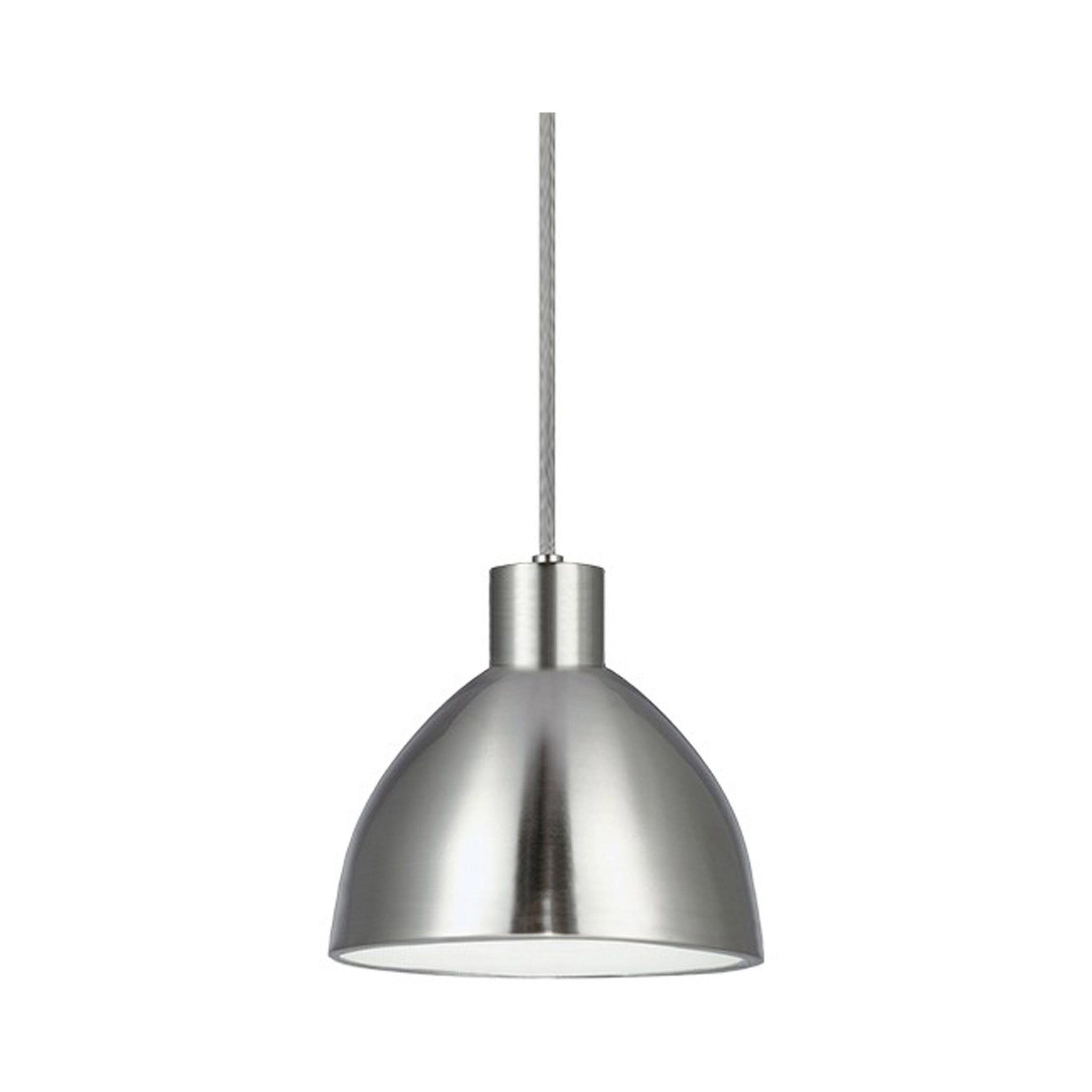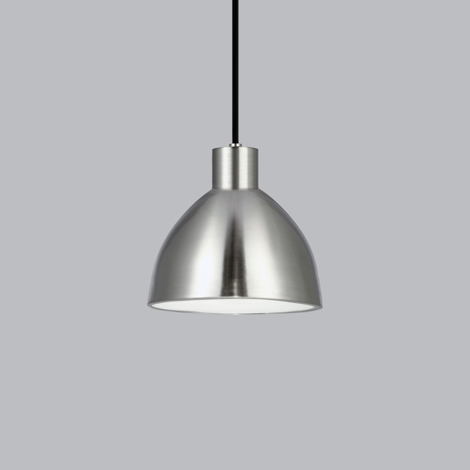 Single LED pendant with a heavy plated metal dome shaped shade. Matching colored cloth covered SVT wire to a maximum length of 72" and is provided with our powerful 120V AC LED technology, 8W, fully ELV, TRIAC. Available in three sizes, please view series for more details.