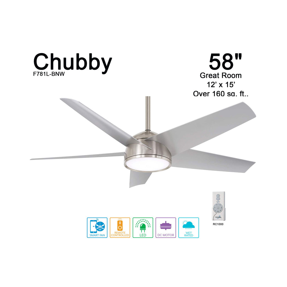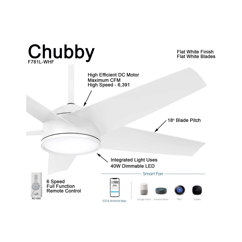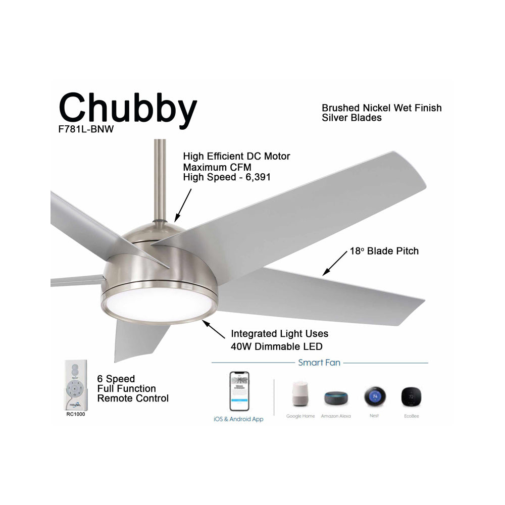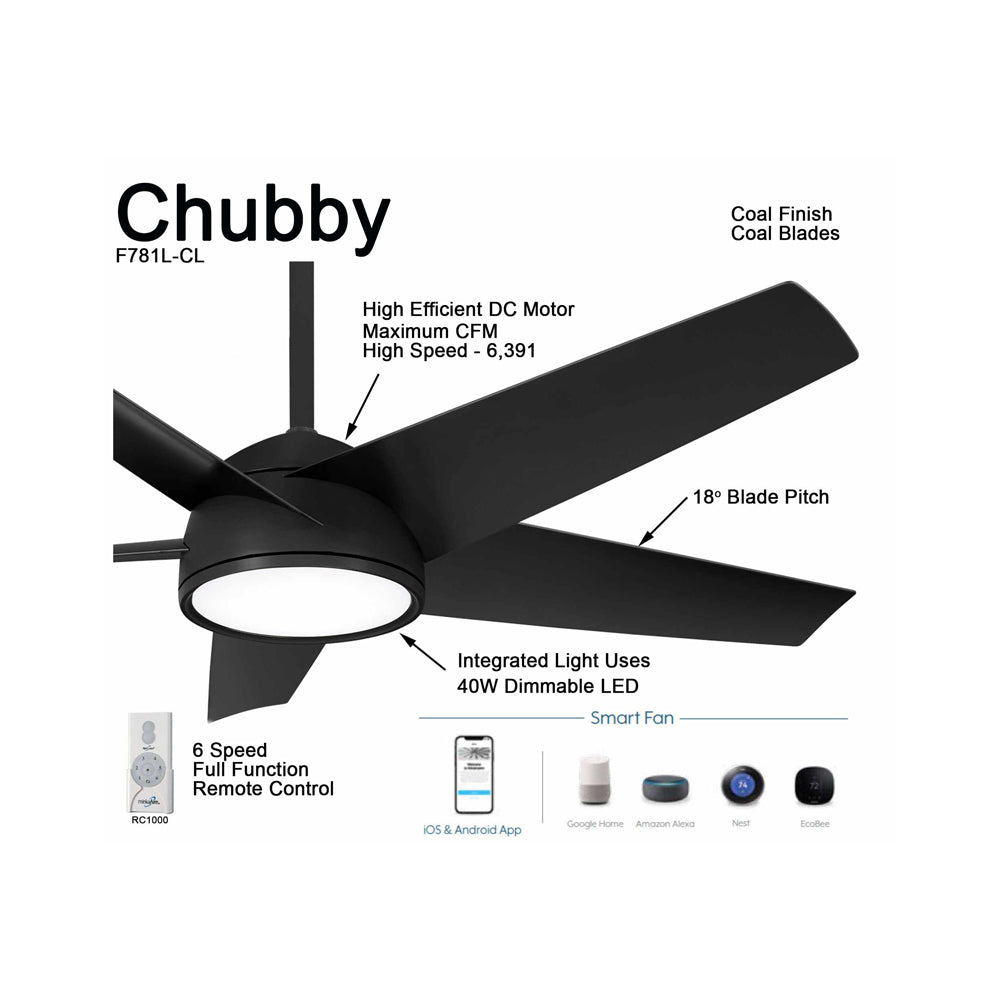 A clean design aesthetic and crisp silhouette flatters any space as the Chubby Outdoor LED Smart Ceiling Fan from Minka Aire adds a delightful upgrade to both contemporary and transitional living spaces. Metal construction of a delightfully minimalist frame and motor housing matches a prominent down rod, as energy-efficient illumination radiates through a chic etched lens and Smart technology makes operation a breeze. Shortened blade lengths are perfect for a more compact space.