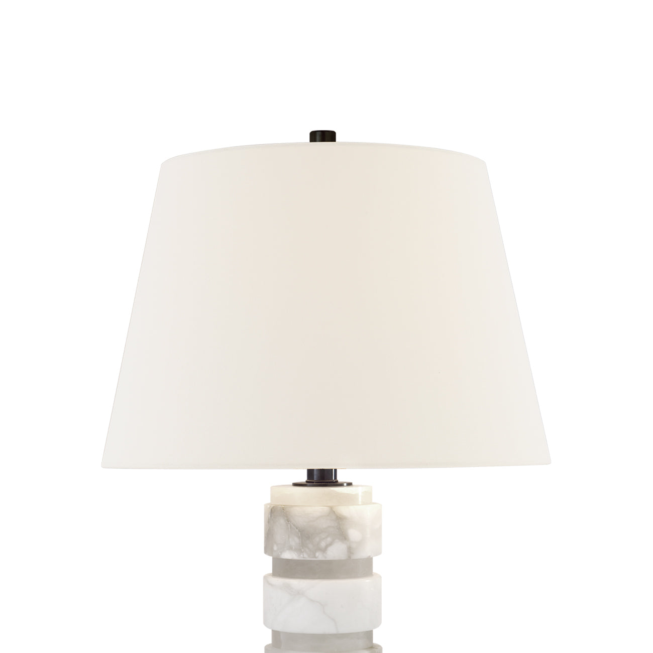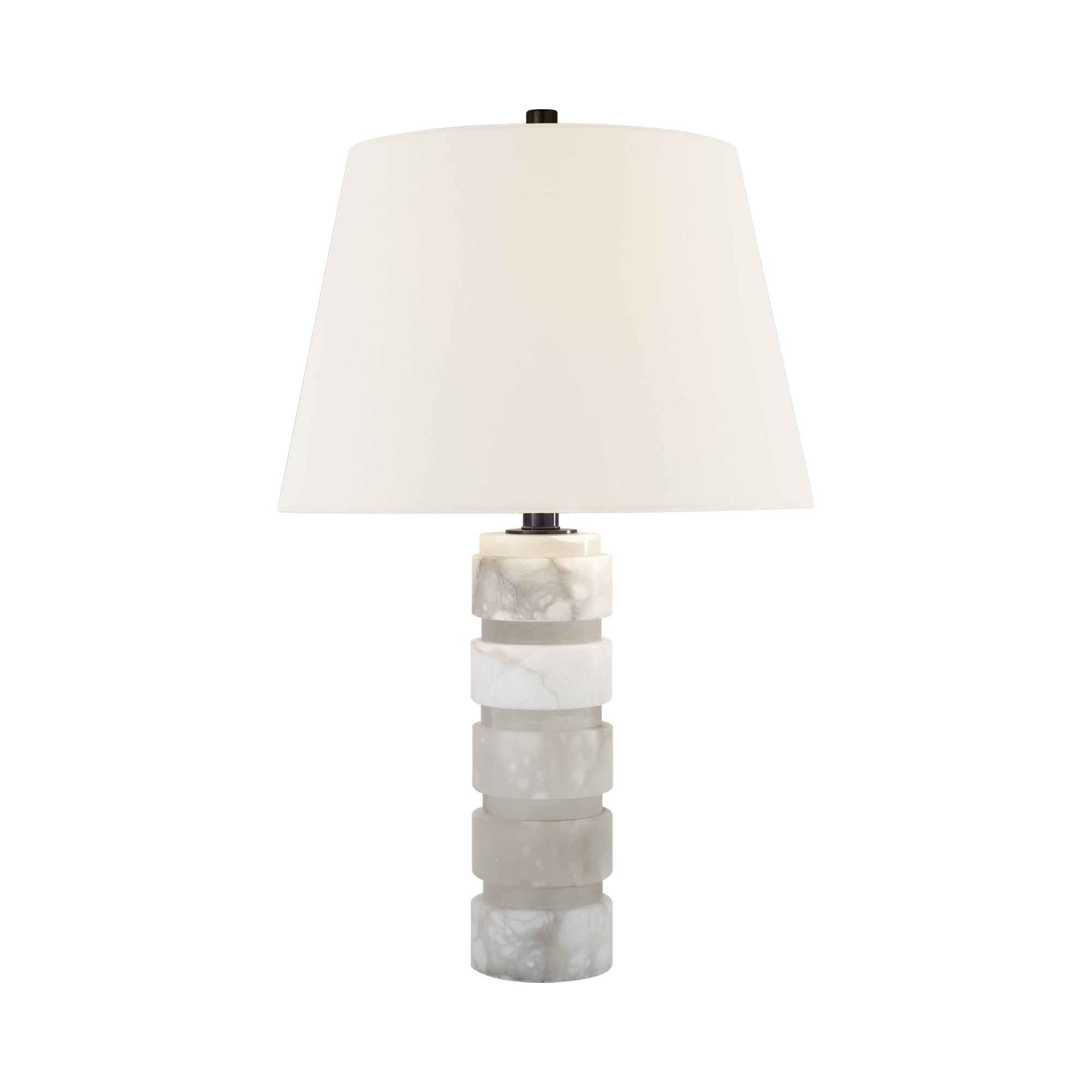 Natural markings are soft and subtle; a sign of what's to come in the earthy elegance of a classic. The Chunky Table Lamp from Visual Comfort Signature forms alabaster into circular discs stacked strategically to fashion a cylinder body. Contrasting metal accents and a soft linen shade follow with easy, approachable style.