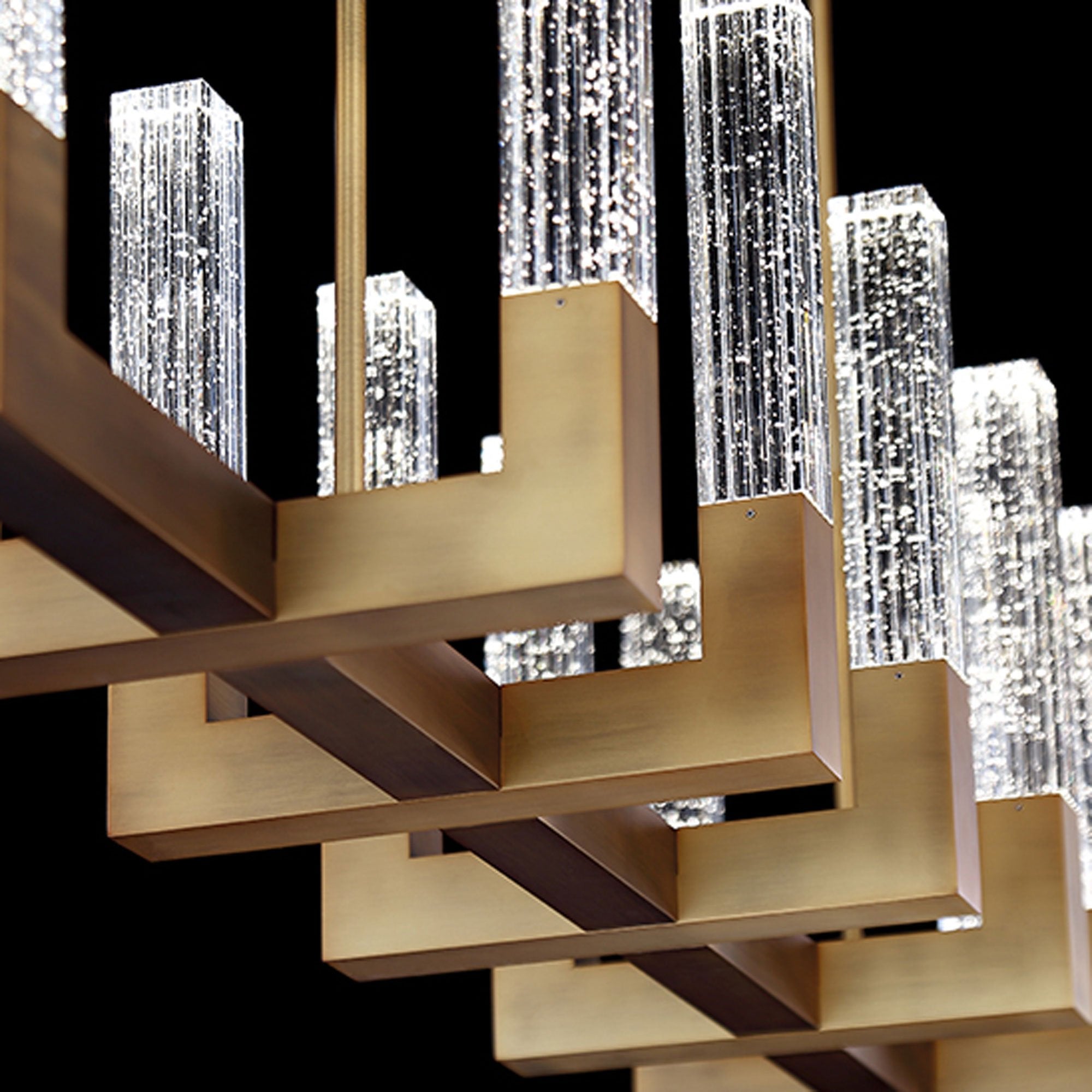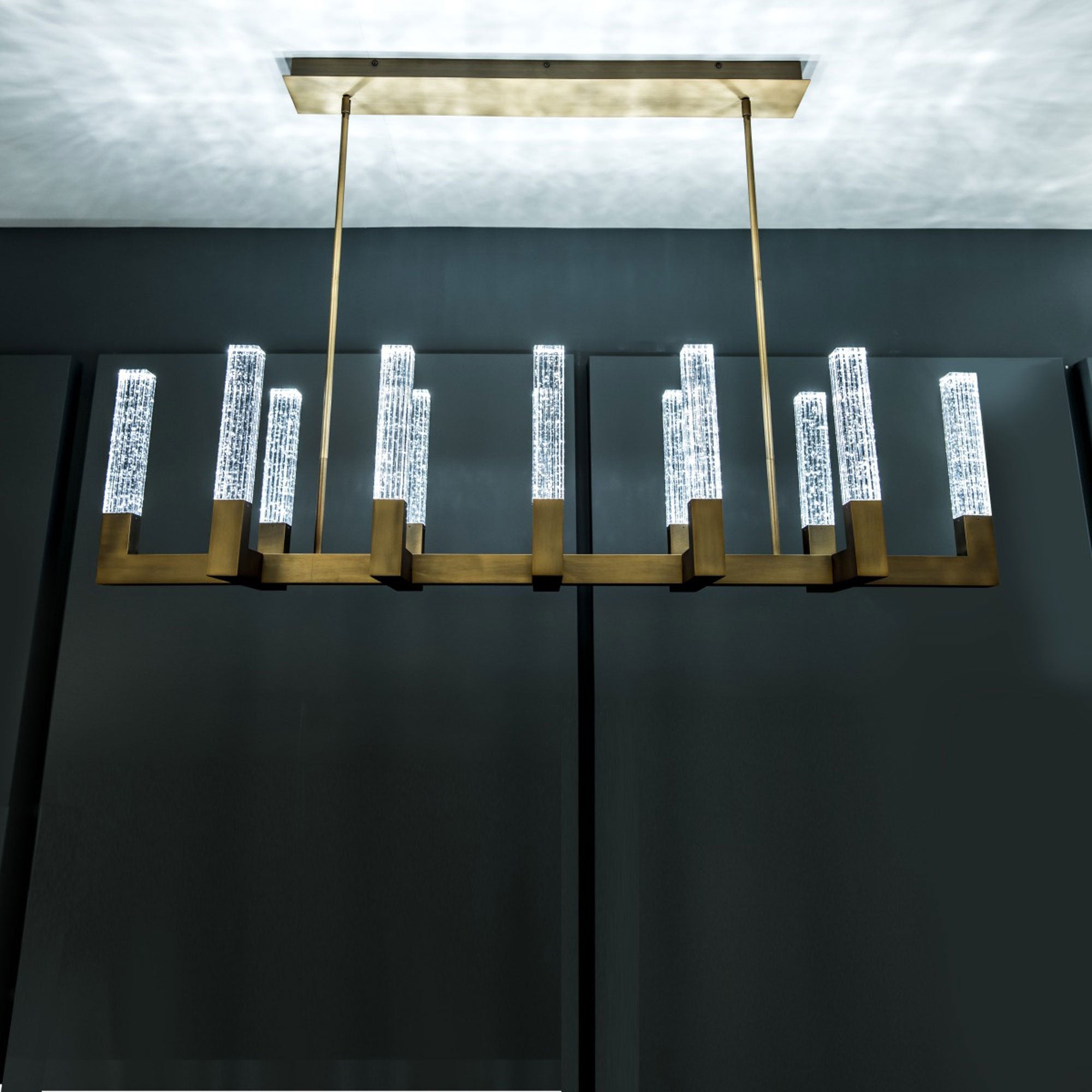 In a luxe aged brass finish, Cinema makes a modern statement that's right in line with the latest trends. Painstakingly V-cut seeded crystal adds understated glamour when it fills with light sourced from high-performance LEDs. With a variety of styles in the family, Cinema creates a matching lighting environment that can pull multiple rooms together.