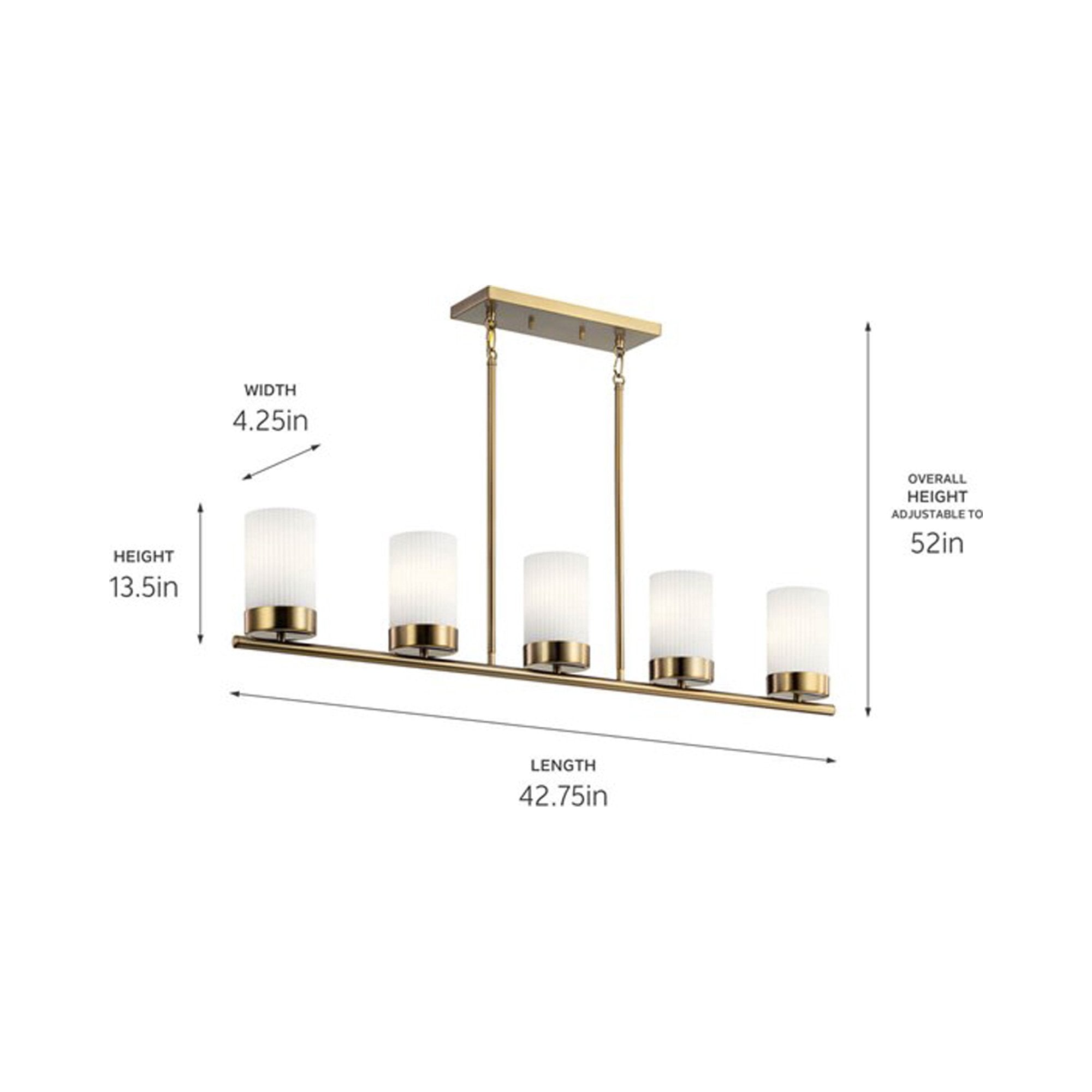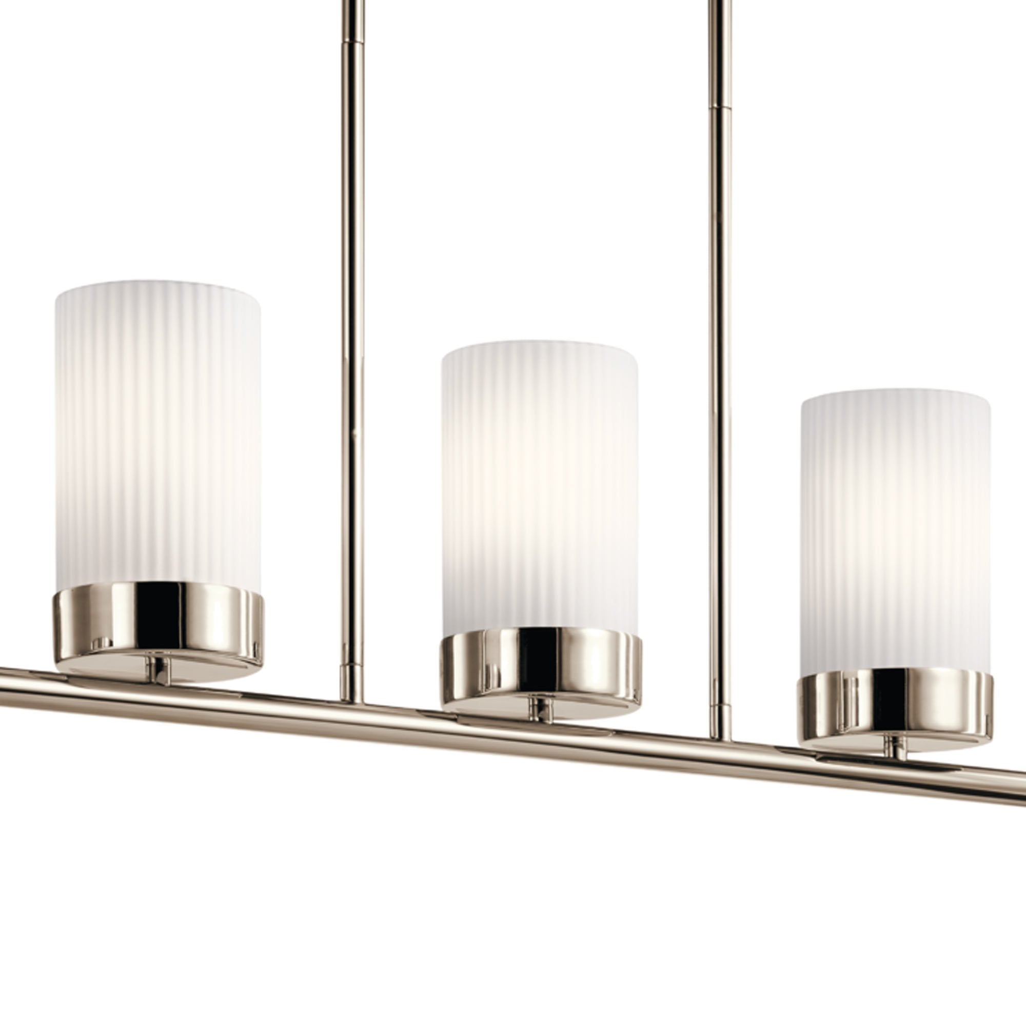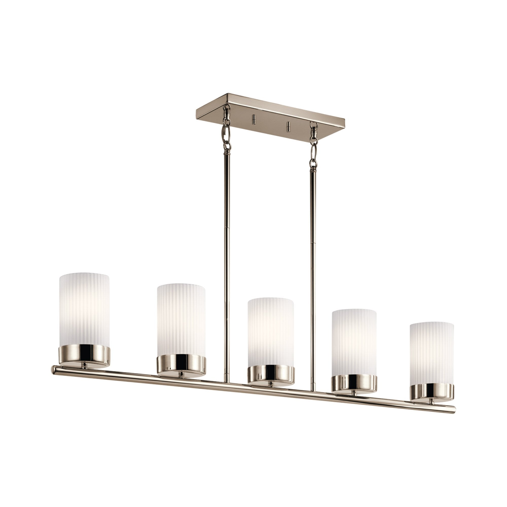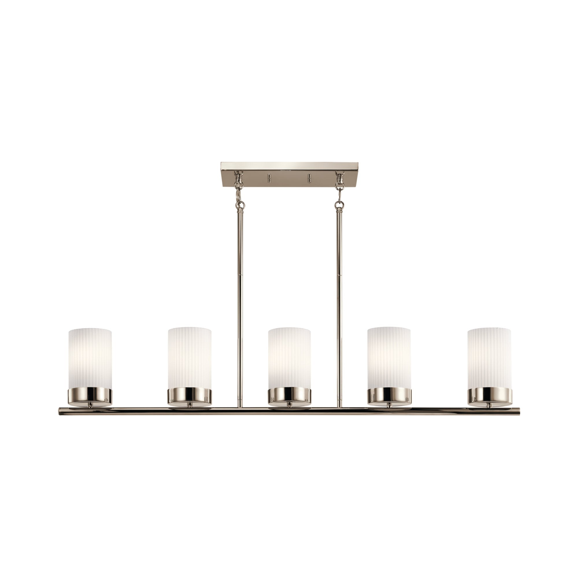 Ciona™ 5 light linear chandelier captures elegance in an unapologetically simple way. Its Round Ribbed Glass shades were inspired by ancient Egyptian columns, and its Polished Nickel finish brings new meaning to the word classy.