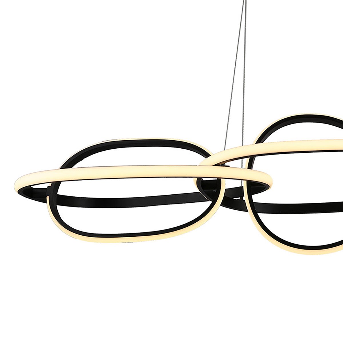 The Circa LED Linear Pendant Light features cutting edge-lighting and timeless silhouettes. A cohesiveness exists in the repetition of forms, through its circular canopy and its general framework. Ultra-slim LEDs line the looping piece, giving its light an encompassing glow.