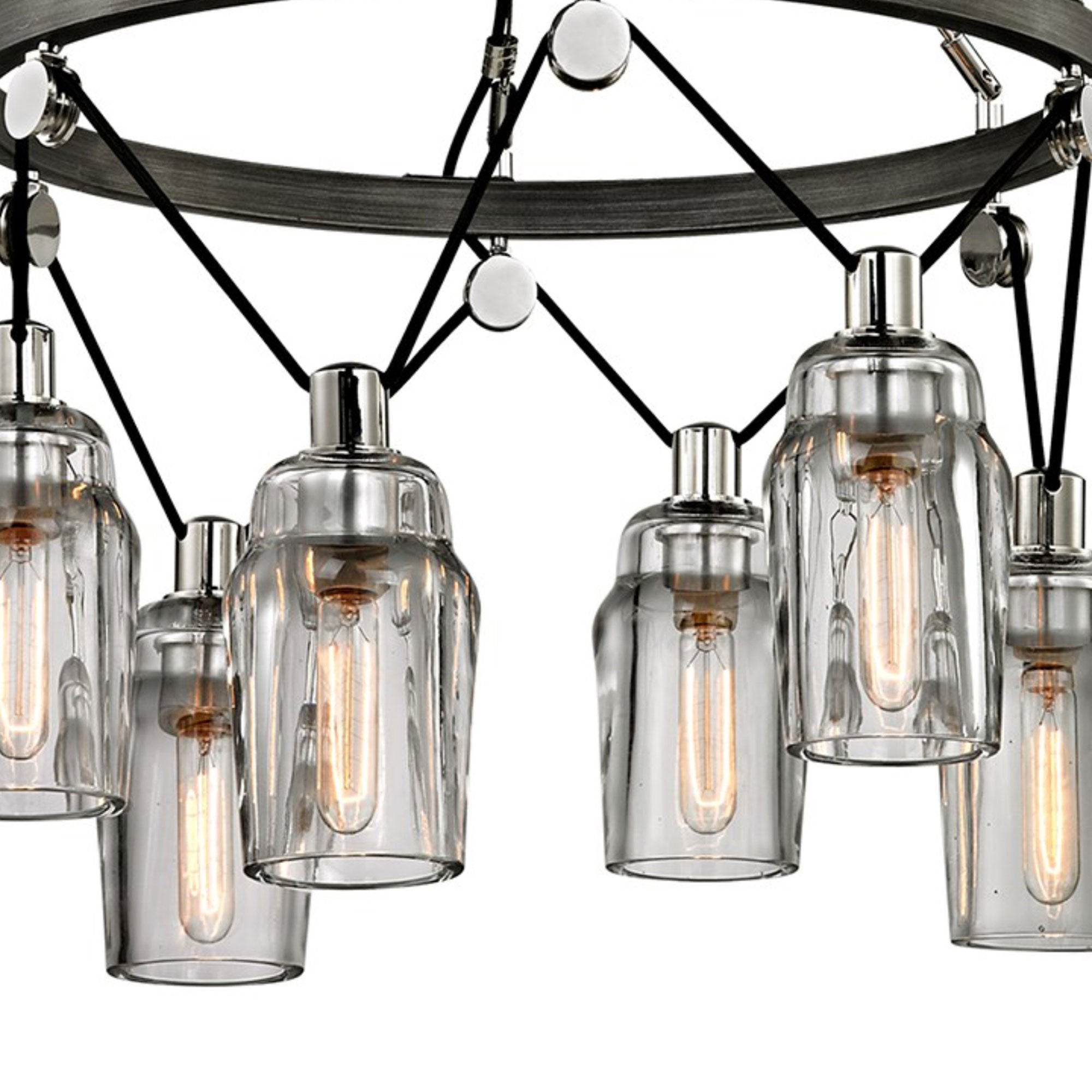 Intricate design details paired with clear pressed glass create a dynamic, eye-catching profile for the Citizen Chandelier from Troy Lighting.