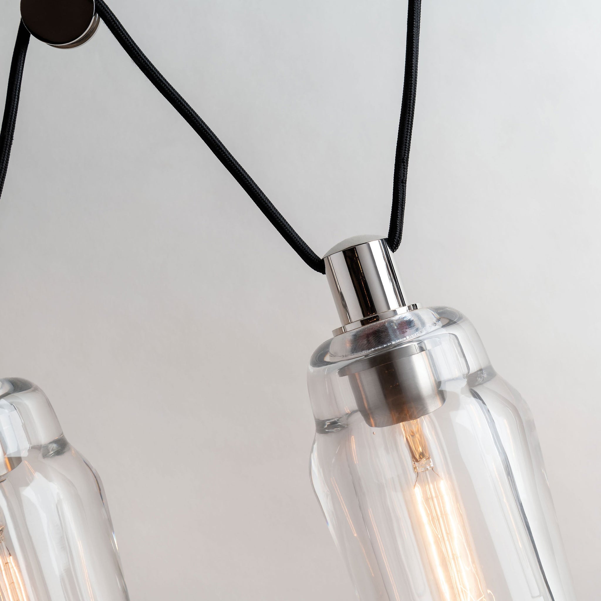 Pulley accents highlight the asymmetric nature and pressed glass shades that augment the graphite and polished nickel finish Citizen Linear Pendant Light from Troy Lighting.