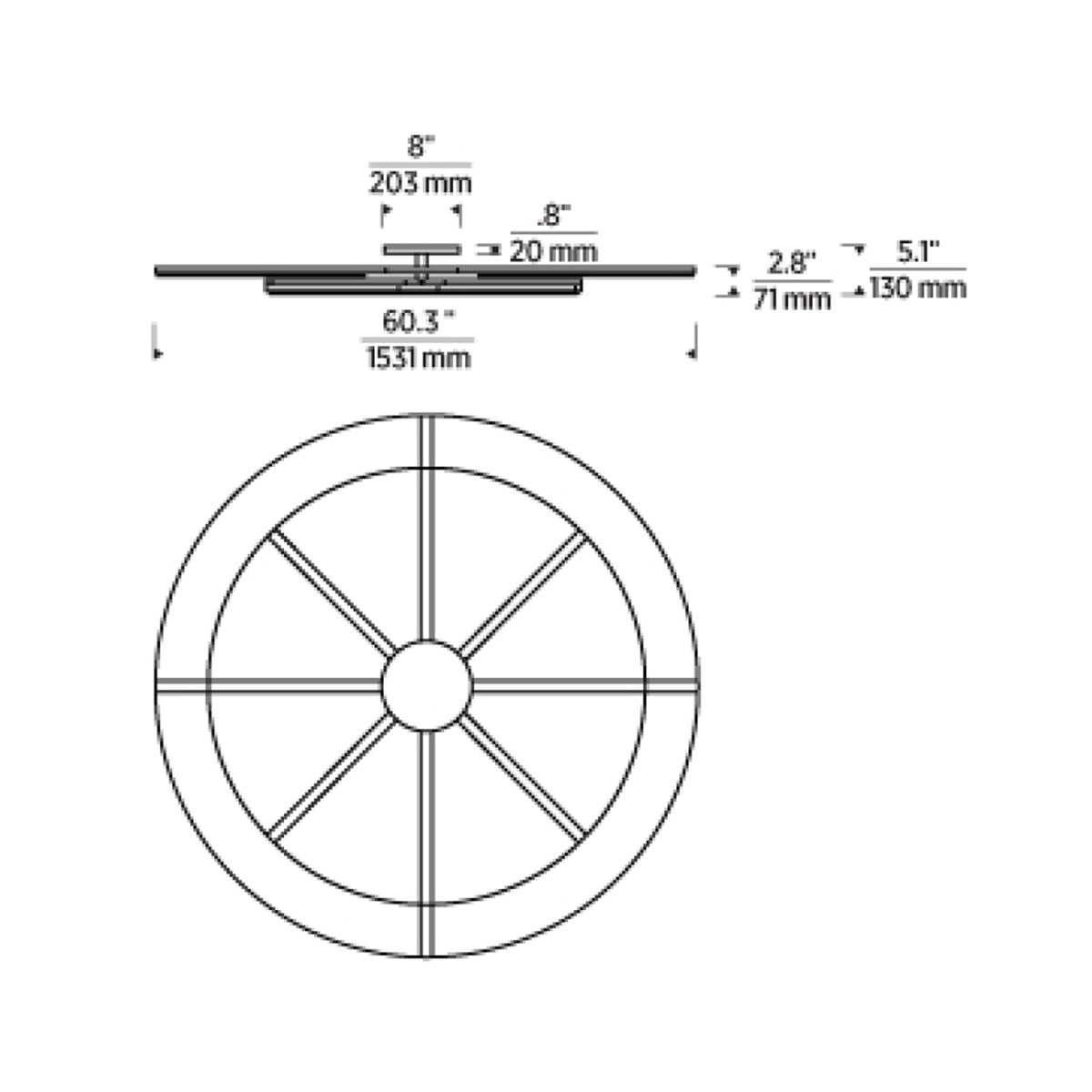 - Canopy: 8"D X 0.8"H