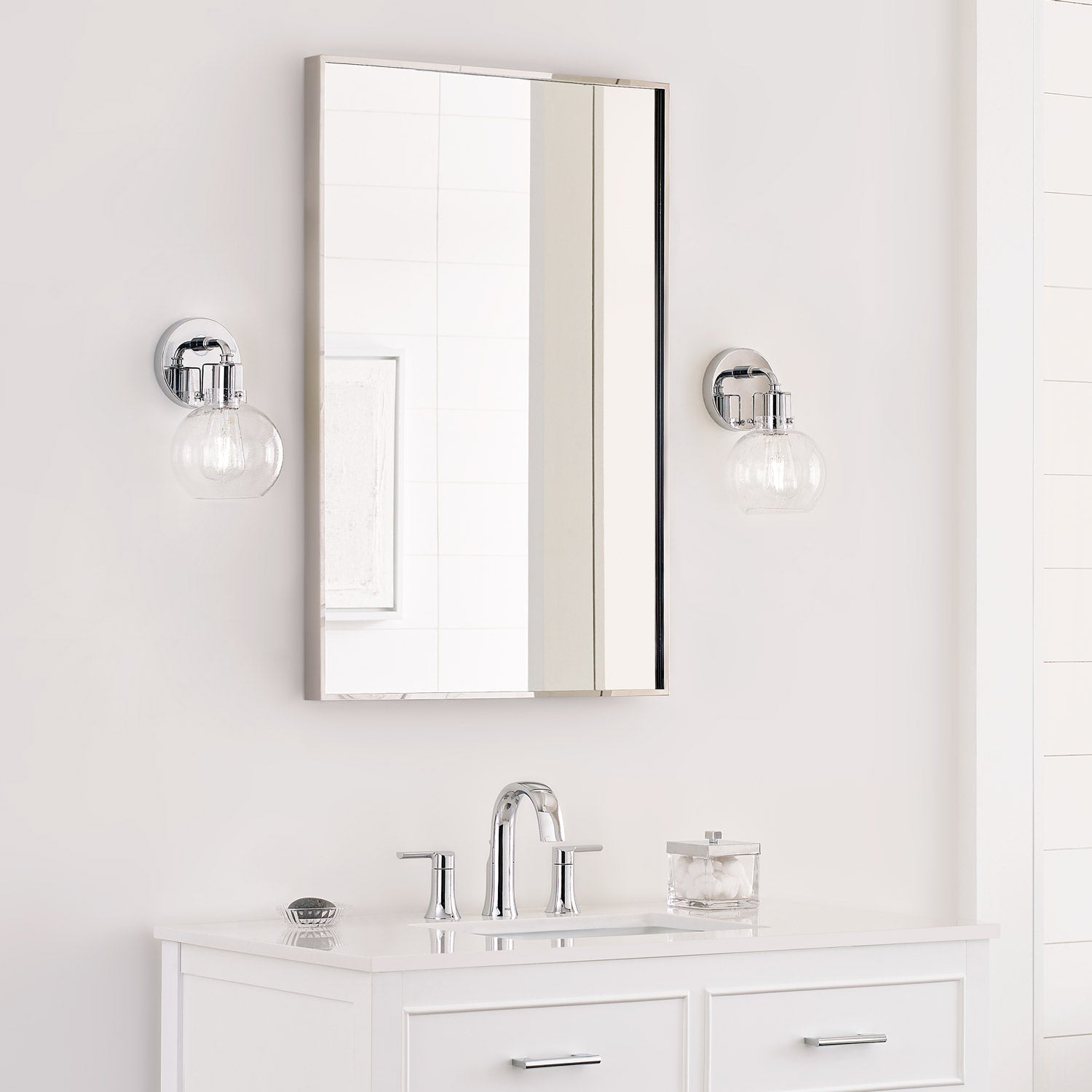 Introduce a touch of rustic flair with the seeded glass orb shade featured on the Clara Bath Wall Light from Visual Comfort Studio.