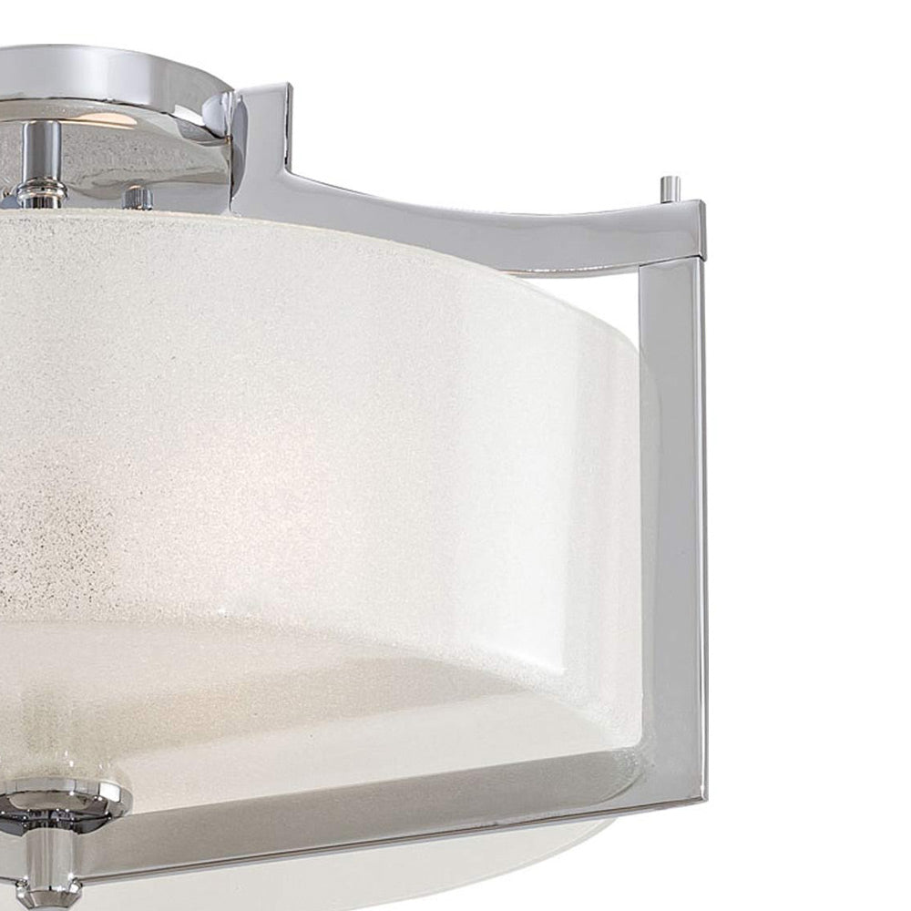 The Clarté Semi Flush Mount Ceiling Light from Minka Lavery reflects attention to detail and silhouetting, elegant attributes for transforming a light source into a prime décor element. Gentle contours in metal framing create an optical backdrop to a chic white iris glass drum shade. A European inspiration makes its way into lighting with exquisite beauty, tempered with versatility.