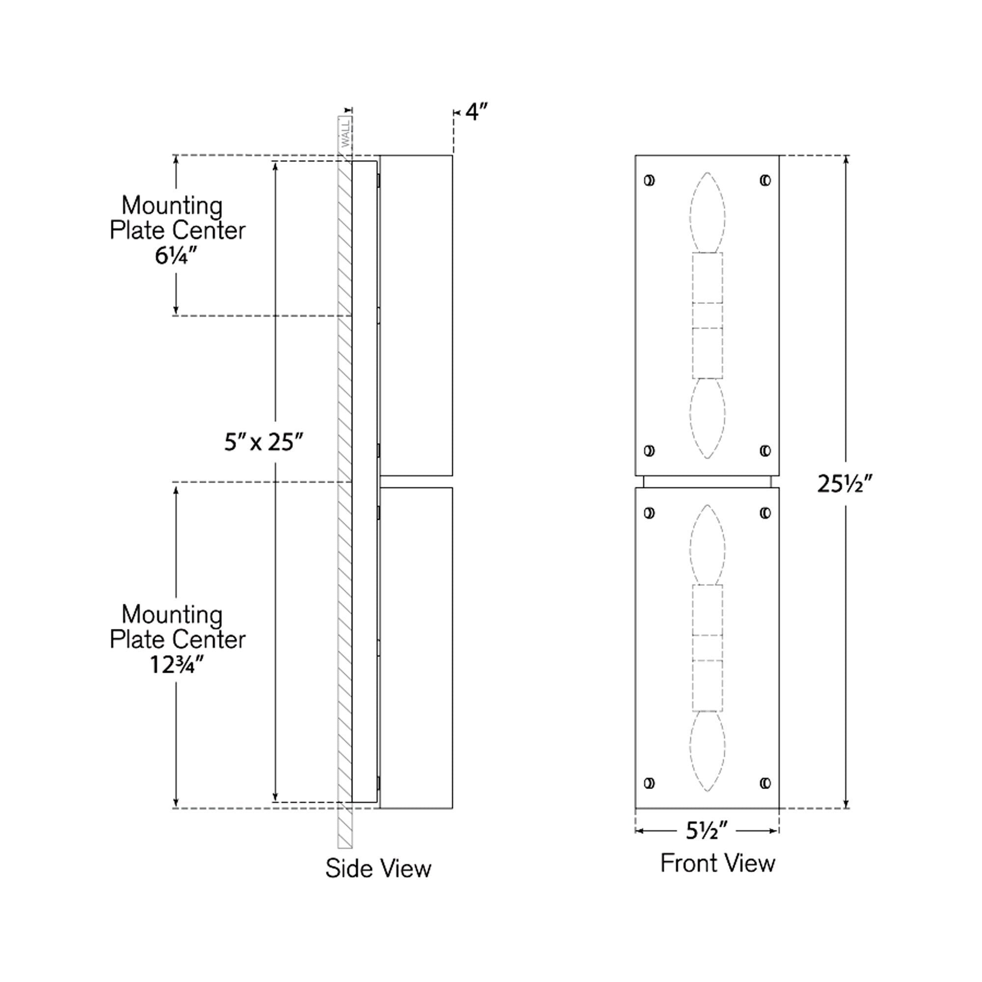 - 4-Light: 5.5"W X 25.5"H; 4" Extension