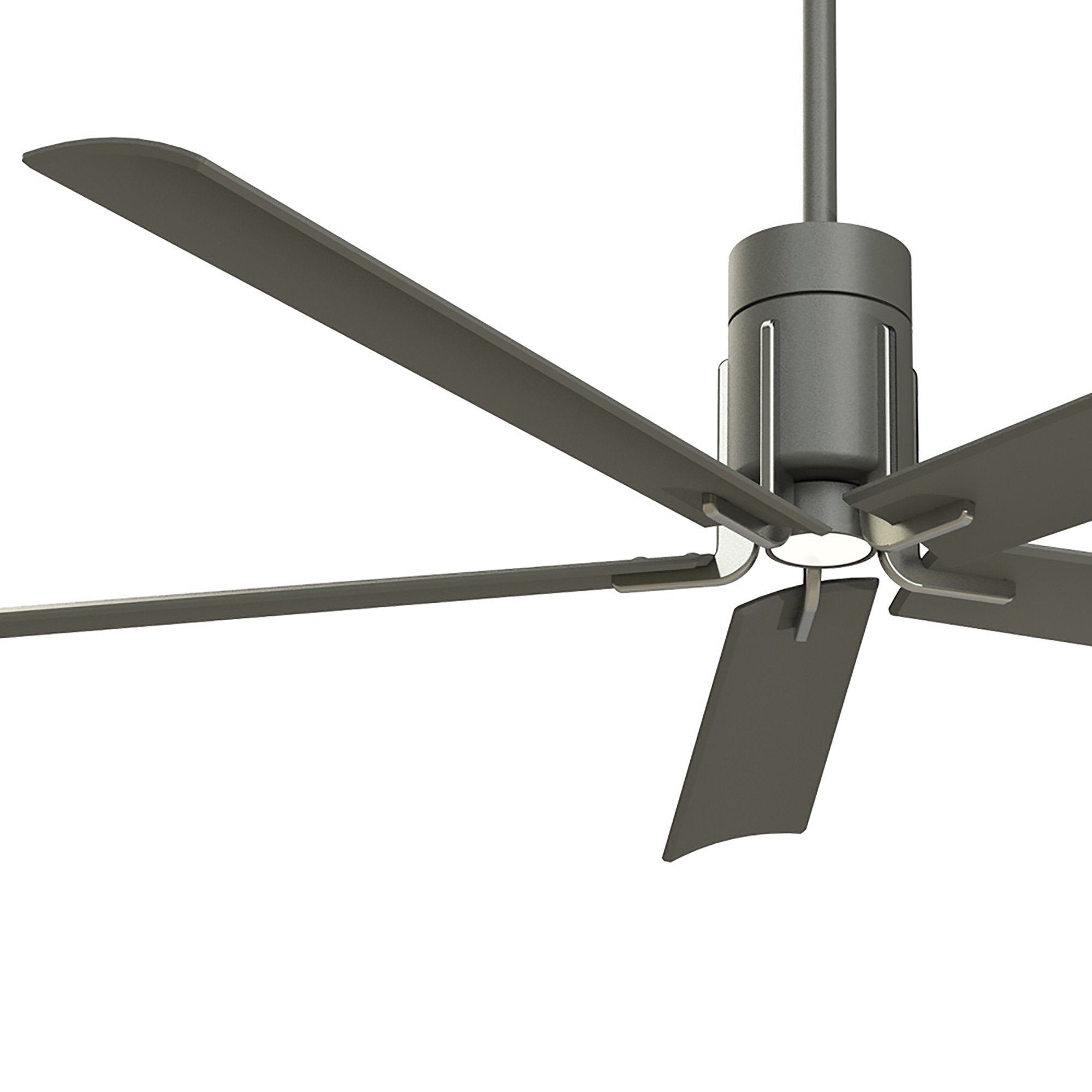 Clean lines contribute to the aptly named Clean LED Ceiling Fan from Minka Aire, a sleek source of lighting and circulation that completes an interior design scheme. This five-blade fan features variable finish options and an industrial-influenced housing design with a diminutive lens and full function hand-held remote control.