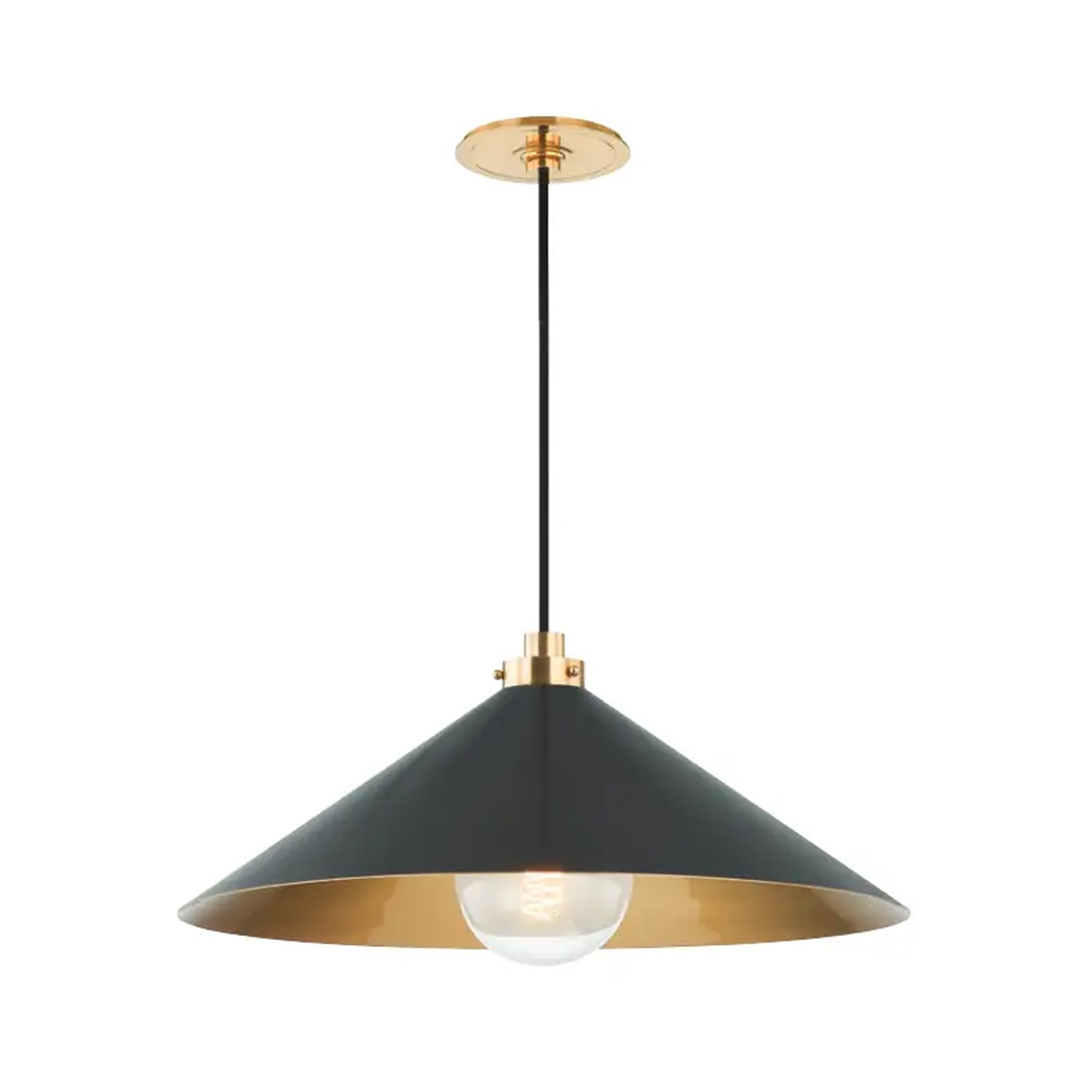 Nostalgic pool hall vibes add character to the rich design of a light fixture ideal for custom casual spaces. With a conical shade dressed up with metal accents, the Clivedon Pendant Light from Hudson Valley Lighting adds timeless appeal and simplicity that calls out critical spaces in dining rooms, kitchens, and entryways. An exposed bulb reflects vintage attitude, creating an overall kick-back yet artful aesthetic.