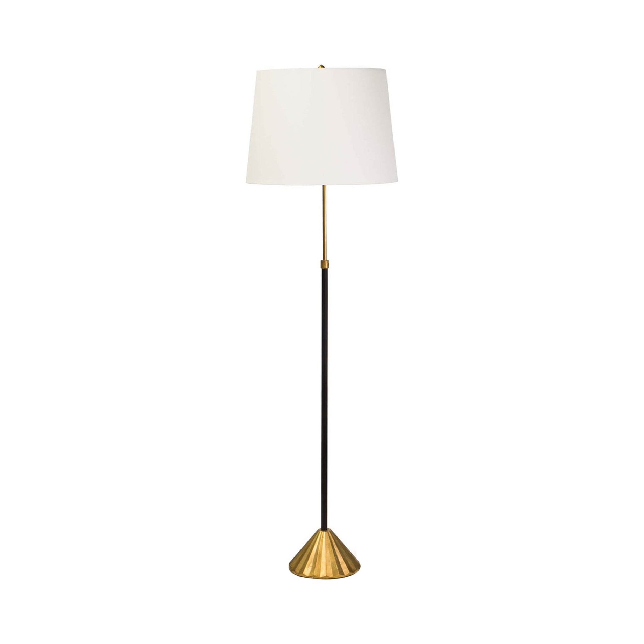 Cling to a simple aesthetic with a touch of glam sneaking in as the Coastal Living Parasol Floor Lamp from Regina Andrew adds respectable style to any setting. Basing its style on conventional stem lamps, this floor lamp emulates an umbrella silhouette using glam gold leaf accents over metal construction, with a black finish coating its lower stem. A bit Art Deco and a little vintage, the design of this floor lamp is a tribute to versatility.