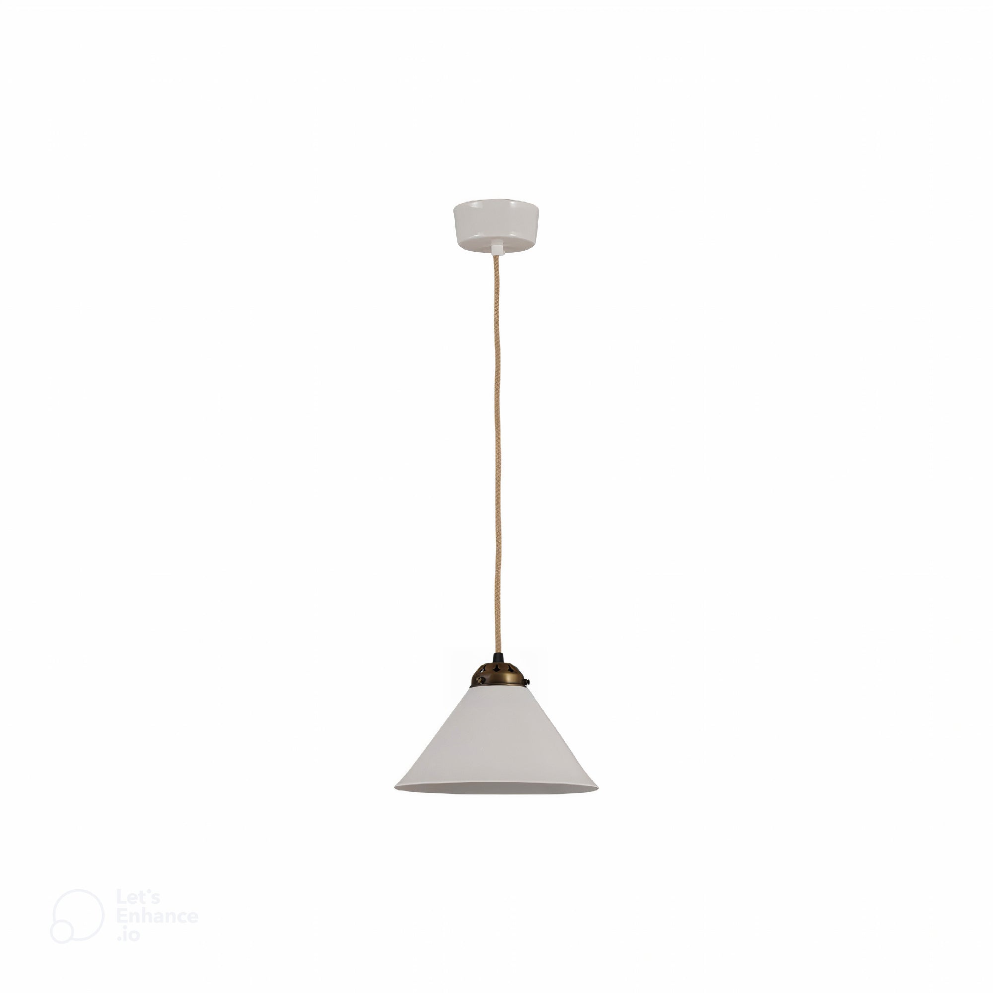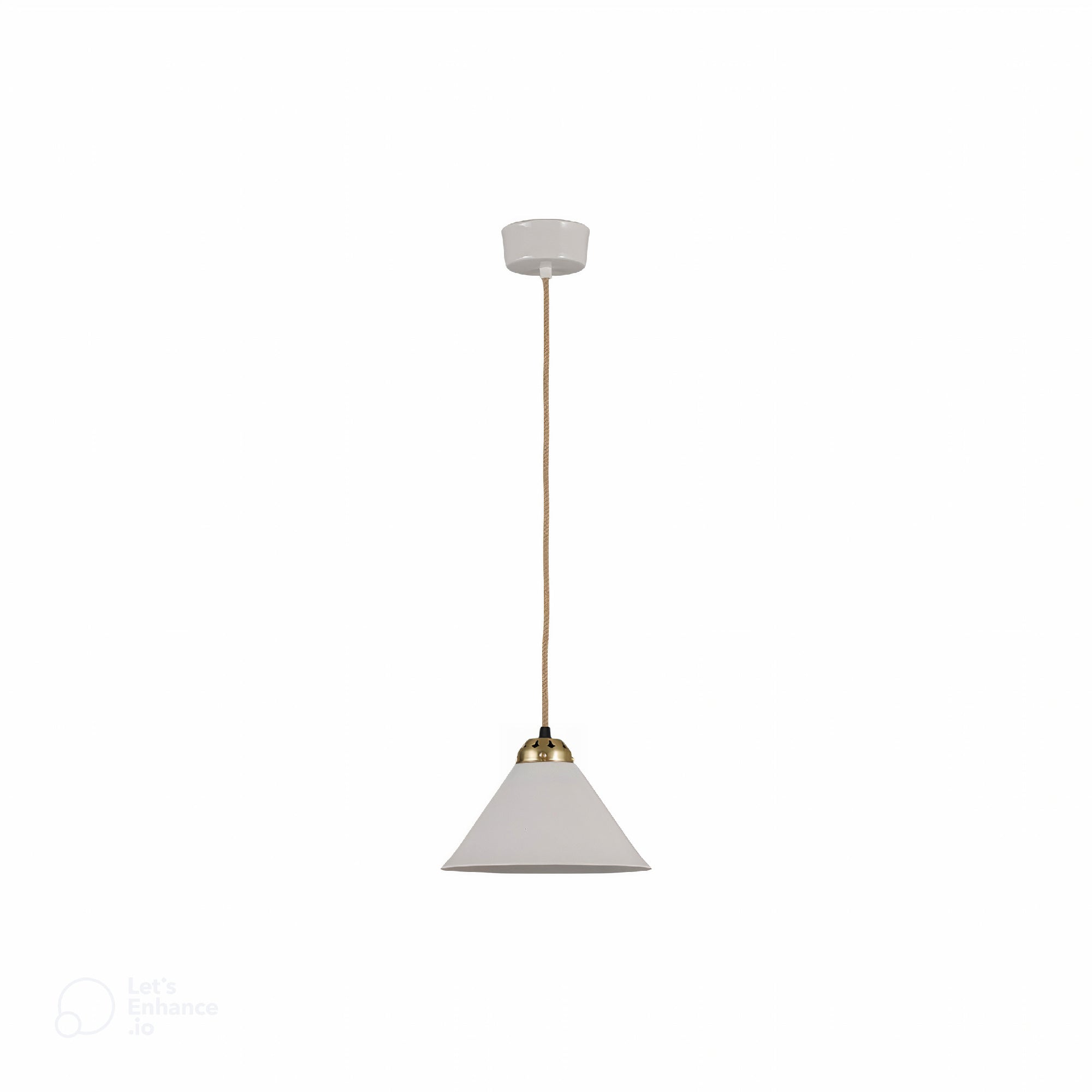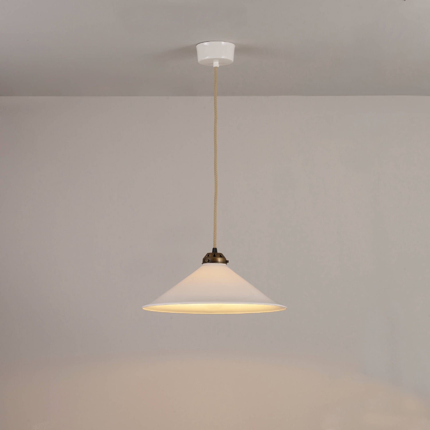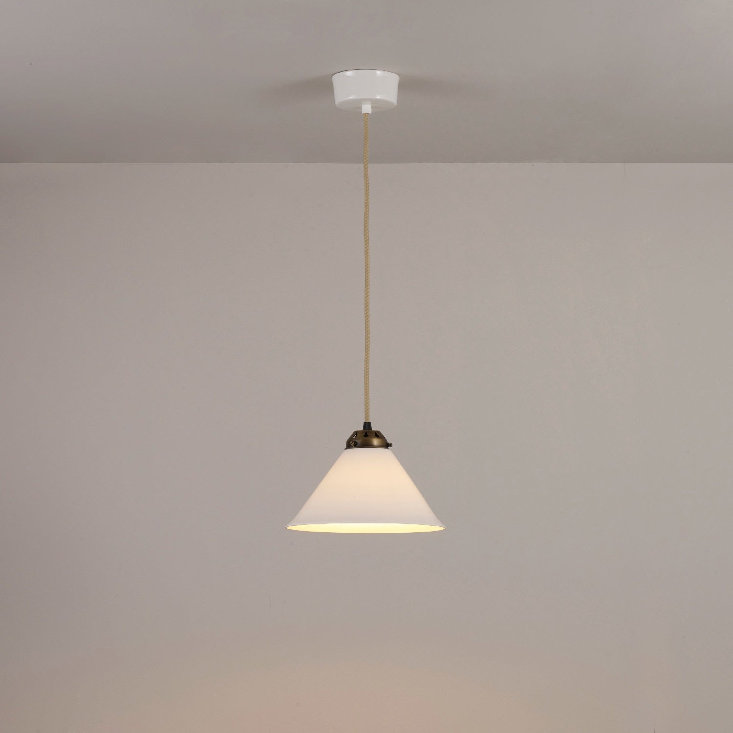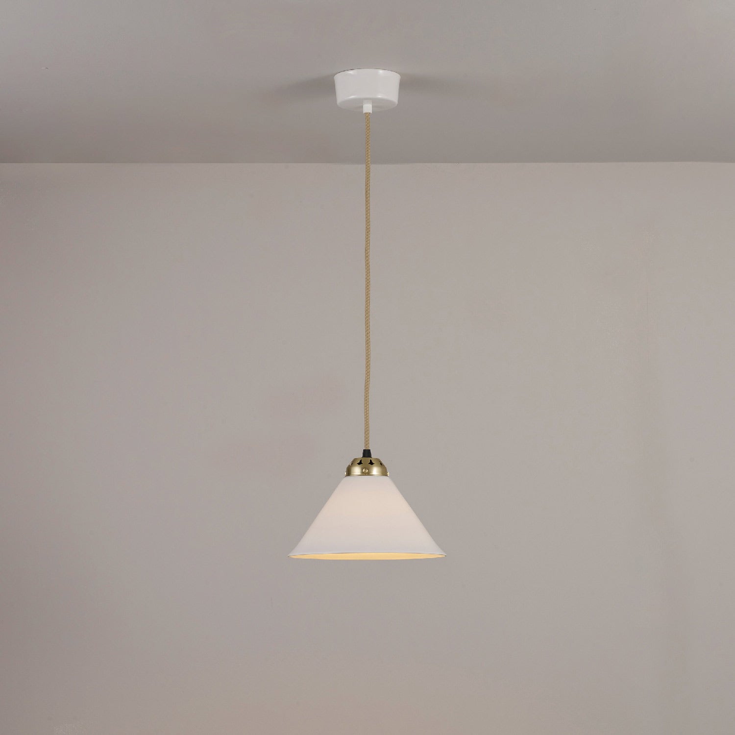 The Cobb Plain Pendant Light from Original BTC sticks to basics in the most charming way, delivering classic modern farmhouse personality. Simple geometric silhouetting follows a glam natural white bone china shade, with rich metal accents and a braided cotton suspension cable becoming part of the style package.