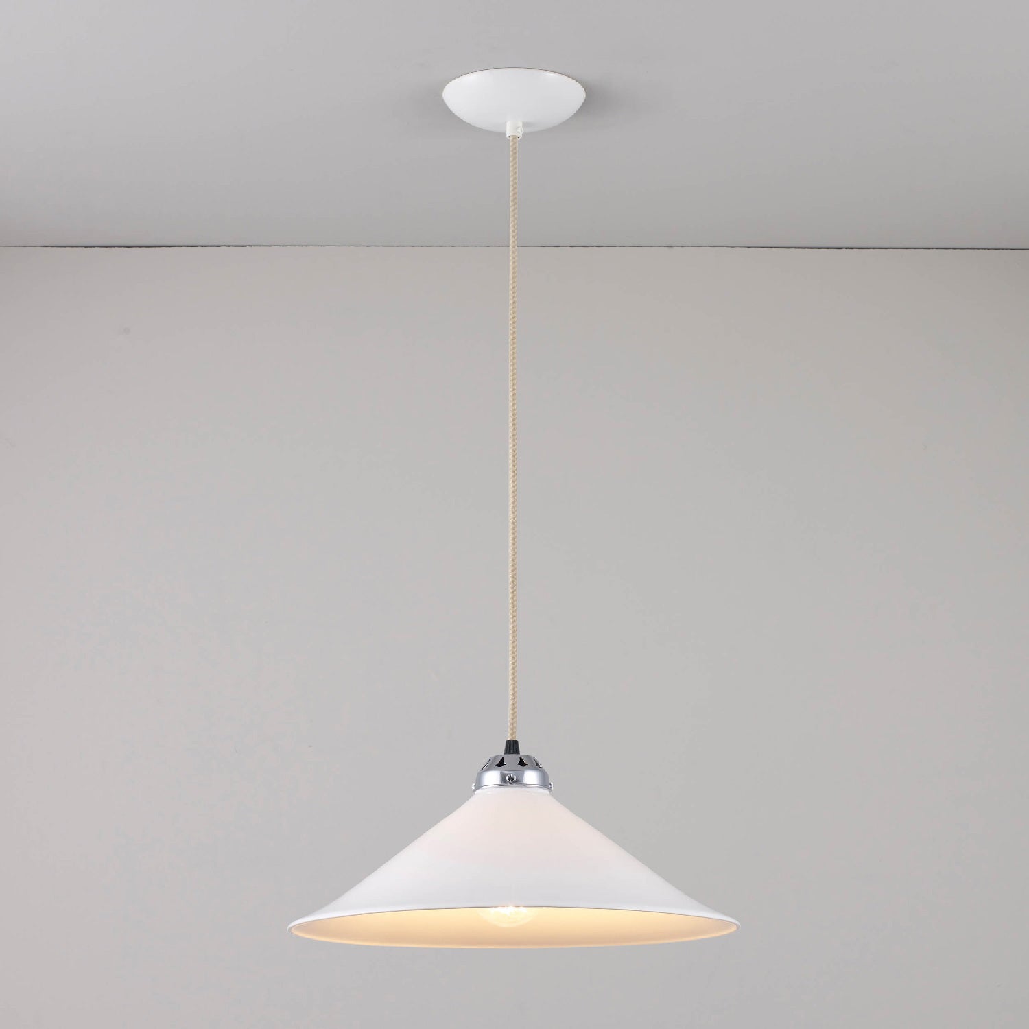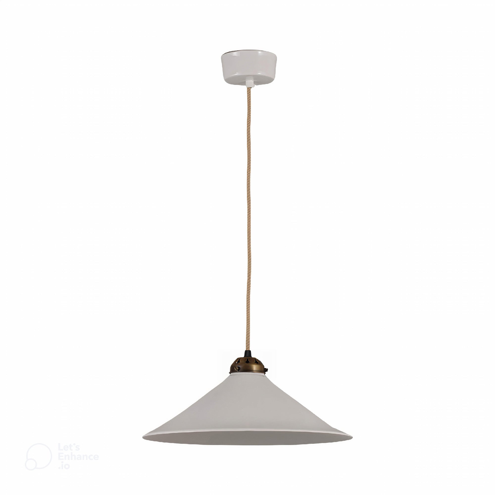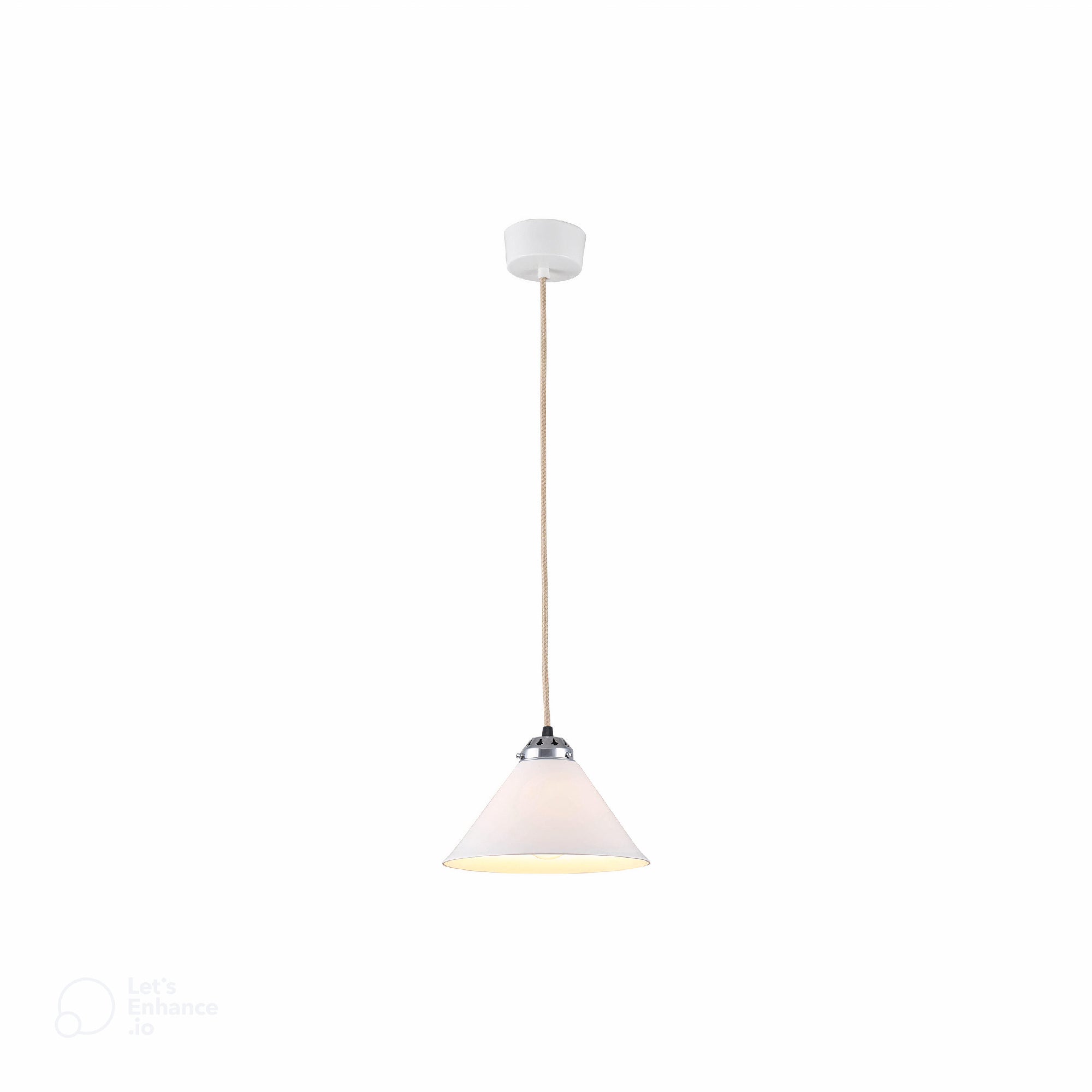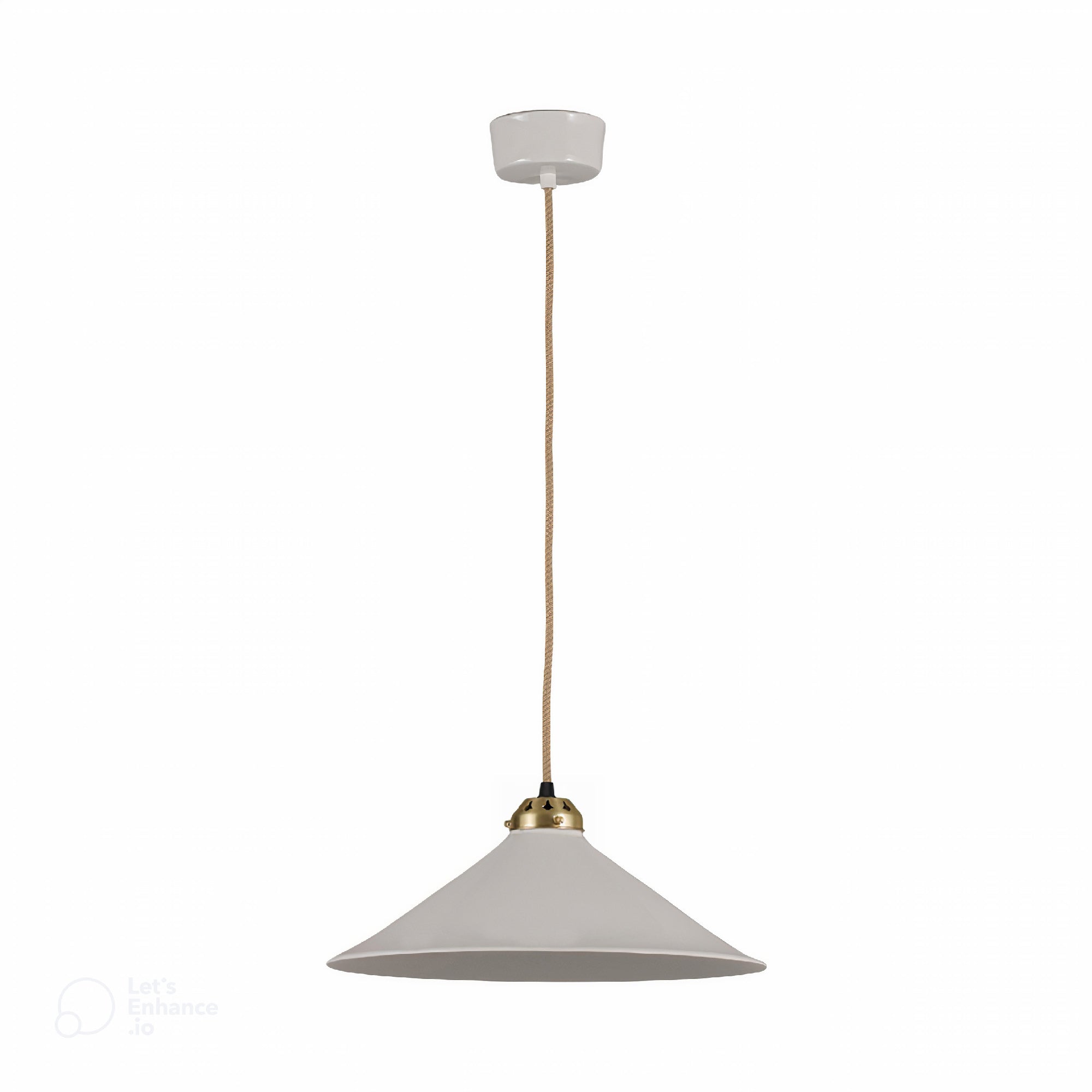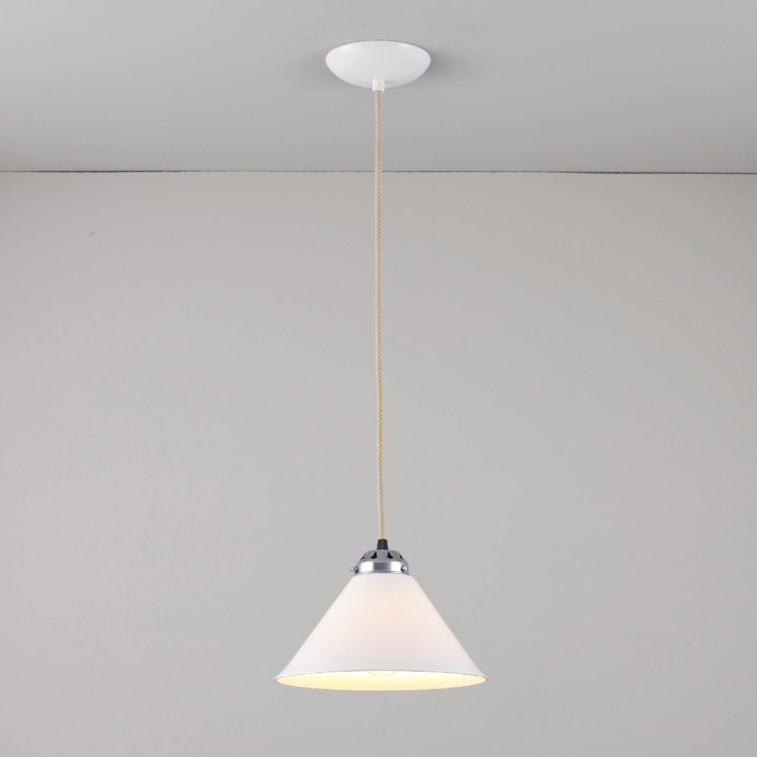 The Cobb Plain Pendant Light from Original BTC sticks to basics in the most charming way, delivering classic modern farmhouse personality. Simple geometric silhouetting follows a glam natural white bone china shade, with rich metal accents and a braided cotton suspension cable becoming part of the style package.
