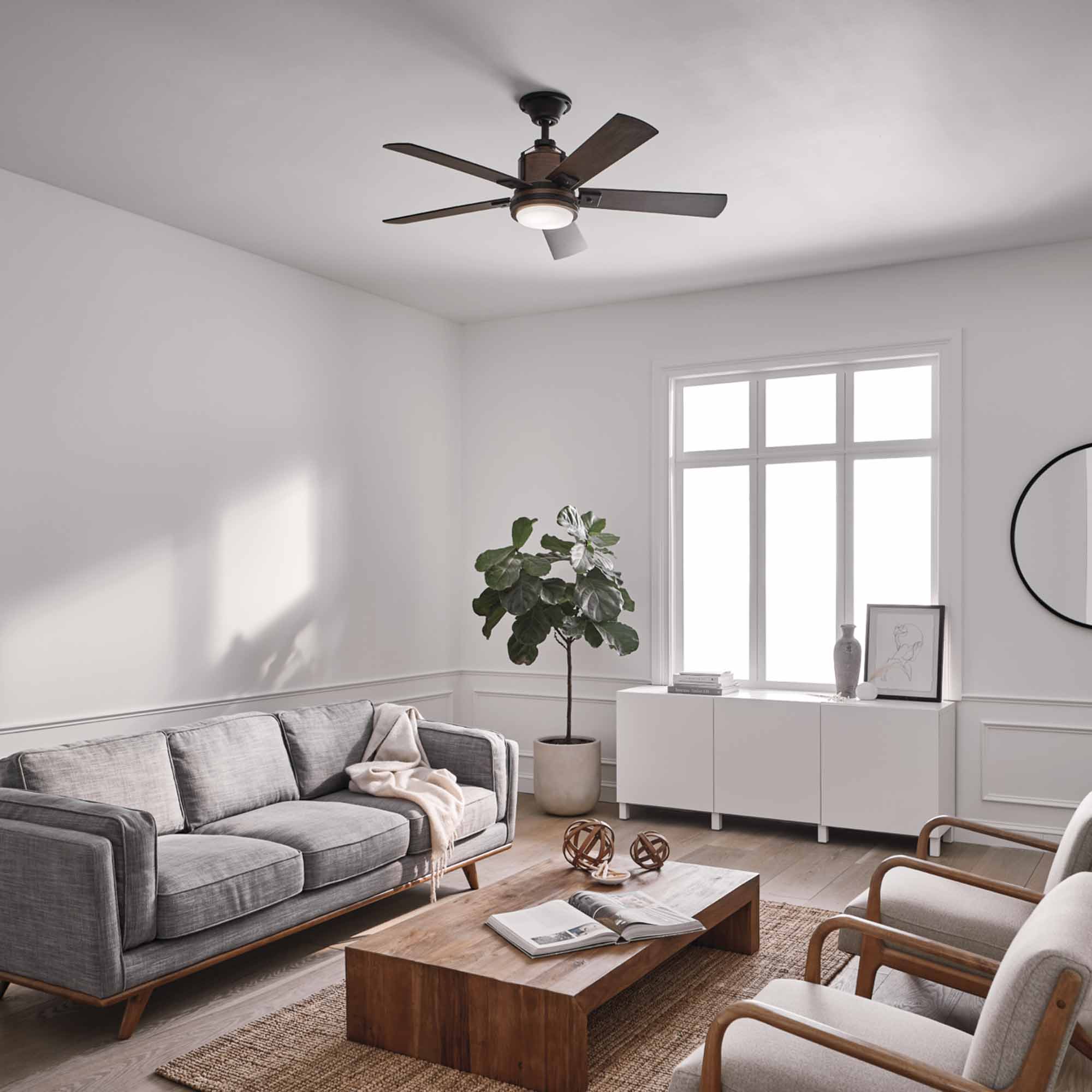 You'll love the flea market find-feel that this Colerne LED Ceiling Fan from the Colerne™ collection brings to your space. The Weathered White and Auburn Stain on all 5 blades creates the look of a wooden box up cycled into something that's at home in both a rustic lodge or a New York loft. The vintage industrial design comes to life with a Brushed Nickel and Distressed Black finish on the metal accents.