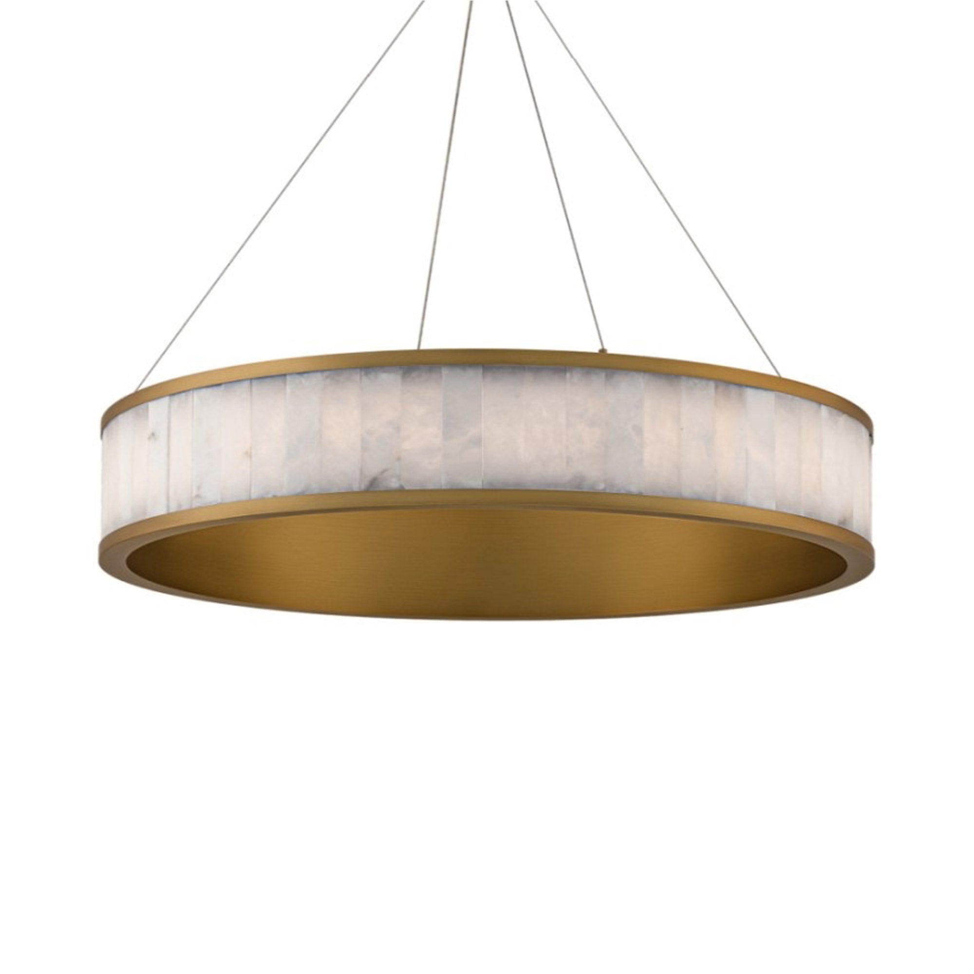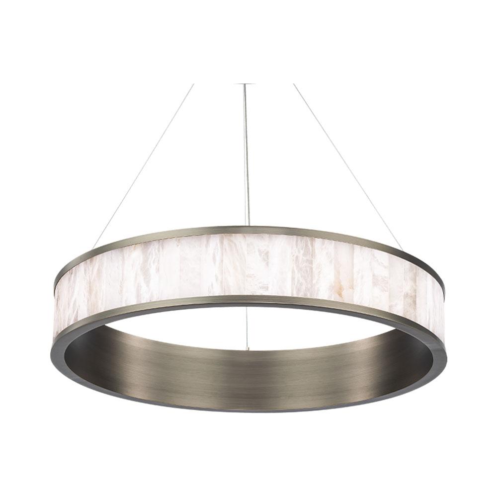Where gracious living begins. Immaculate tiles of top-quality Spanish alabaster create a natural luxury set within a channel of luminous antique nickel. Simple elegance is subtly conveyed where no detail is spared including thin aircraft cables for power and suspension.