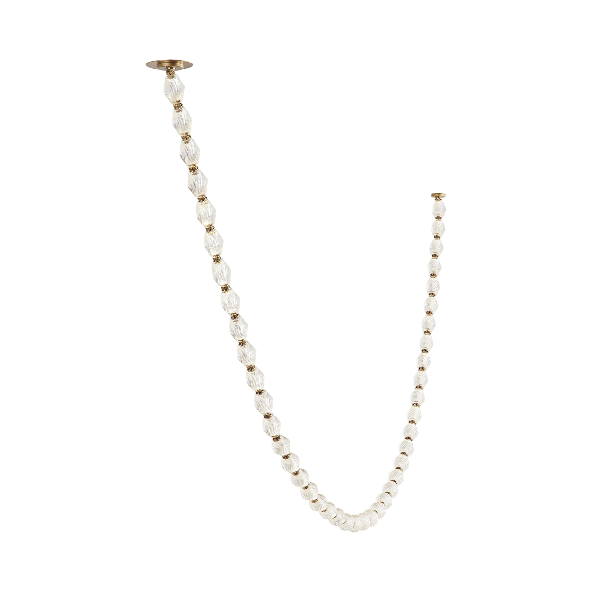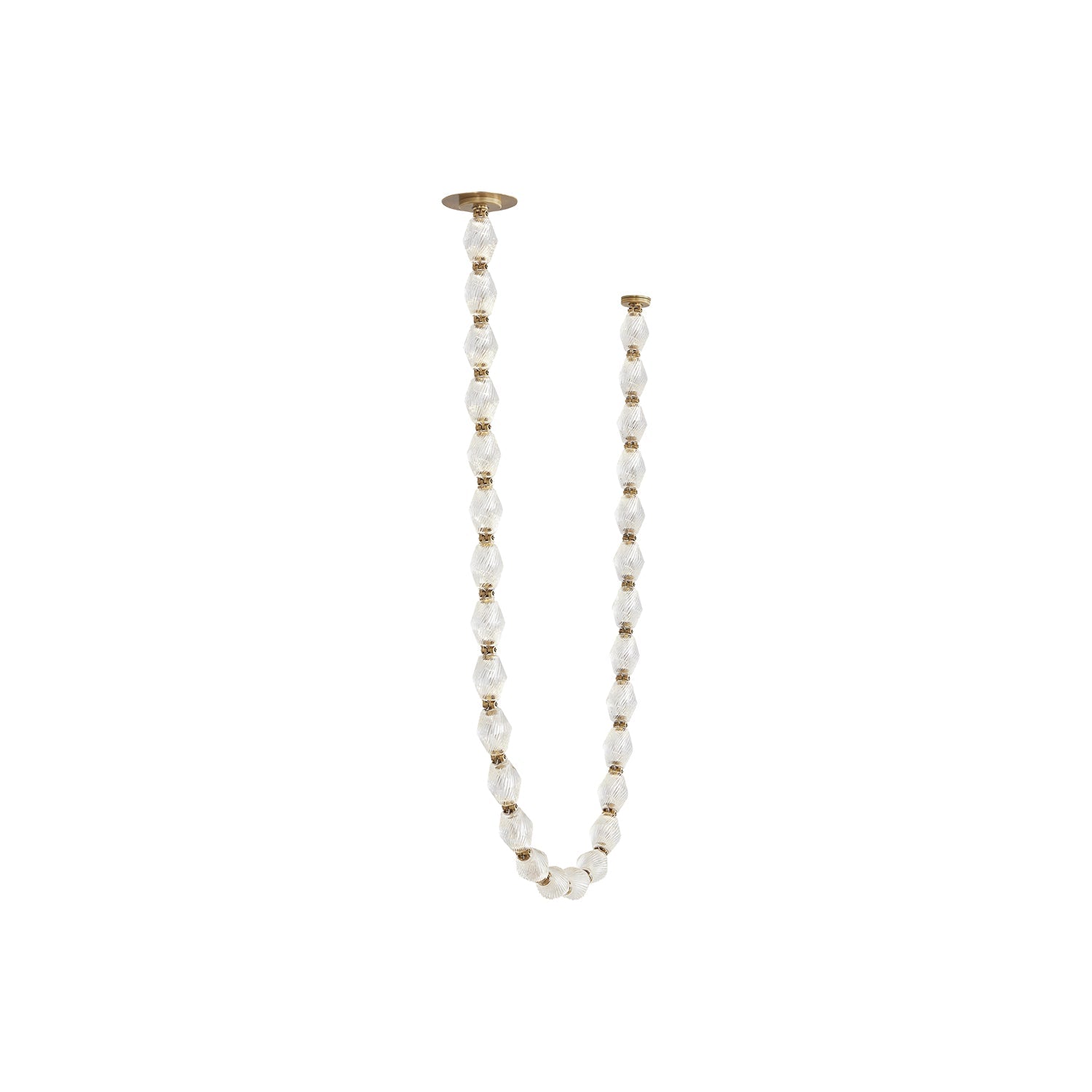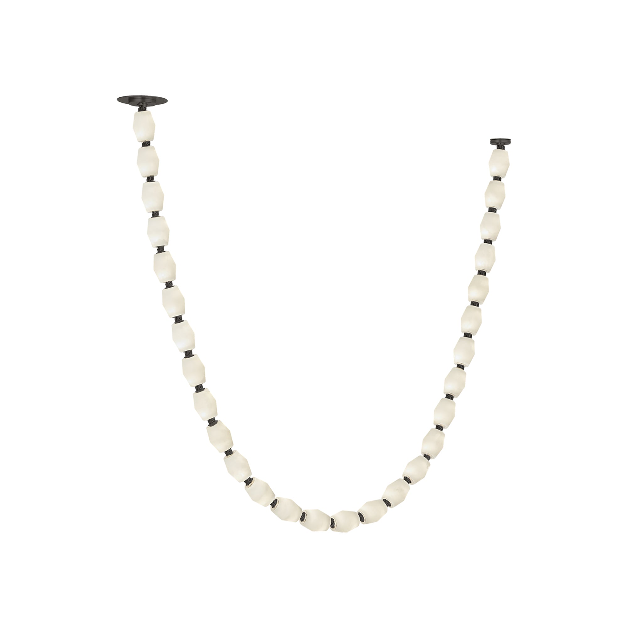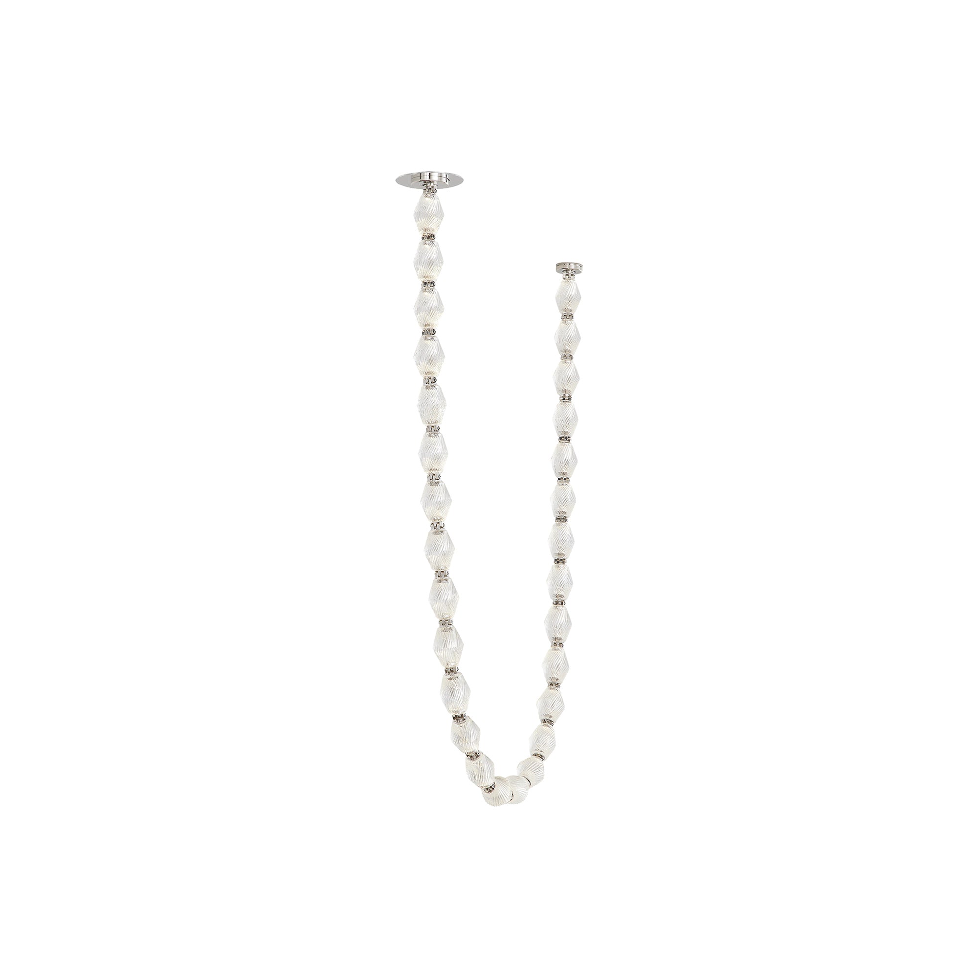 Elegant gem-inspired influence creates decadent artistry in lighting, perfect for a theatrical setting. The Collier LED Chandelier from Visual Comfort Modern Emulates a strand of freshwater pearls with classic metal elements separating each piece. This energy-efficient fixture brings a romantic flavor as it sends energy-efficient illumination in several directions.