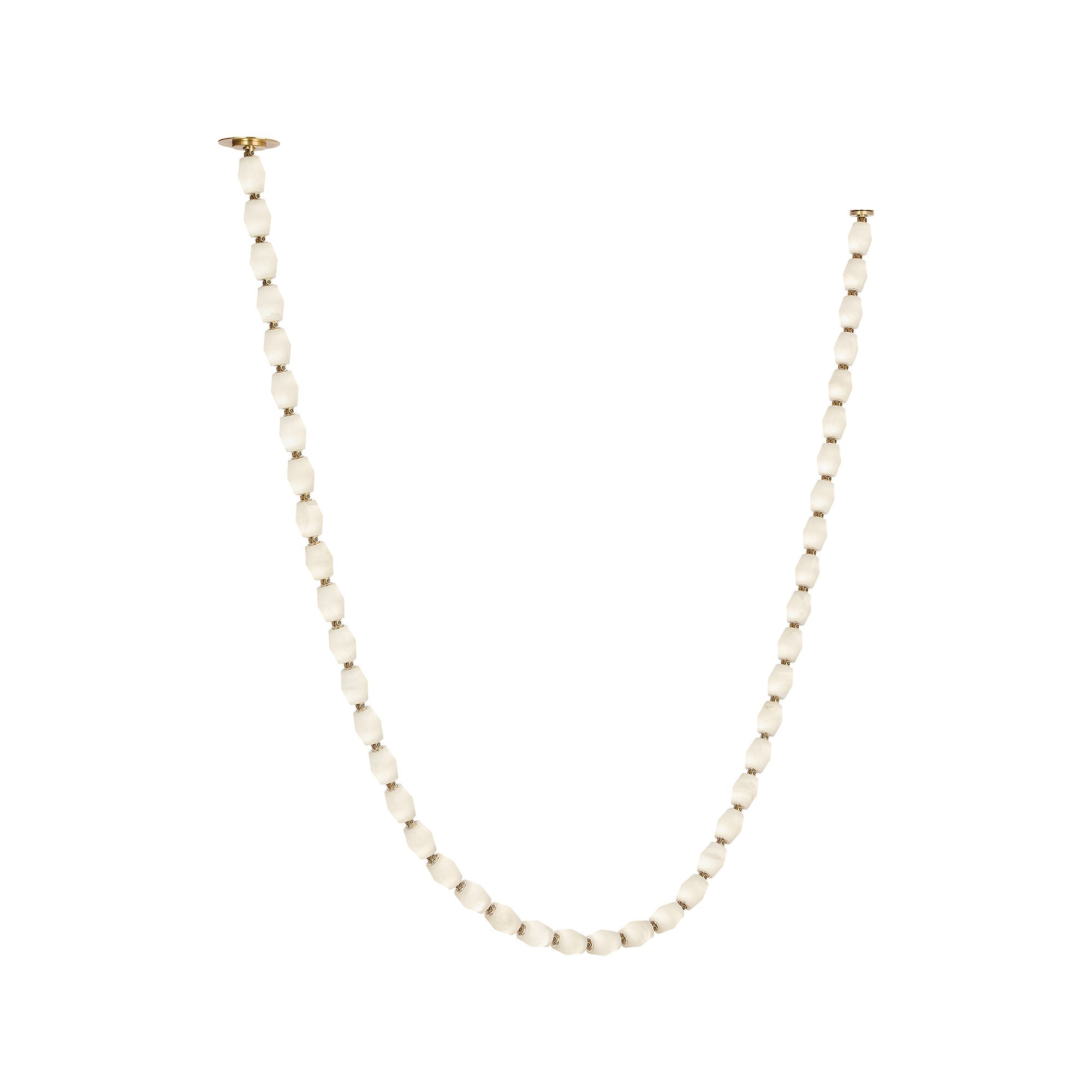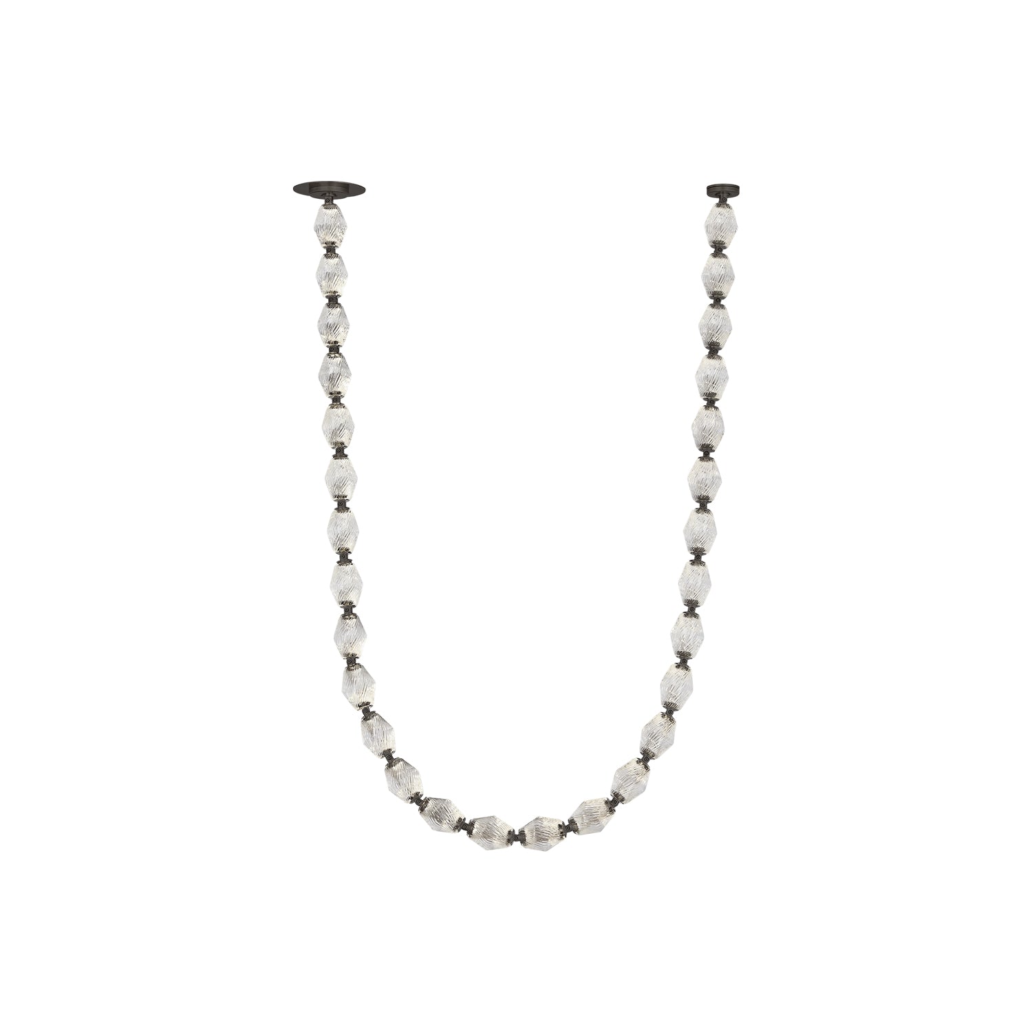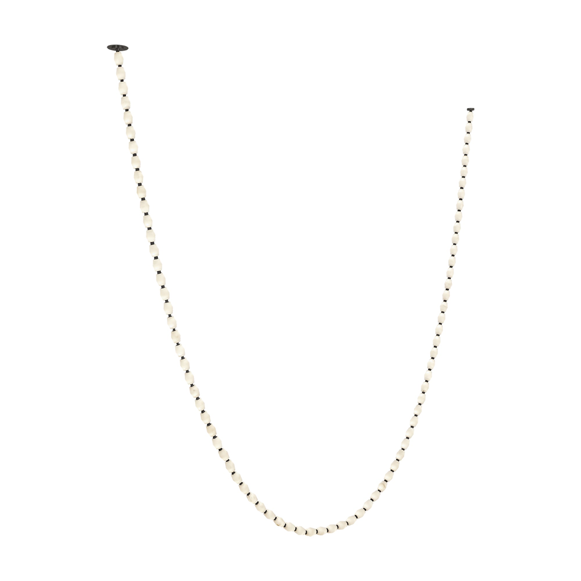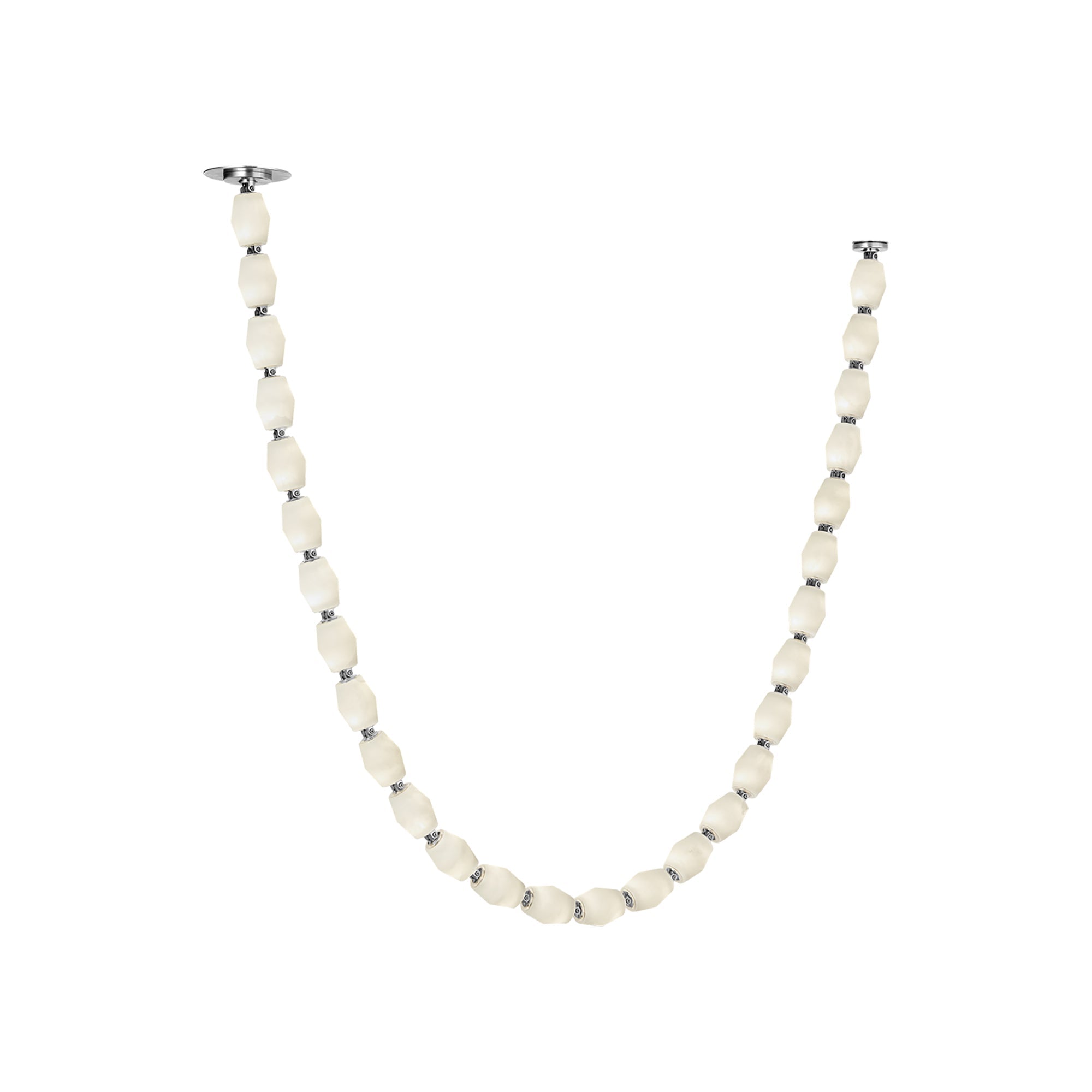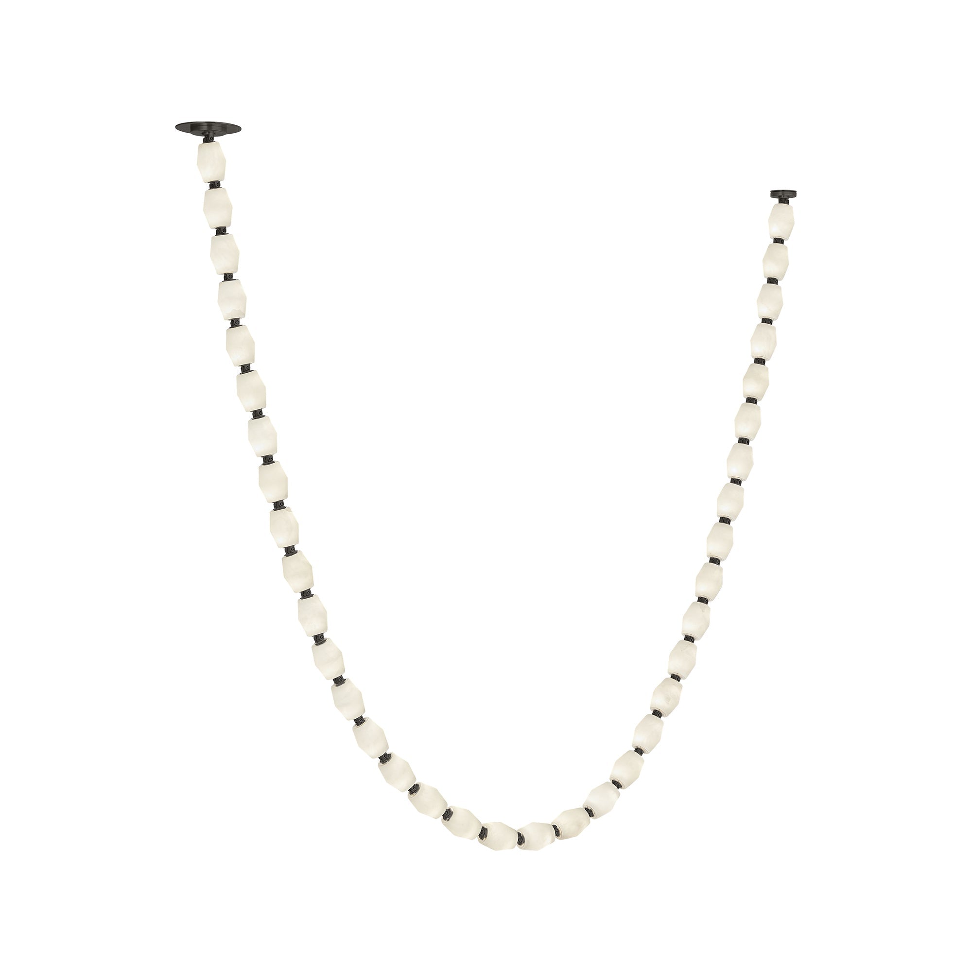 Elegant gem-inspired influence creates decadent artistry in lighting, perfect for a theatrical setting. The Collier LED Chandelier from Visual Comfort Modern Emulates a strand of freshwater pearls with classic metal elements separating each piece. This energy-efficient fixture brings a romantic flavor as it sends energy-efficient illumination in several directions.