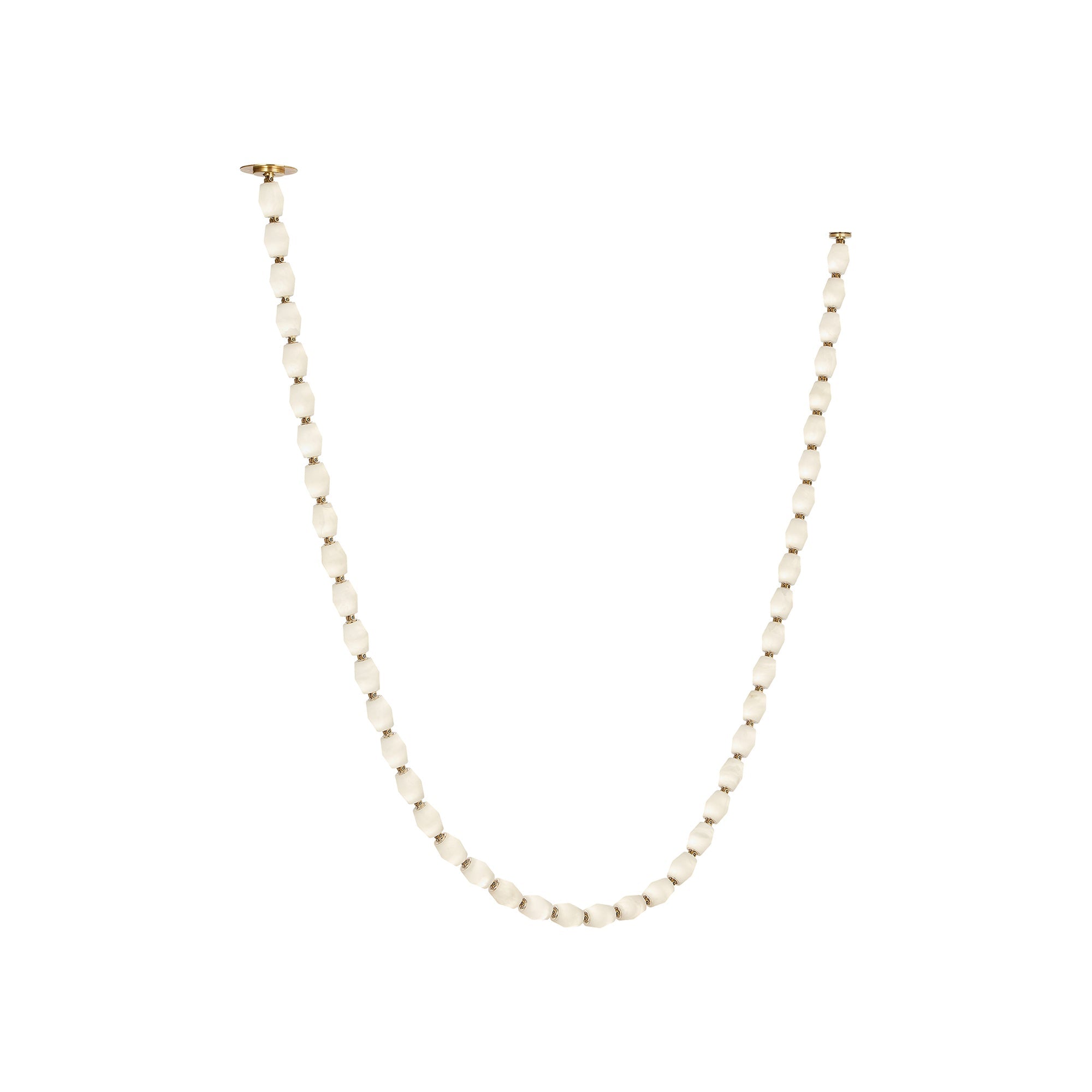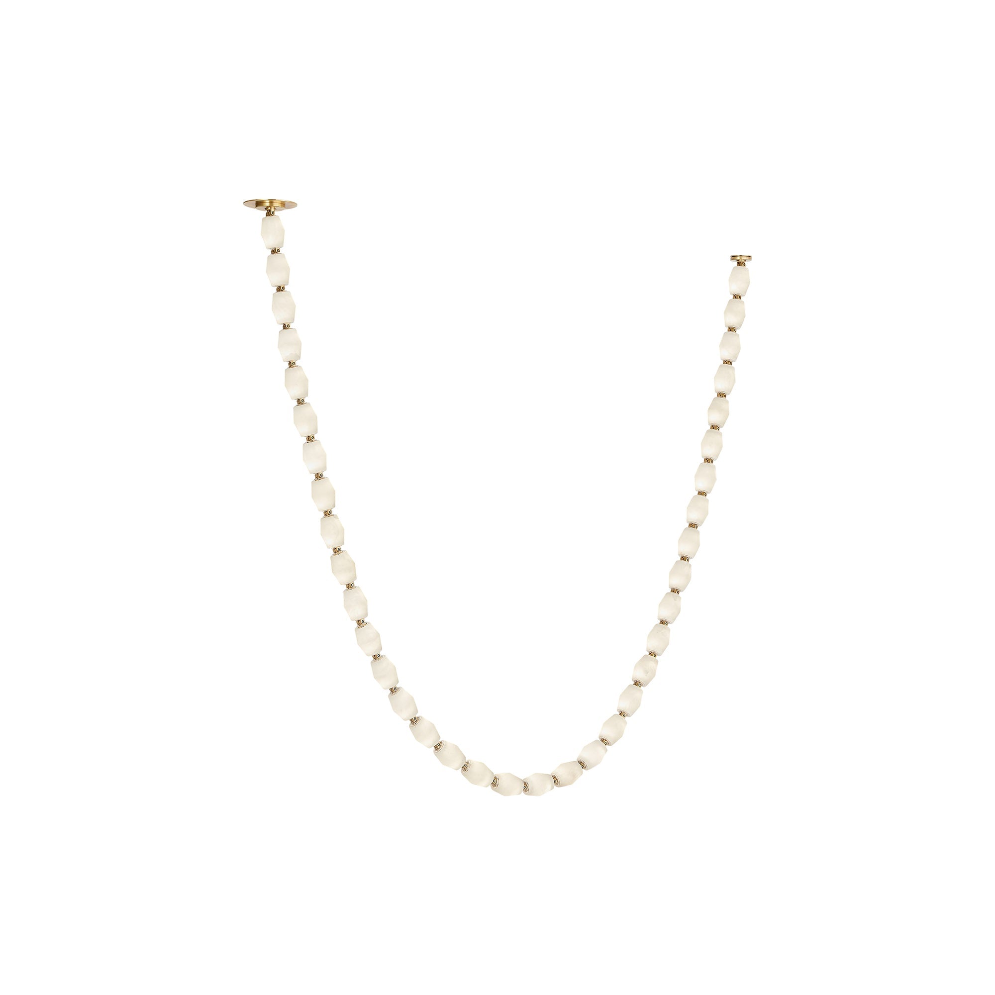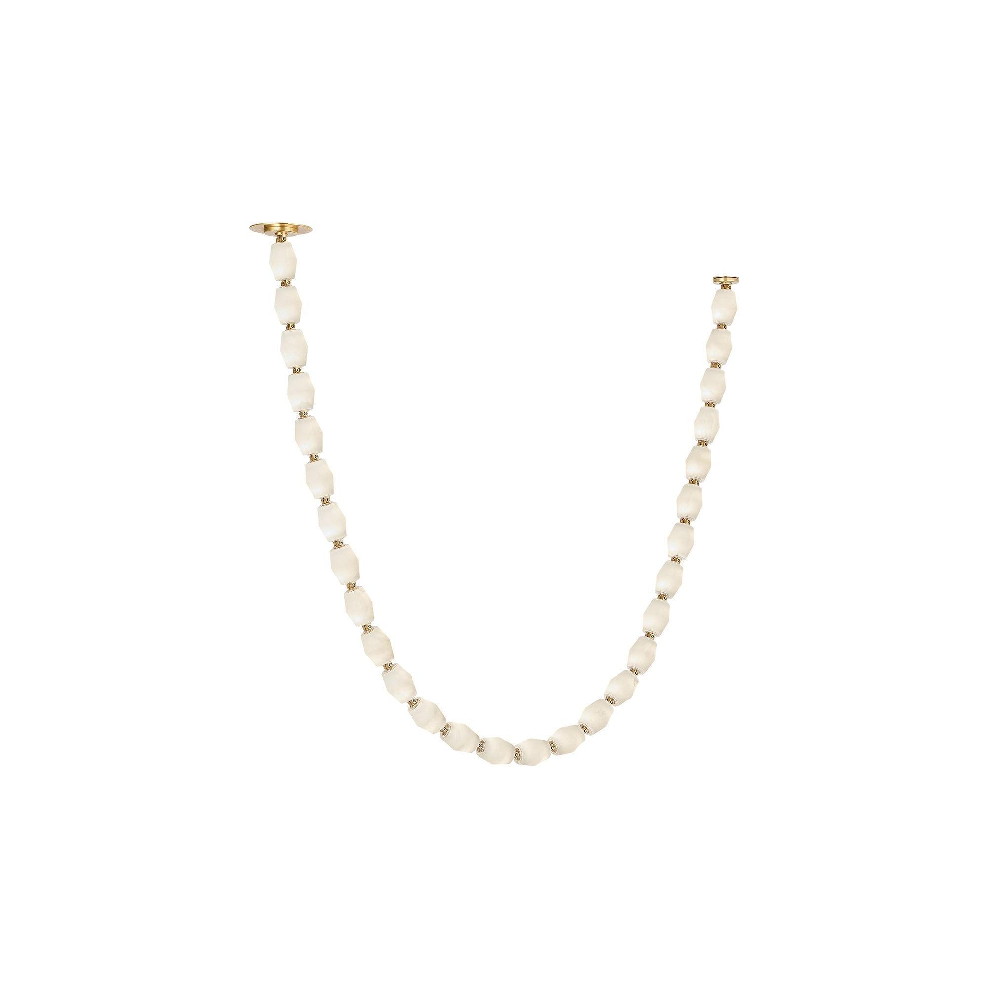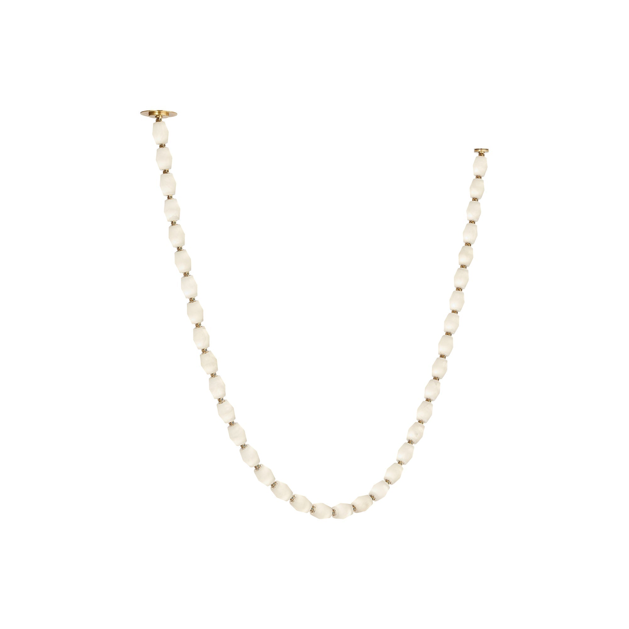 Elegant gem-inspired influence creates decadent artistry in lighting, perfect for a theatrical setting. The Collier LED Chandelier from Visual Comfort Modern Emulates a strand of freshwater pearls with classic metal elements separating each piece. This energy-efficient fixture brings a romantic flavor as it sends energy-efficient illumination in several directions.