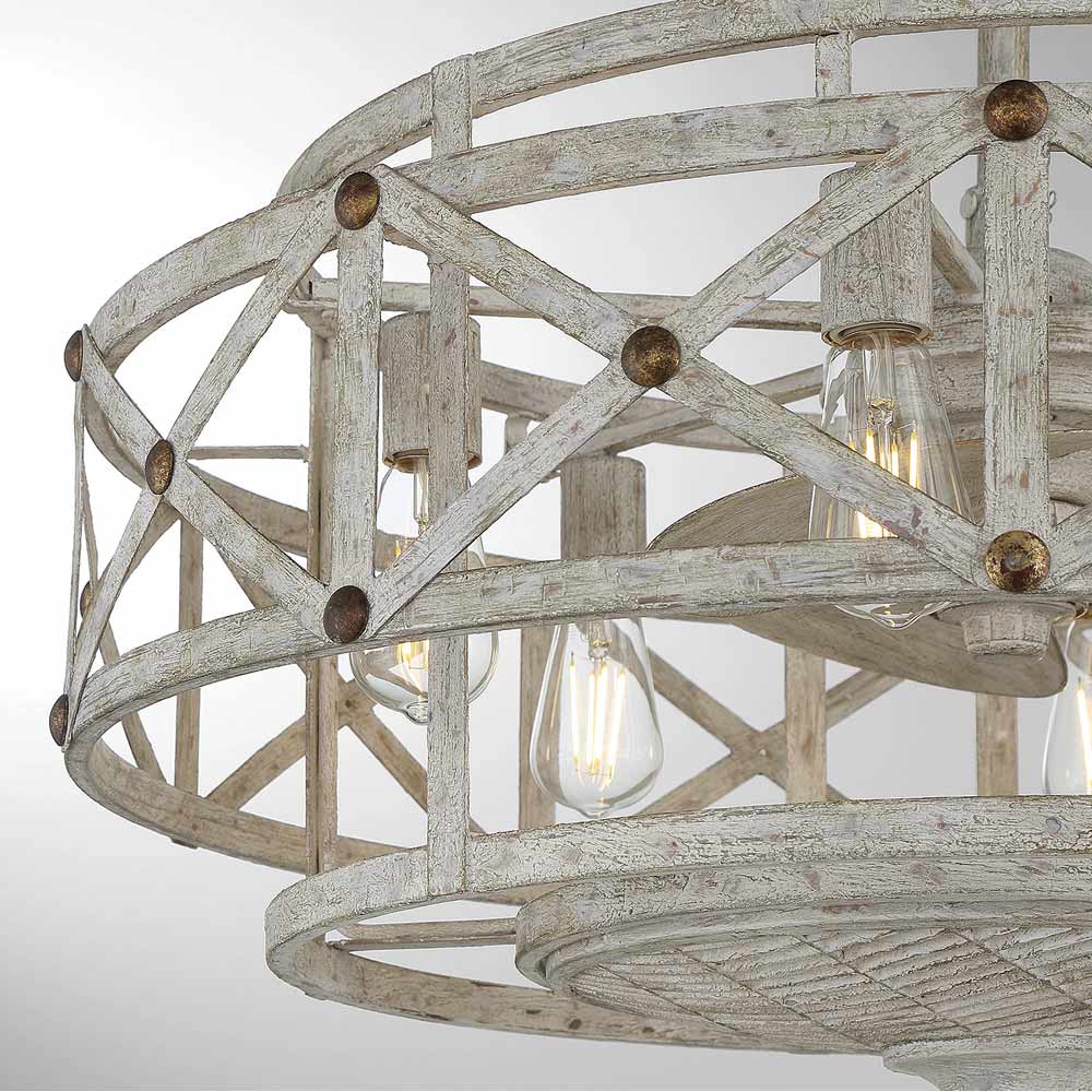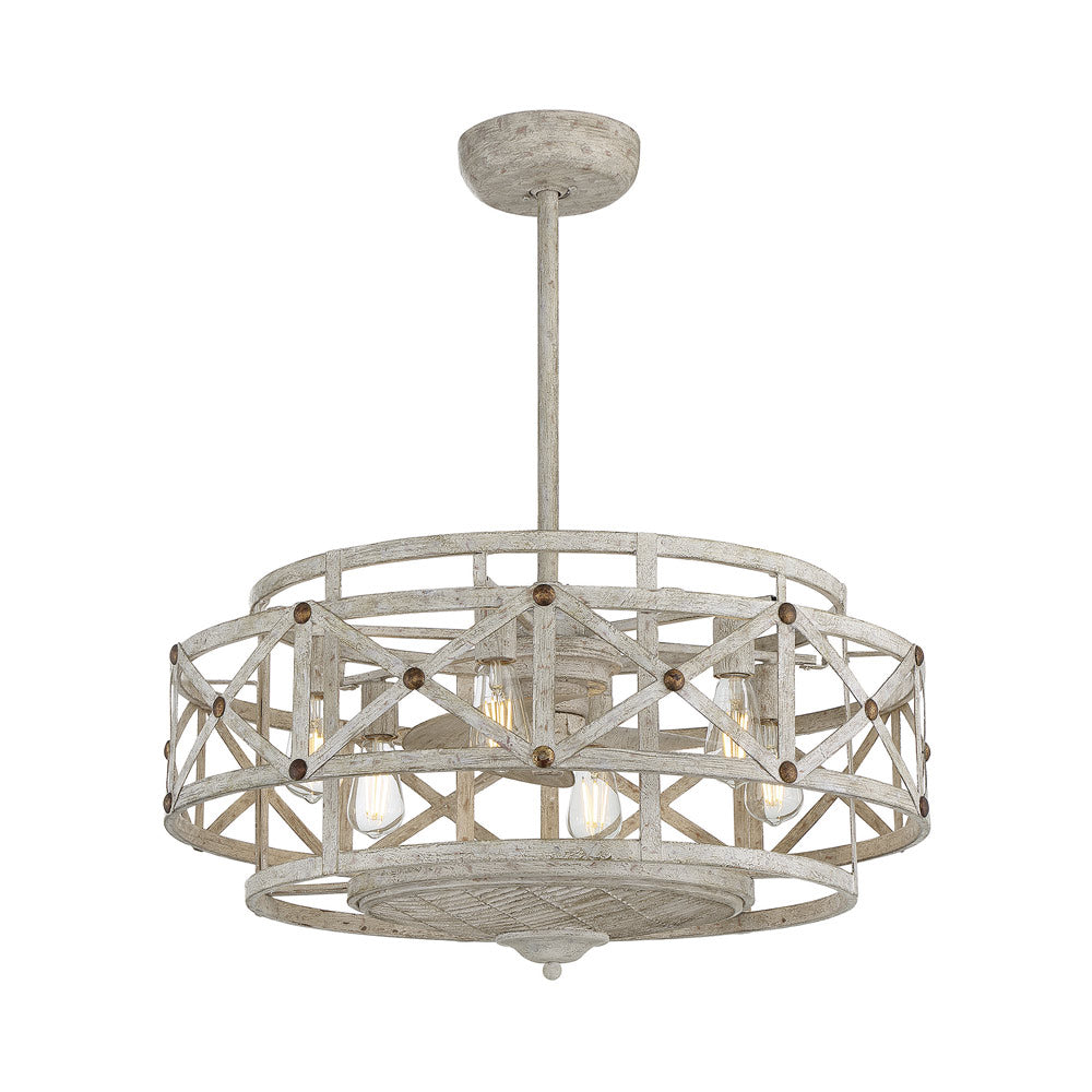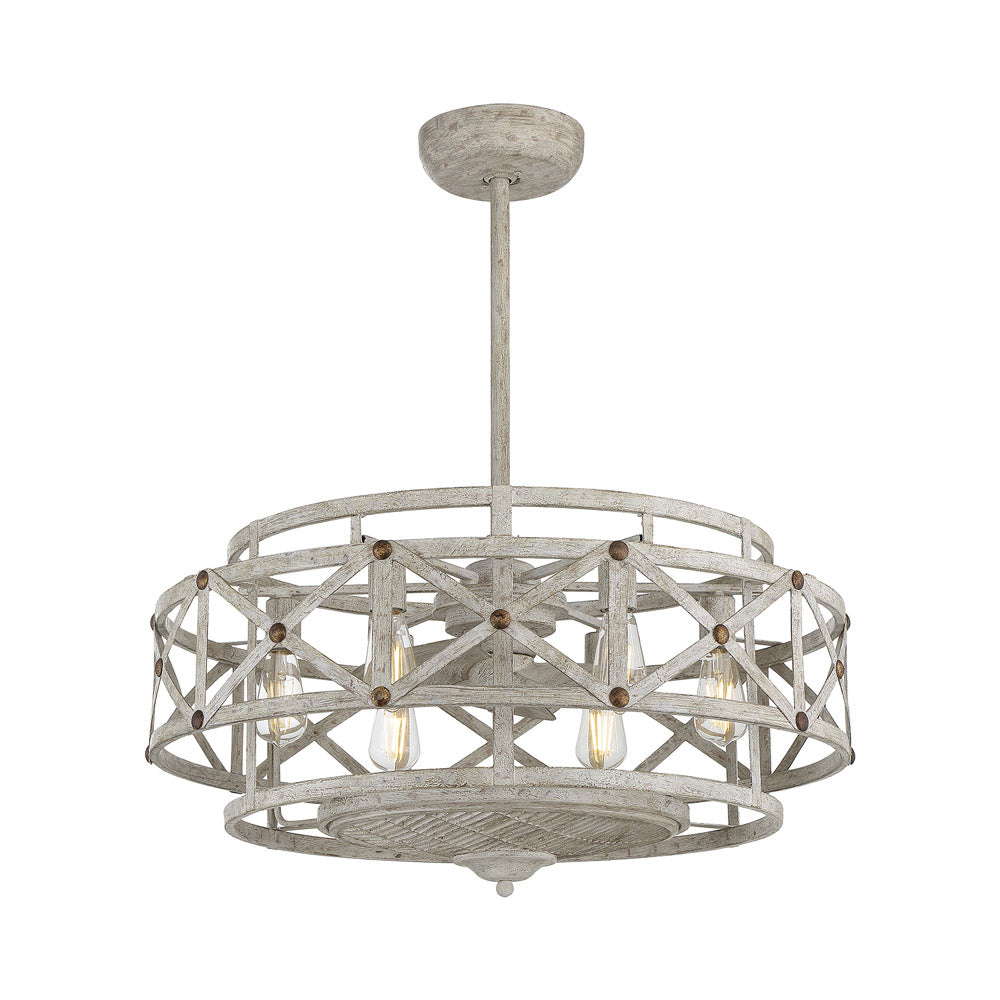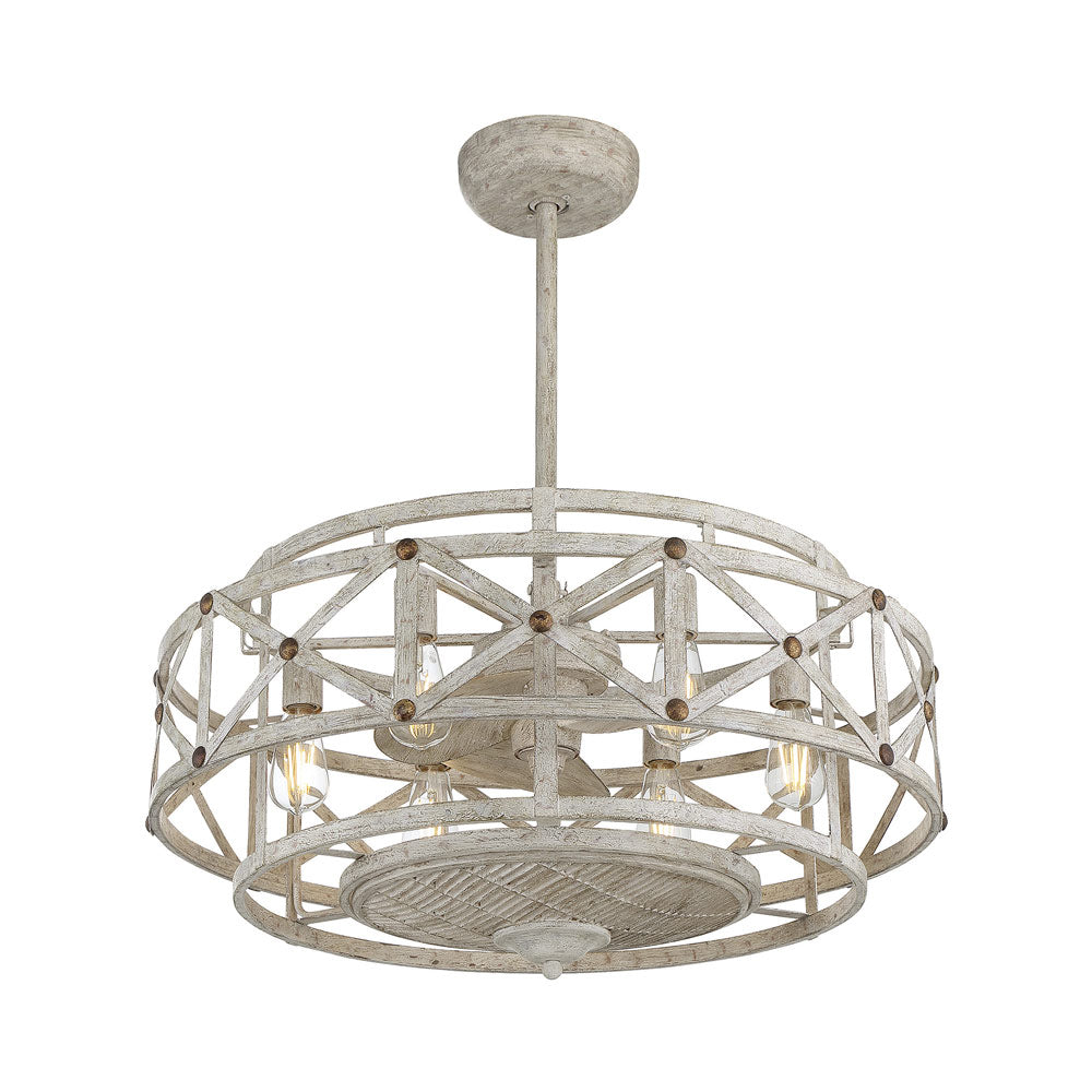 With a tempting layered design and openwork metal construction, the Colonade Fan D'Lier from Savoy House reflects a vintage industrial motif perfect for low-key, high-style settings. Geometric elements dress up a dual layer metal frame offering a Provence finish with sleek gold accents. Tubular bulbs emit soft illumination, as a steel fan mechanism delights with breezy air circulation.
