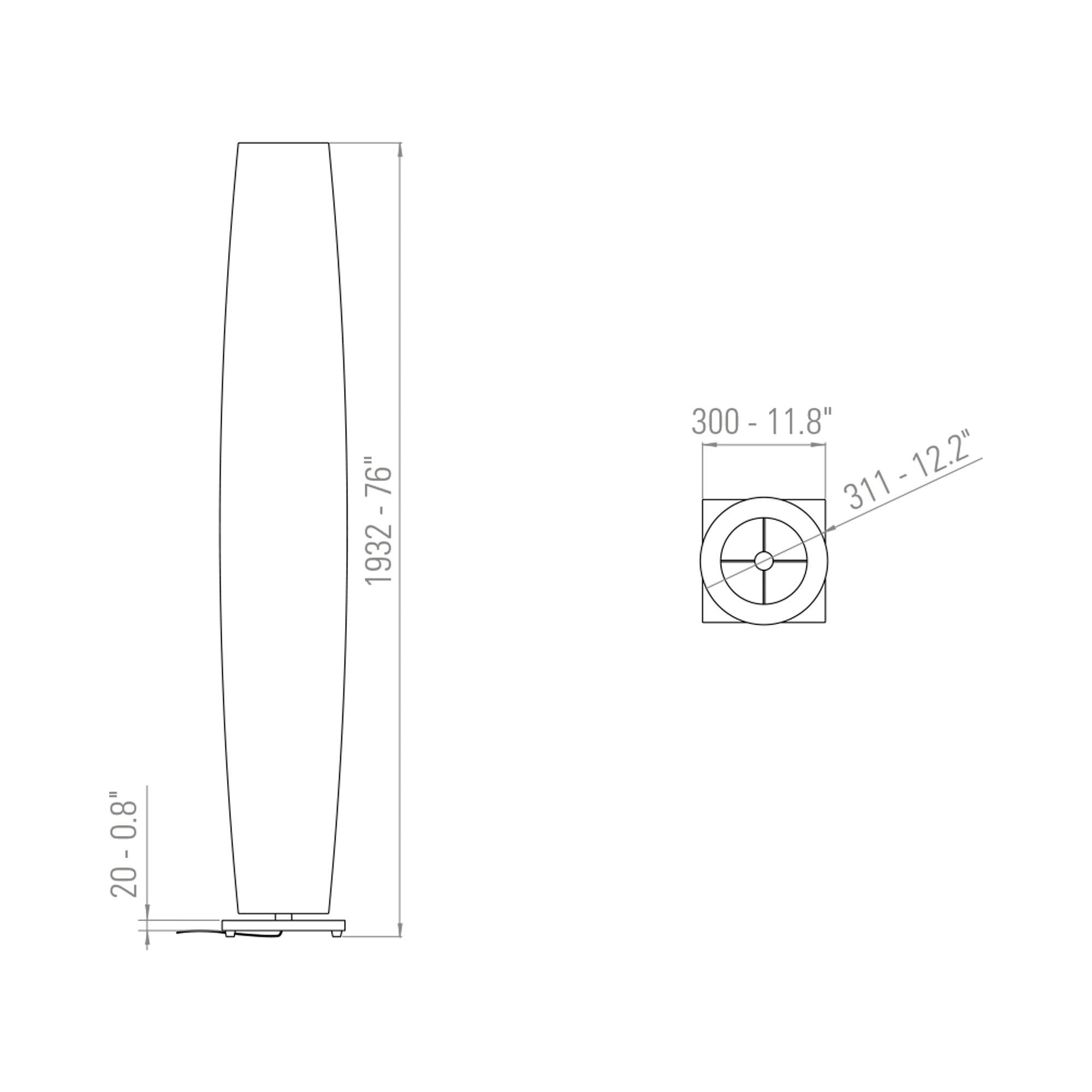 - Dimensions: 11.8"D X 76"H; 118.11" Cord Length