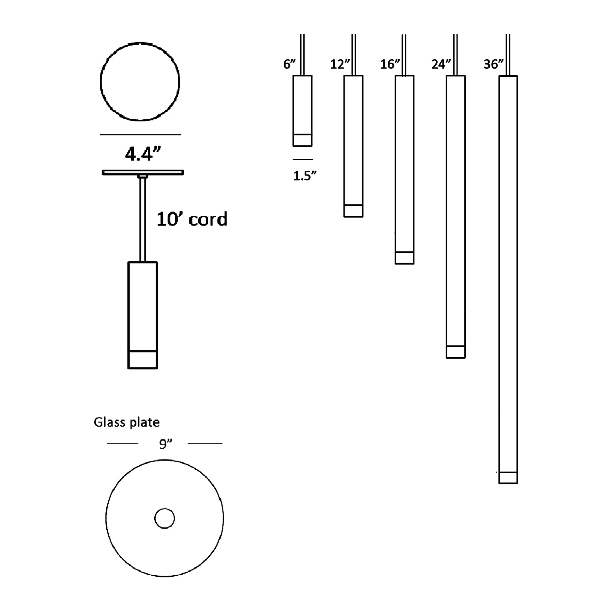 - 36-Inch: 9"D X 36"H