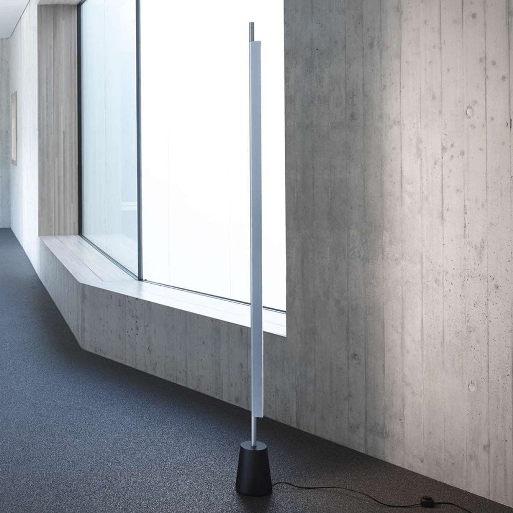Low-key, narrow silhouetting adds surprisingly dynamic style as the Compendium LED Floor Lamp from Luceplan shakes up conventional contemporary lighting designs. Diffused illumination from high-efficiency LED sourcing allows for a simple repositioning to shift lighting from direct to indirect. Die-cast aluminum construction conforms to the low-key, high-impact output and aesthetic of this chic lamp.